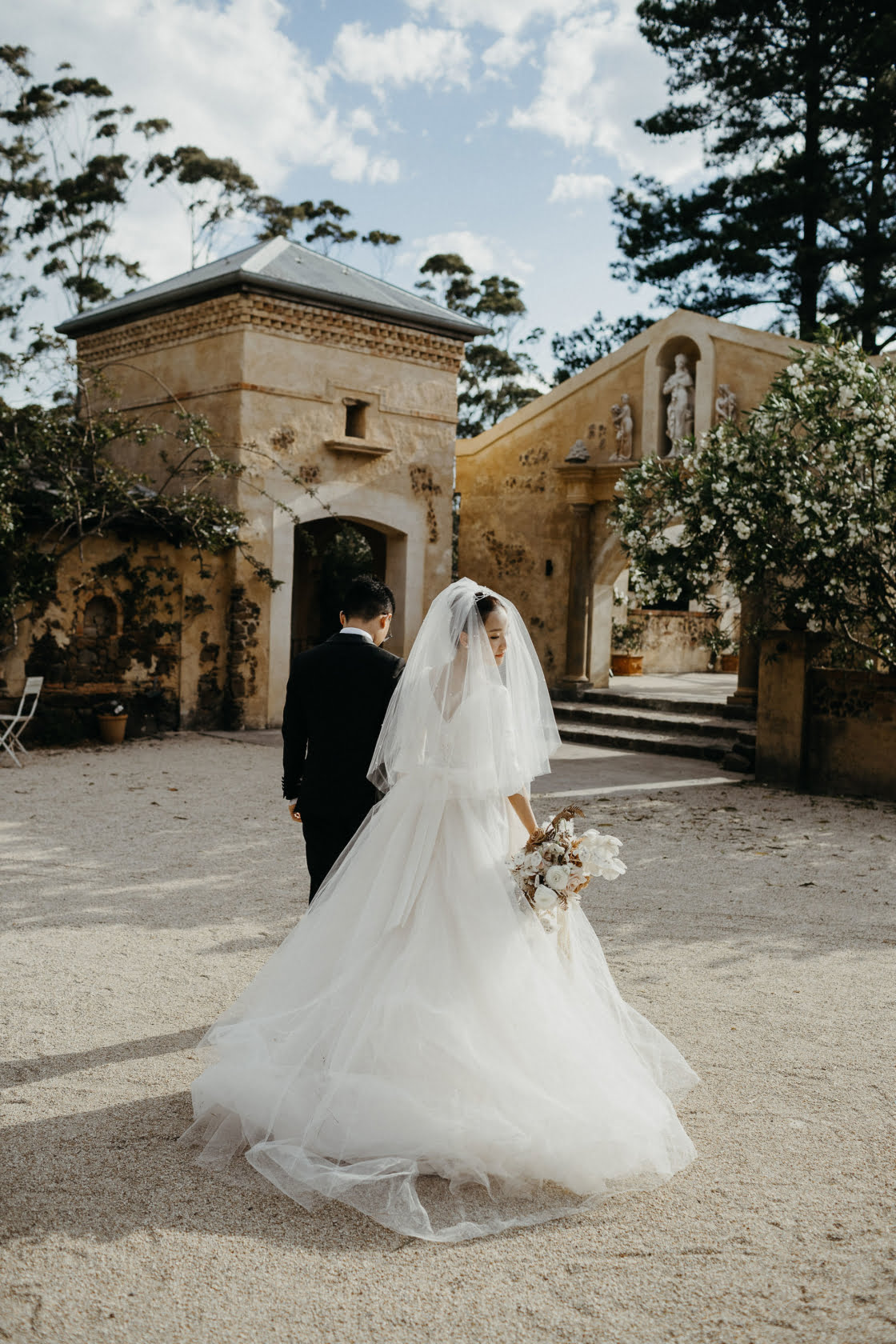 THE VIBE “Da and I have a thing for classical architecture (not that we know too much about it) but we just love how romantic, elegant and otherworldly it all looks! We got in touch with our old high school friend Jeffrey, the co-founder of In A Maze, who took some amazing pre-wedding photos for us in Beijing to get his thoughts on what might work. He suggested to try recreating some renaissance-themed looks and we slowly built on that to create a modern take on classical romance.”