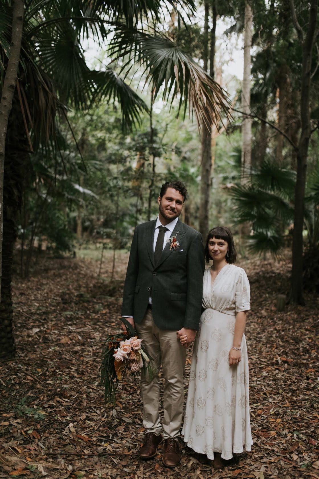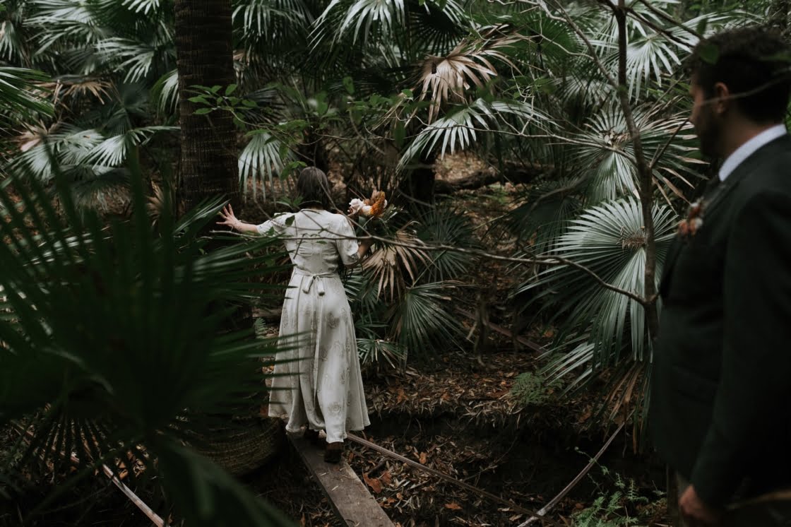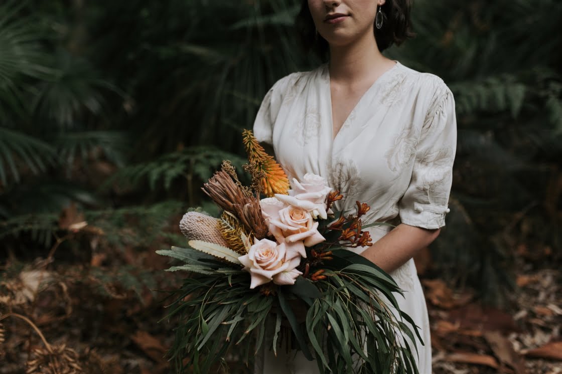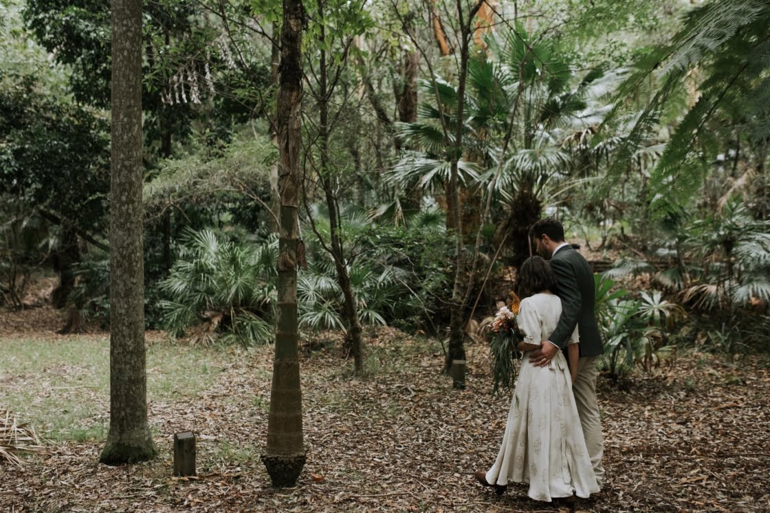 This is the story of a sweet elopement, where the bride wore an epic, second-hand gown you simply must see and the groom, a ring from our friends over at Kavalri. “We postponed in March of 2020, then cancelled the postponement and decided to elope in August 2020 (and tried for a baby instead!).” They found the “rustic Australian bush” vibe at this incredible ceremony spot at Pearl Beach and their advice is to “Take advantage of the great excuse that COVID gives you to do exactly as you damn well please,” so it’s safe to say we like them. You can scroll down for all the details and Damien Milan’s perfect pics…
