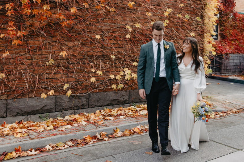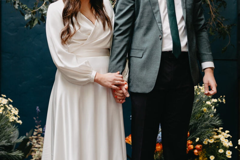 “We briefed our vendors with something like, ‘a casual, fun, indoor jungle, d-floor rager of a love party’ and ran with that vision!” says bride and groom, Dani and Adam, of their epic Melbourne wedding held at one of our favourite venues, Rupert on Rupert. These two lovely humans – together for seven years (as long as their cat Oscar has been alive “so it’s easy to keep track”) – say as a graphic designer and insurance broker, they perfectly balance each other out. “When it came to wedding planning, that meant I was off creating mood boards, designing stationery and briefing vendors with our vision, while Adam was the official master of the spreadsheet and made sure we could afford everything!” laughs Dani.