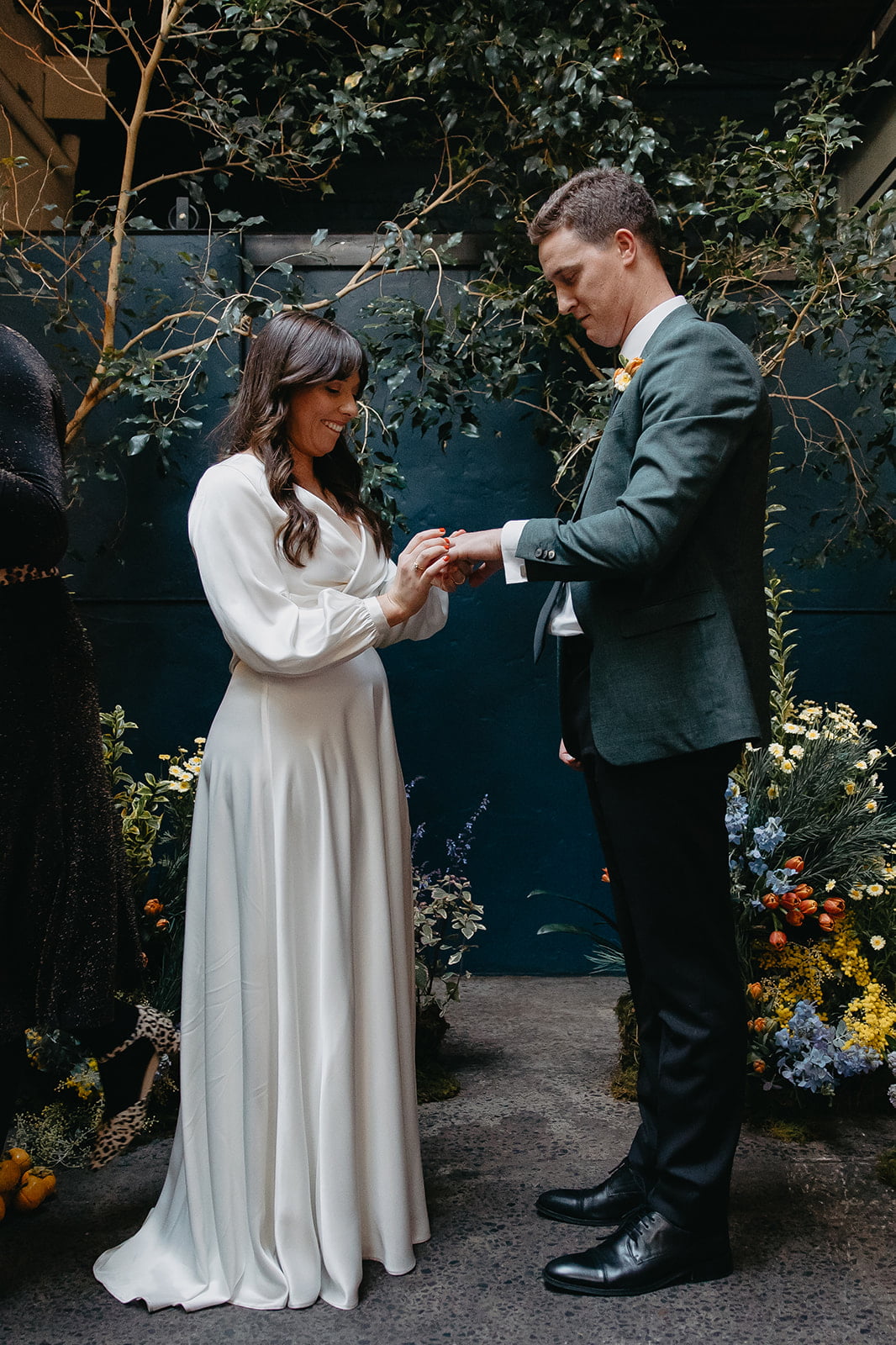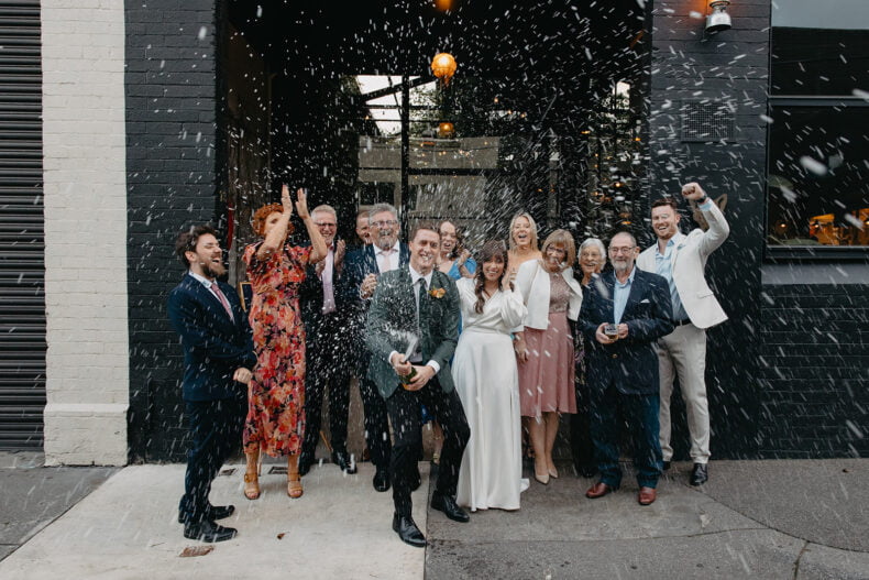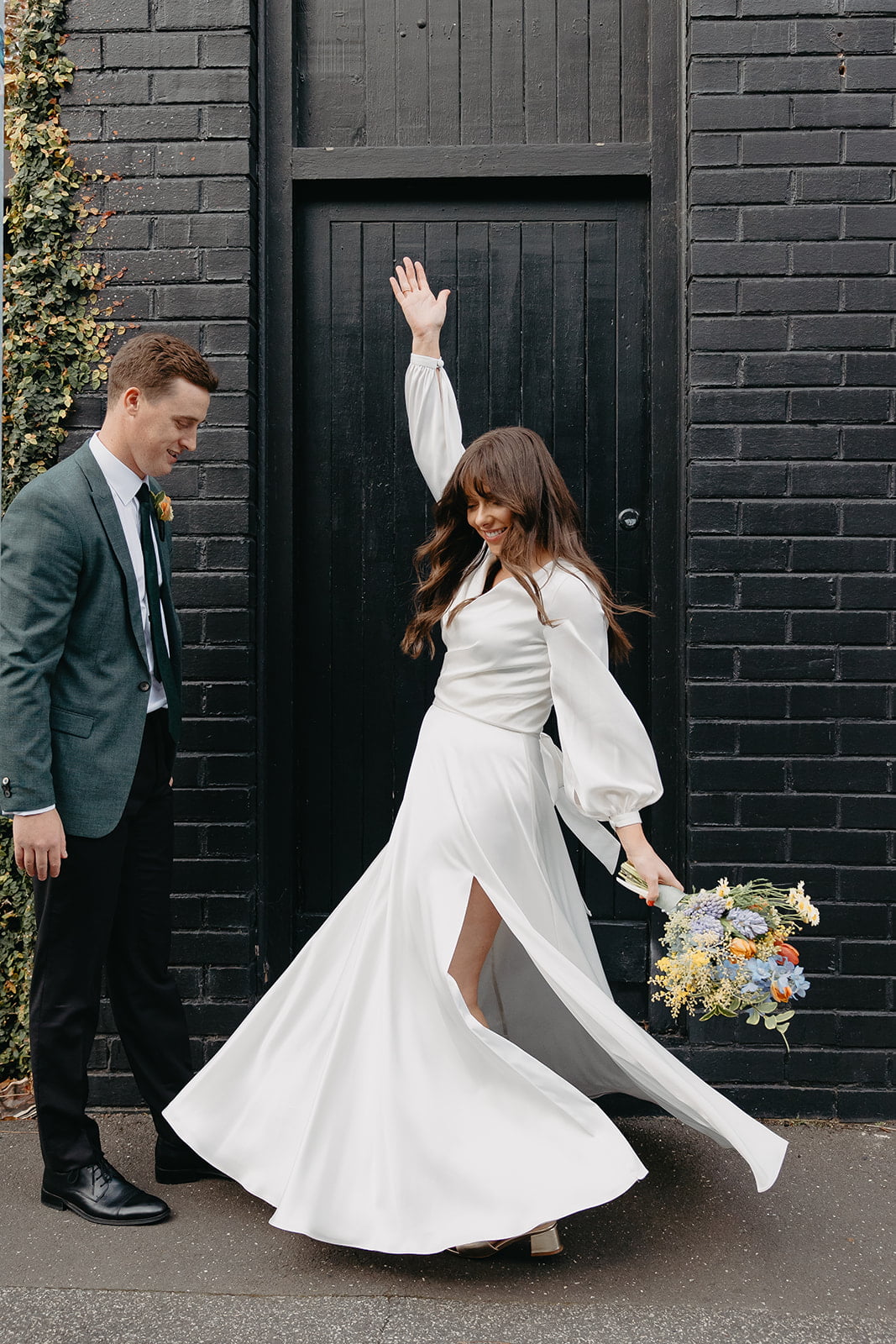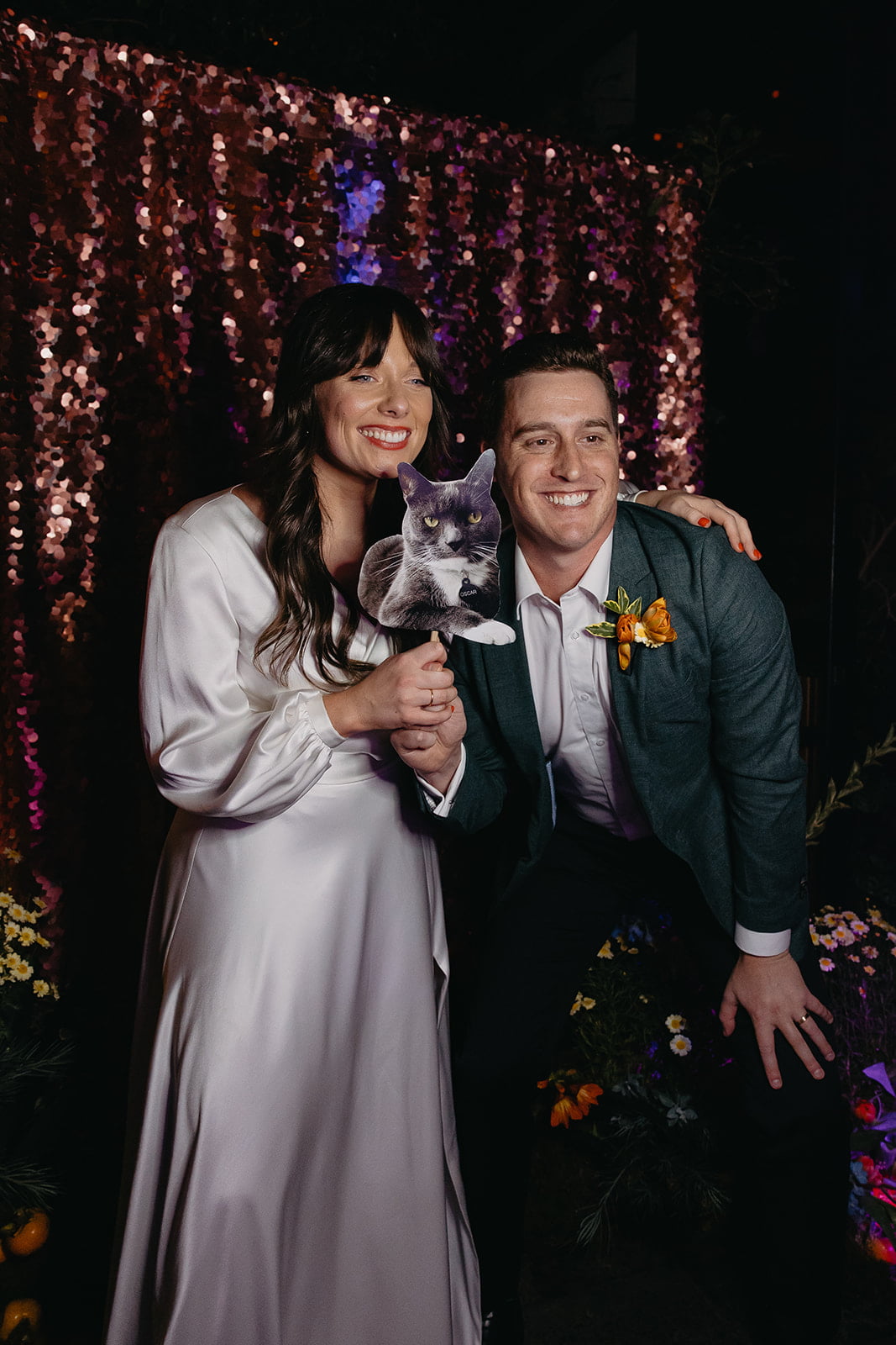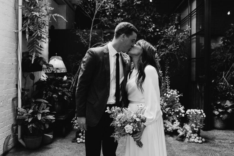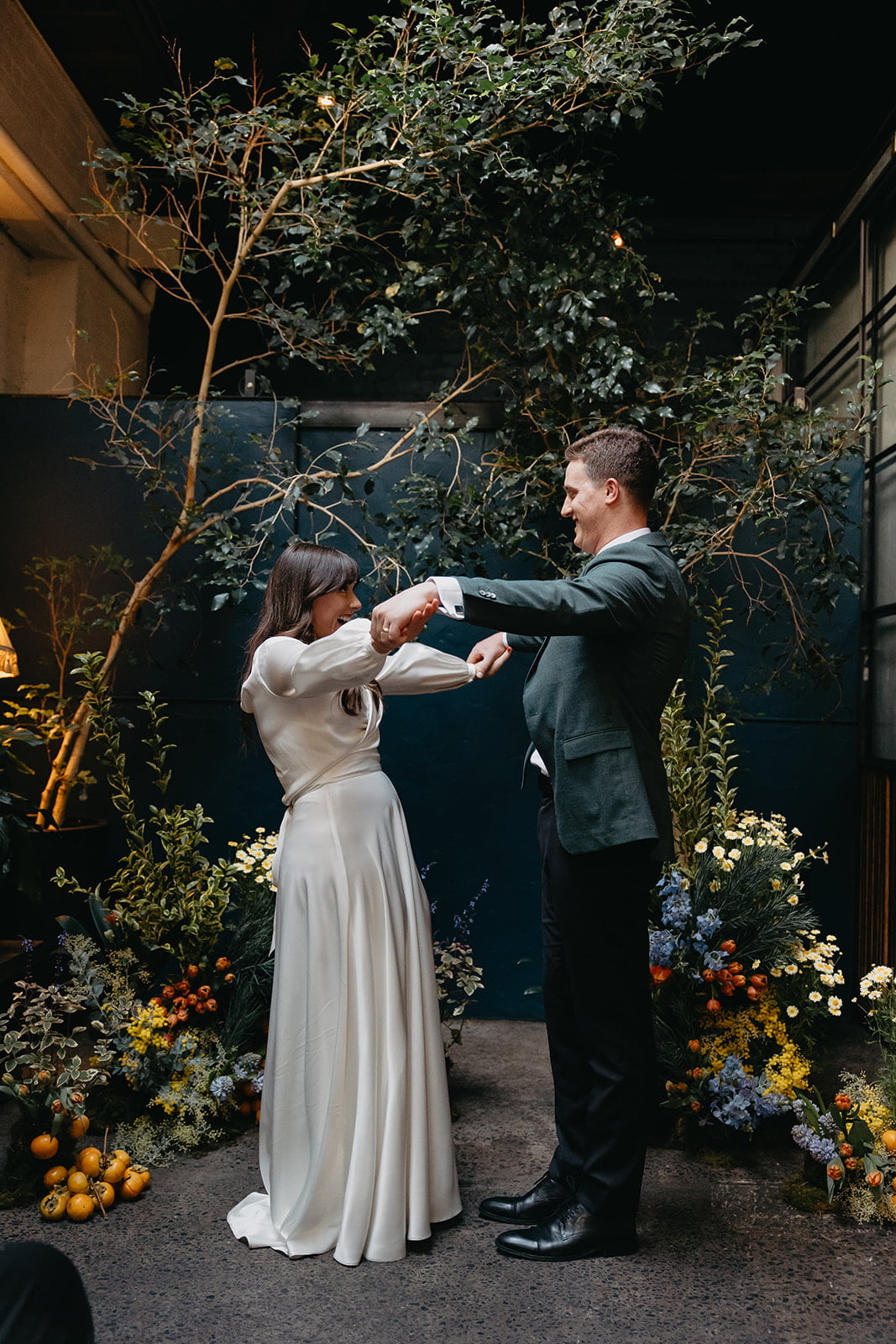 “We briefed our vendors with something like, ‘a casual, fun, indoor jungle, d-floor rager of a love party’ and ran with that vision!” says bride and groom, Dani and Adam, of their epic Melbourne wedding held at one of our favourite venues, Rupert on Rupert. These two lovely humans – together for seven years (as long as their cat Oscar has been alive “so it’s easy to keep track”) – say as a graphic designer and insurance broker, they perfectly balance each other out. “When it came to wedding planning, that meant I was off creating mood boards, designing stationery and briefing vendors with our vision, while Adam was the official master of the spreadsheet and made sure we could afford everything!” laughs Dani.