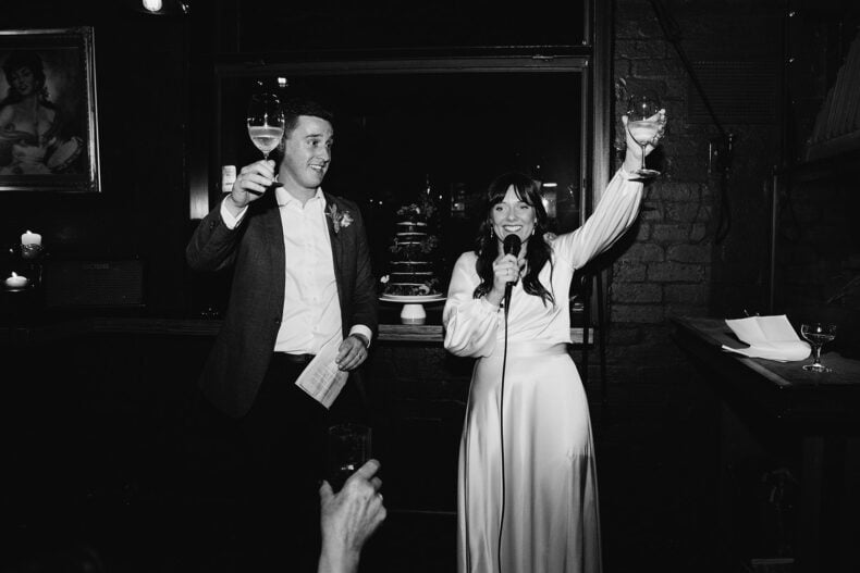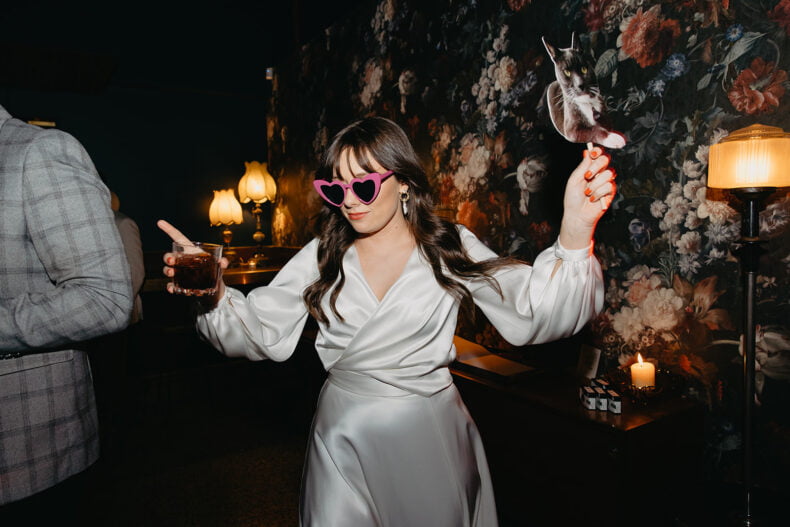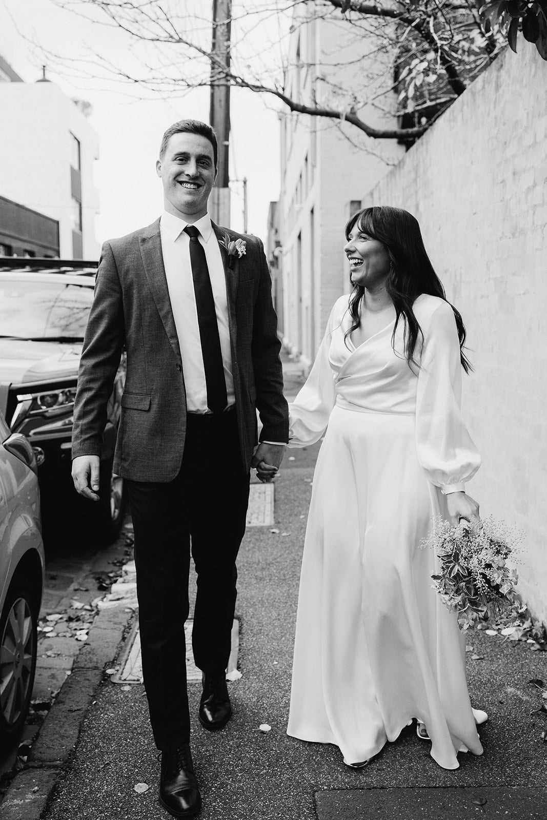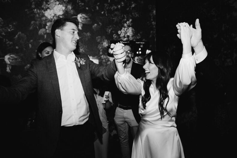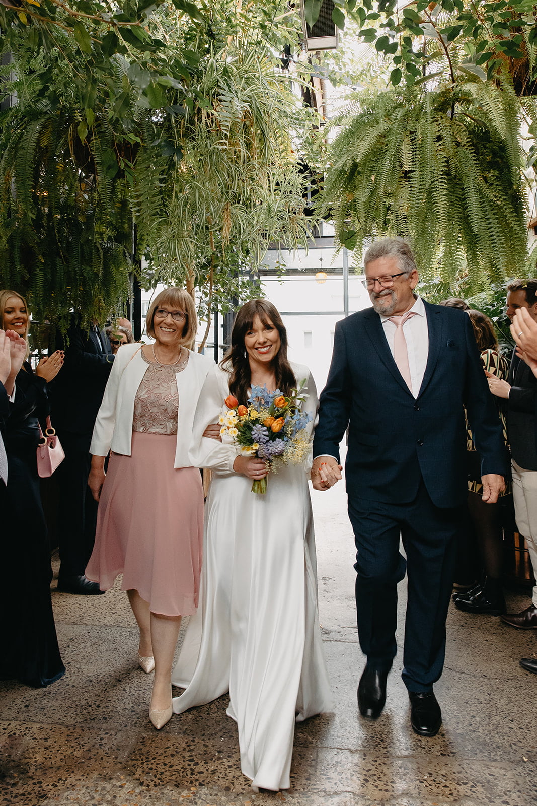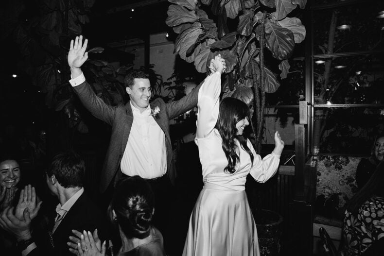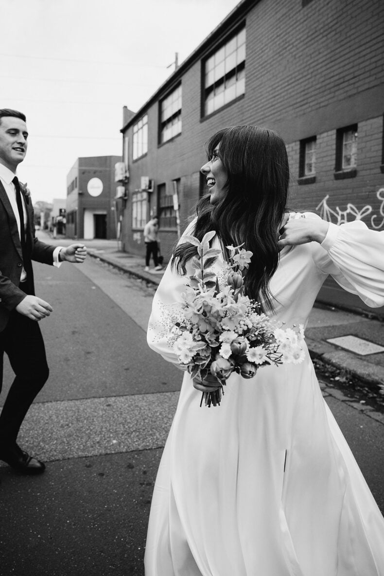 “We briefed our vendors with something like, ‘a casual, fun, indoor jungle, d-floor rager of a love party’ and ran with that vision!” says bride and groom, Dani and Adam, of their epic Melbourne wedding held at one of our favourite venues, Rupert on Rupert. These two lovely humans – together for seven years (as long as their cat Oscar has been alive “so it’s easy to keep track”) – say as a graphic designer and insurance broker, they perfectly balance each other out. “When it came to wedding planning, that meant I was off creating mood boards, designing stationery and briefing vendors with our vision, while Adam was the official master of the spreadsheet and made sure we could afford everything!” laughs Dani.