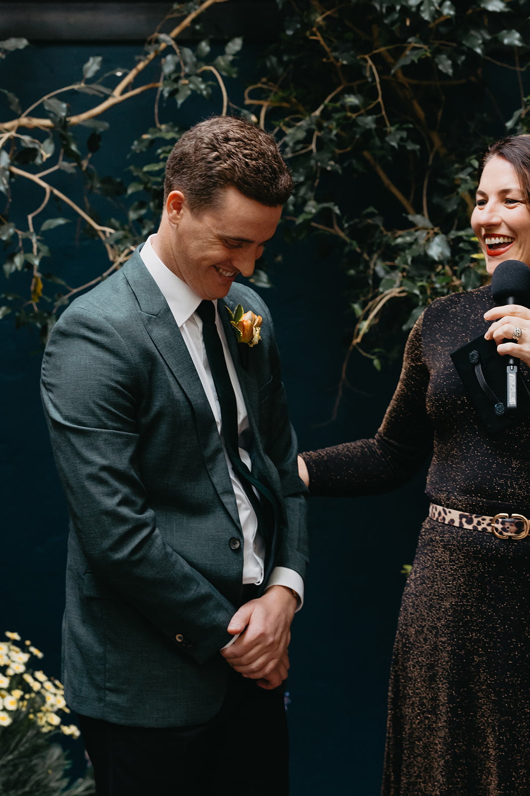 WE’RE SO GLAD WE… “Invested in superstar celebrant – Nat Sproal. Her ceremony set the tone for the night and she had our guests smiling, laughing and happy crying. Absolutely smashed it. She introduced us to the concept of ninja vows, which was such a fun way to kick off in a lighthearted way. Adam and I both wrote four or five vows for each other to blind read out on the day, so we got to stitch each other up a bit and share our in-jokes with our guests. eg. I wrote for Adam “I promise to accept that pizzas never have.. and never will… have nine slices”. Total stitch up. Nat empowered us to make the day our own with confidence and ease.”