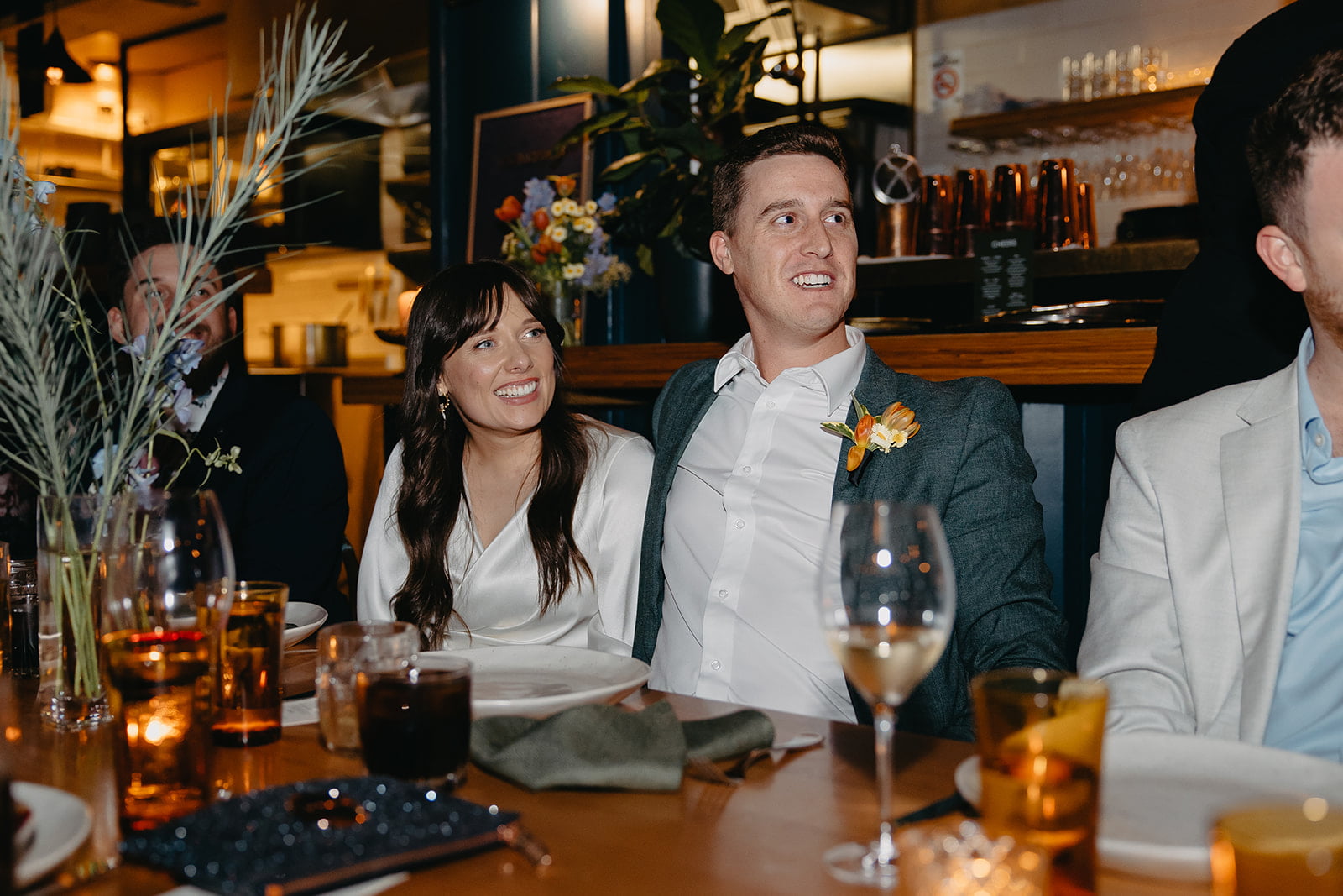 THE VENUE “We had booked a date night dinner at Rupert on Rupert with a loose, ‘Oh yeah this could be a cool wedding venue, let’s try the food’ mindset. We walked in those gigantic conservatory-like doors and were absolutely blown away by the atmosphere, the warmth, the comforting homey feel, the ‘Melbourne-ness’ of it all. It was the venue that did it all. Ceremony and reception in one, food, drinks, pre and post ceremony music… everything! And the atmosphere and space was so perfect for our relaxed and intimate vibe. The sit-down share plate style of the meal service made it feel like a family dinner where conversation is flowing, plates are being passed back and forth, and stomachs, souls and wine glasses are full. Mali of Rupert coordinated such a beautiful, seamless day. I didn’t stress once with her on our side. Plus, the drink service was notably out of this world! We still have guests raving about it.”