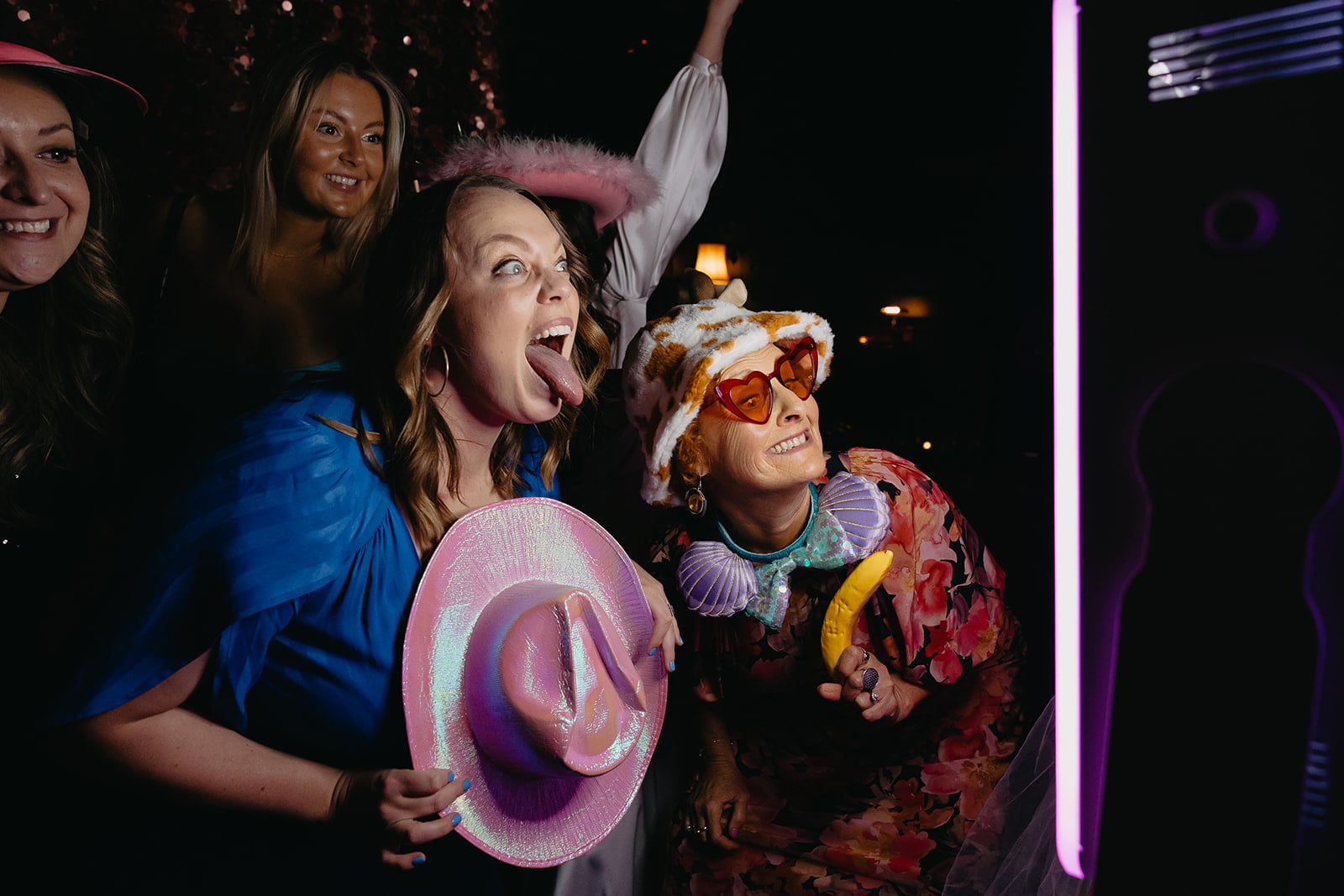 FAVE DEETS “The flowers and foliage really blew us away. You think you have a picture in your head of what your florist is going to put together, but seeing Salt Flower’s incredible ceremony arrangement for the first time, with Adam standing in front of it all handsome’d up in his suit waiting for me, was so emotional! I will never forget it. Salt Flower exceeded our imaginations and made us happy cry! The Heartbreak Photobooth, props and guestbook combination was also a winner. When guests weren’t dancing, they were getting chaotic in the photobooth (in the best way possible). We have the photo strips and drunken scrawls in a guestbook to prove it.”