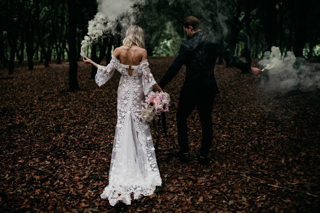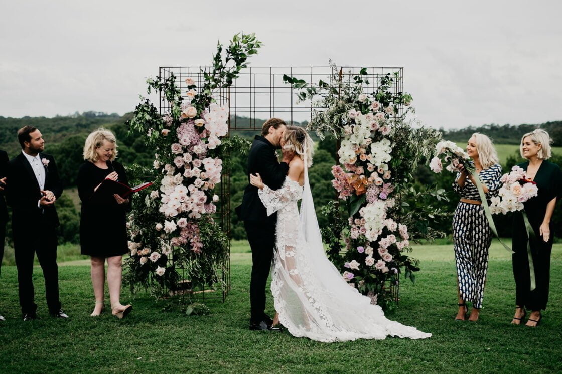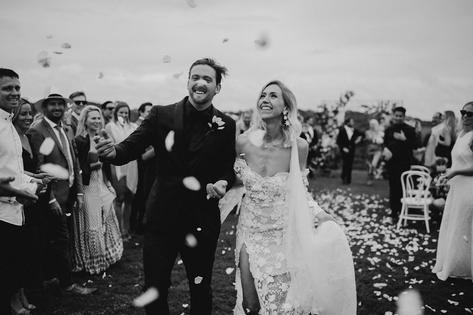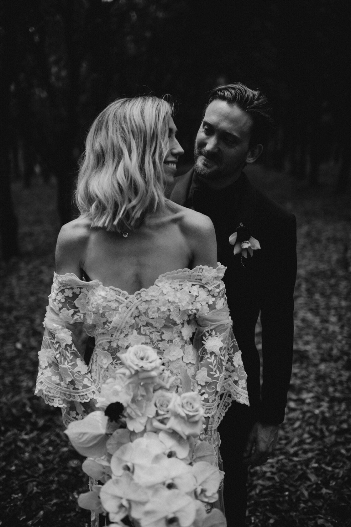 This is the sweet story of an electrician and a stylist, their 10 day trip to Byron Bay for their dream destination wedding, (where they found each five years before), a killer dress (not to mention dance floor), and one glorious ring by Grew & Co, of course. Then there’s the styling, neon signs and an Airstream… As founder of creative studio, The Make Haus, the bride did everything from the venue to the stationary, and of course created the incredible bouquet and floral installations. She set some seriously high expectations and judging by the shots from Jason Corroto and the video by Lynden Foss, we think she nailed it…