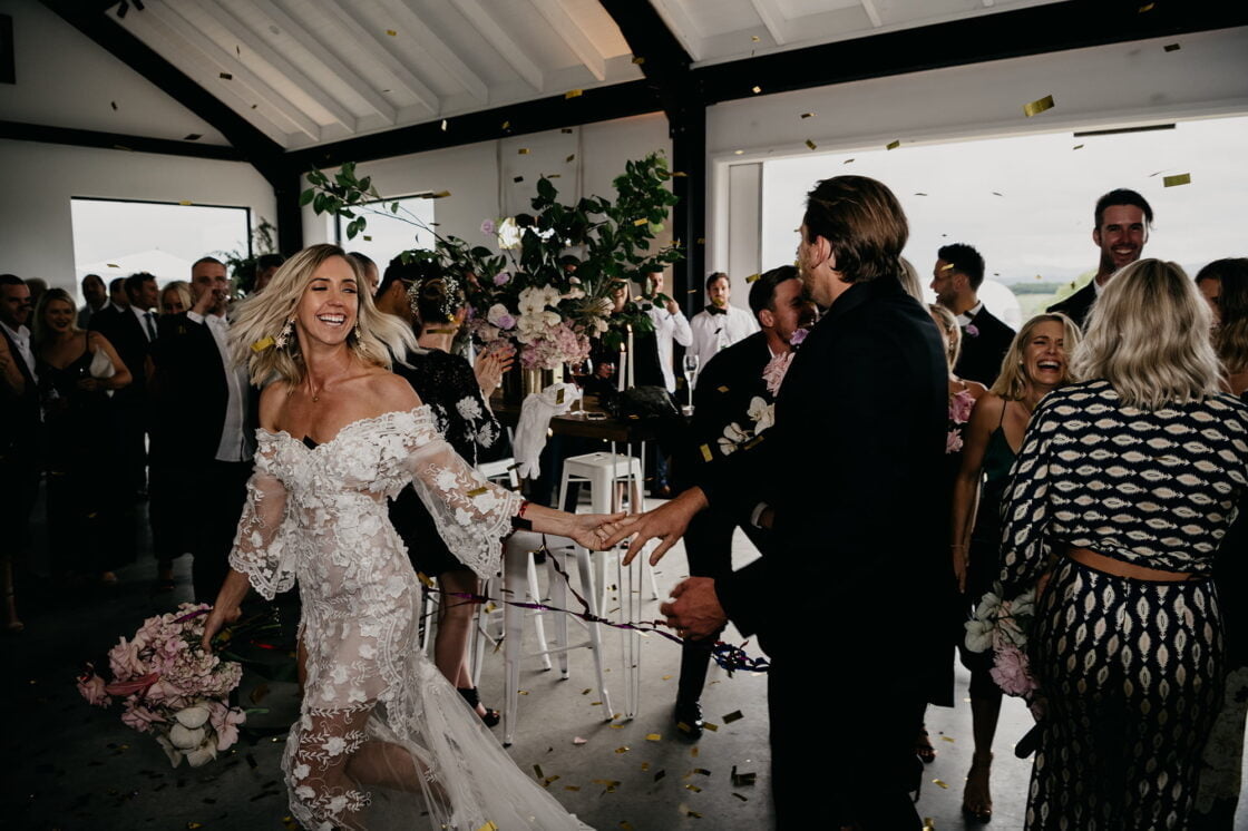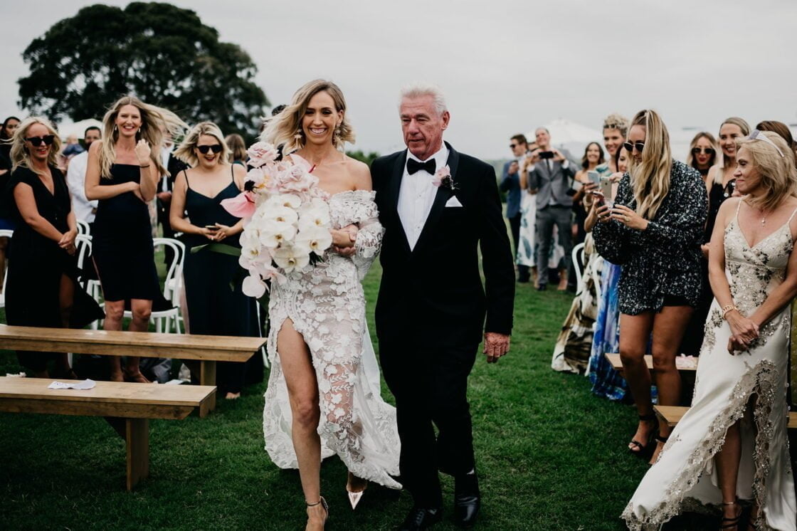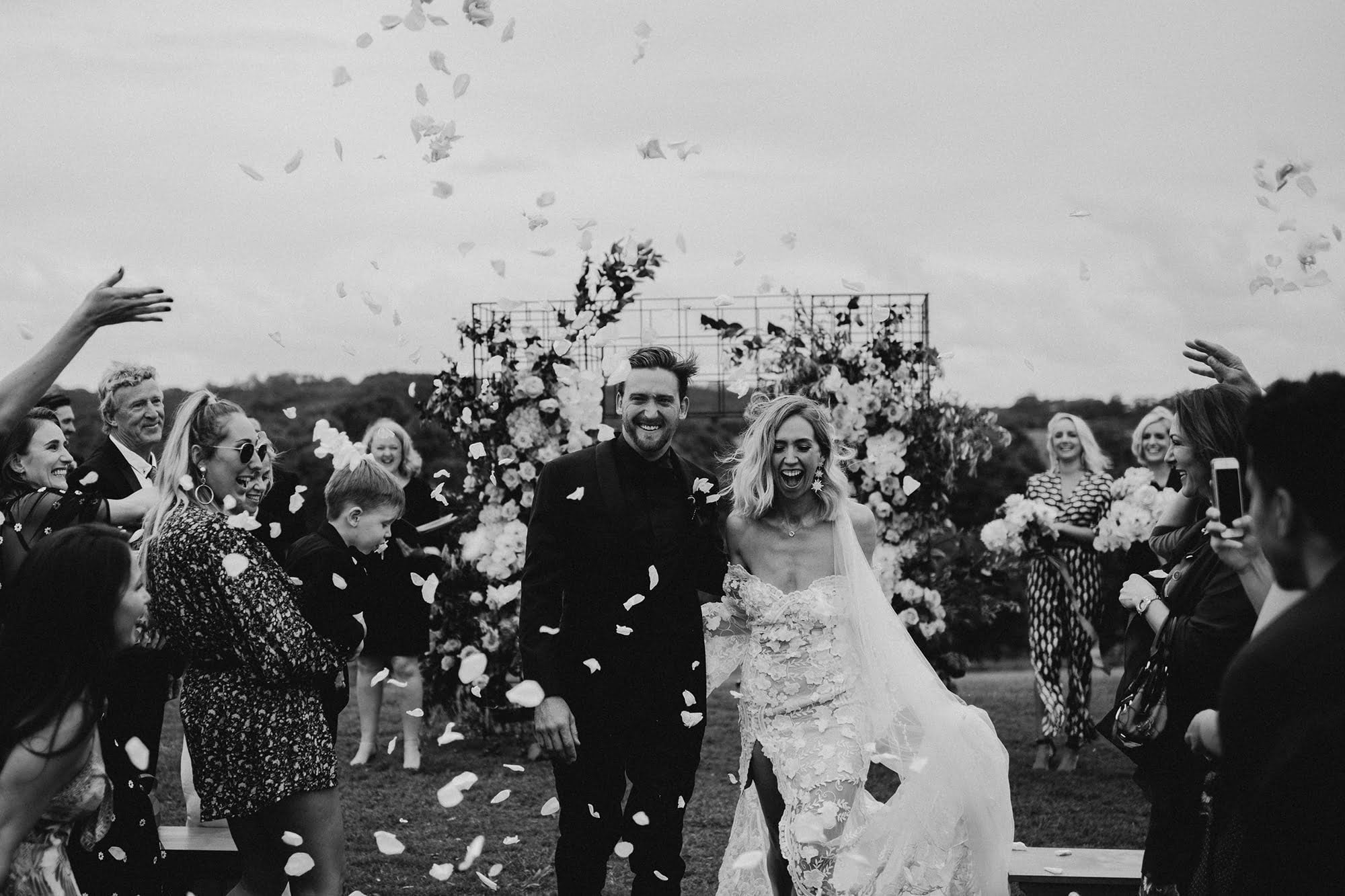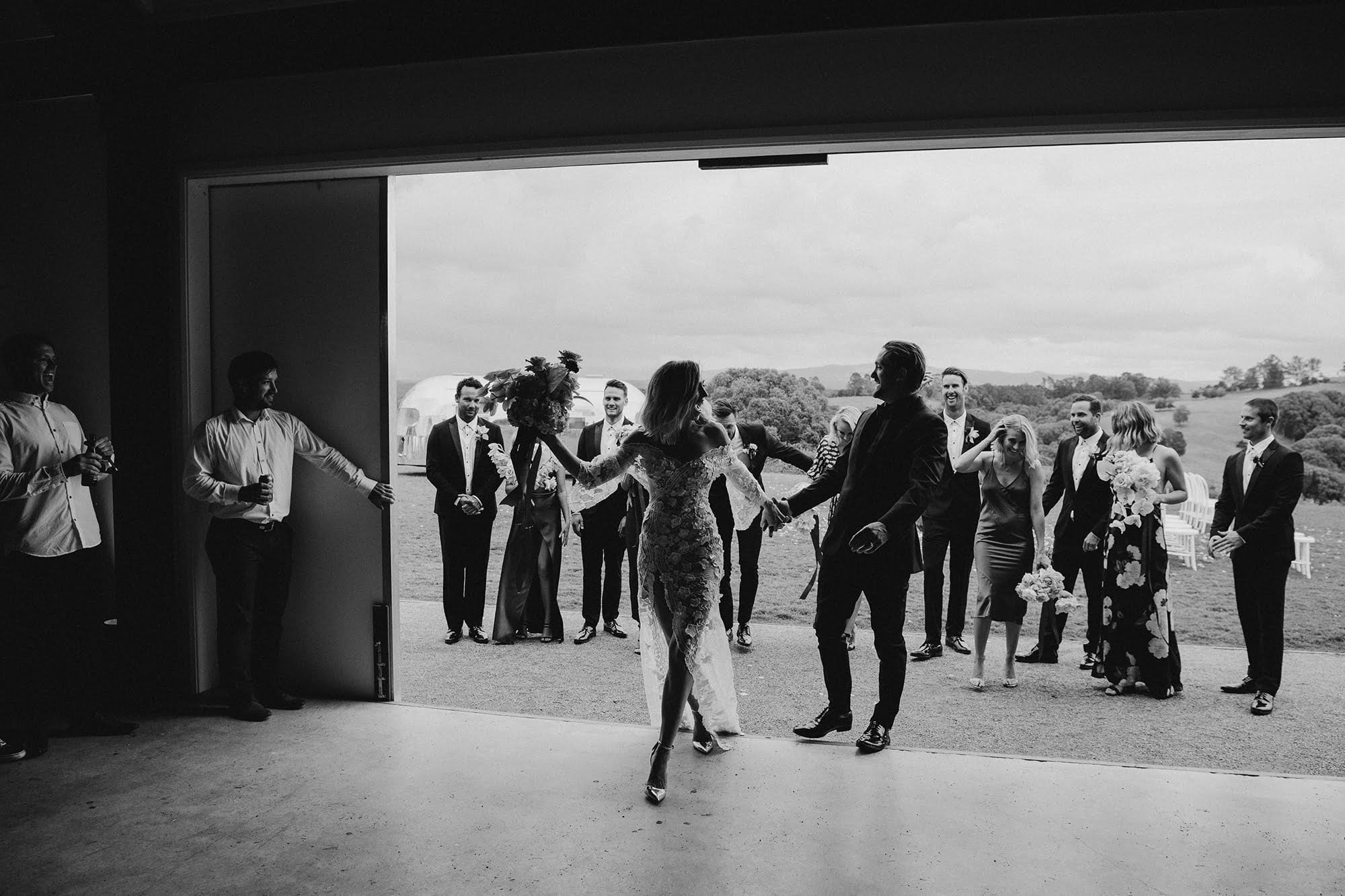 This is the sweet story of an electrician and a stylist, their 10 day trip to Byron Bay for their dream destination wedding, (where they found each five years before), a killer dress (not to mention dance floor), and one glorious ring by Grew & Co, of course. Then there’s the styling, neon signs and an Airstream… As founder of creative studio, The Make Haus, the bride did everything from the venue to the stationary, and of course created the incredible bouquet and floral installations. She set some seriously high expectations and judging by the shots from Jason Corroto and the video by Lynden Foss, we think she nailed it…