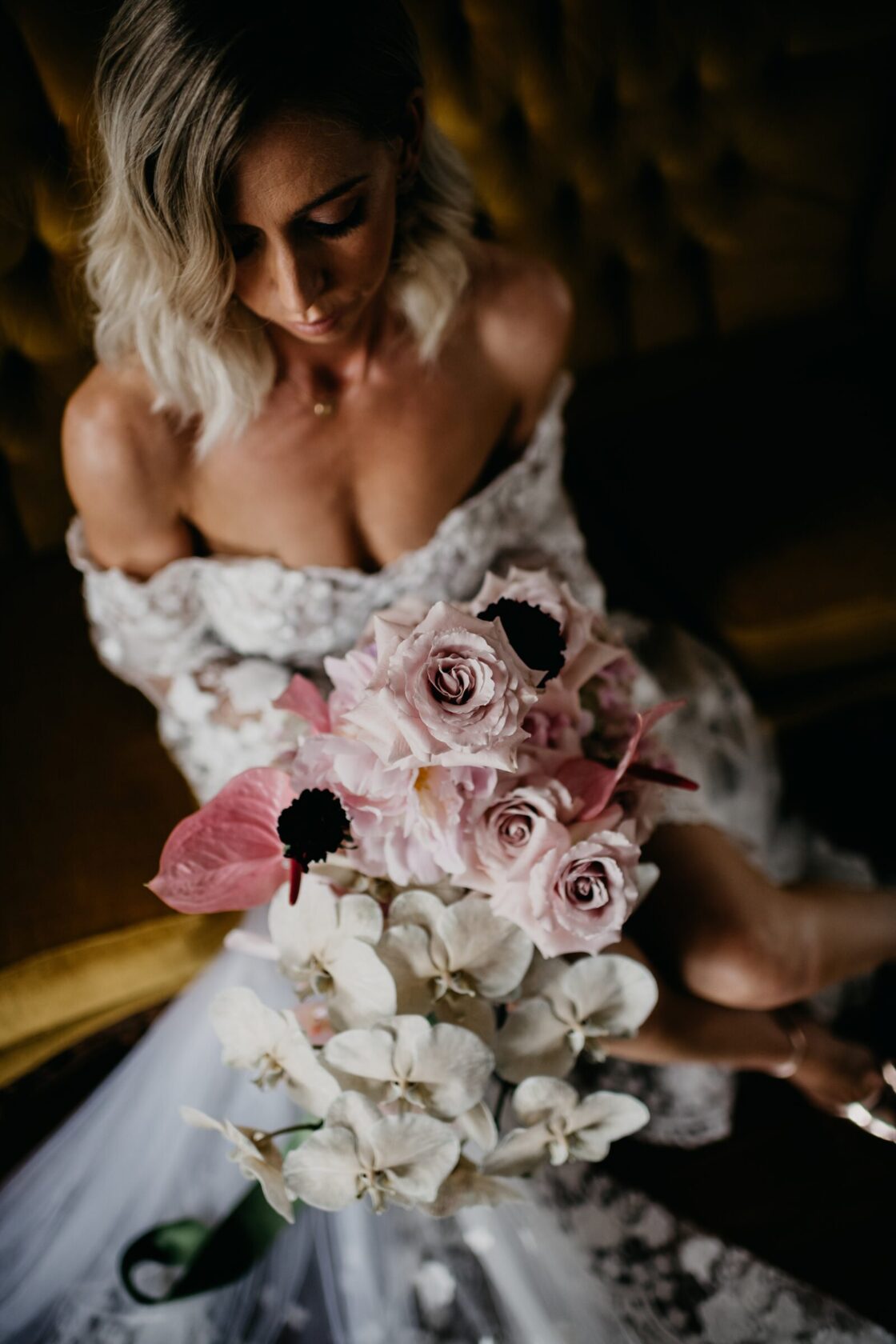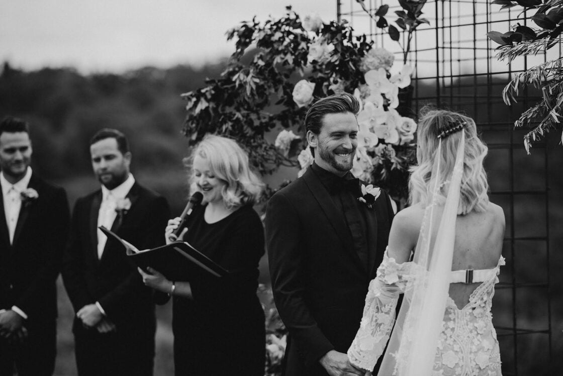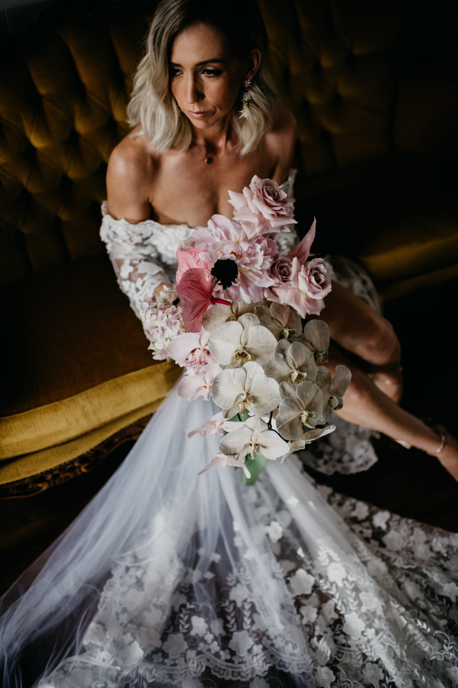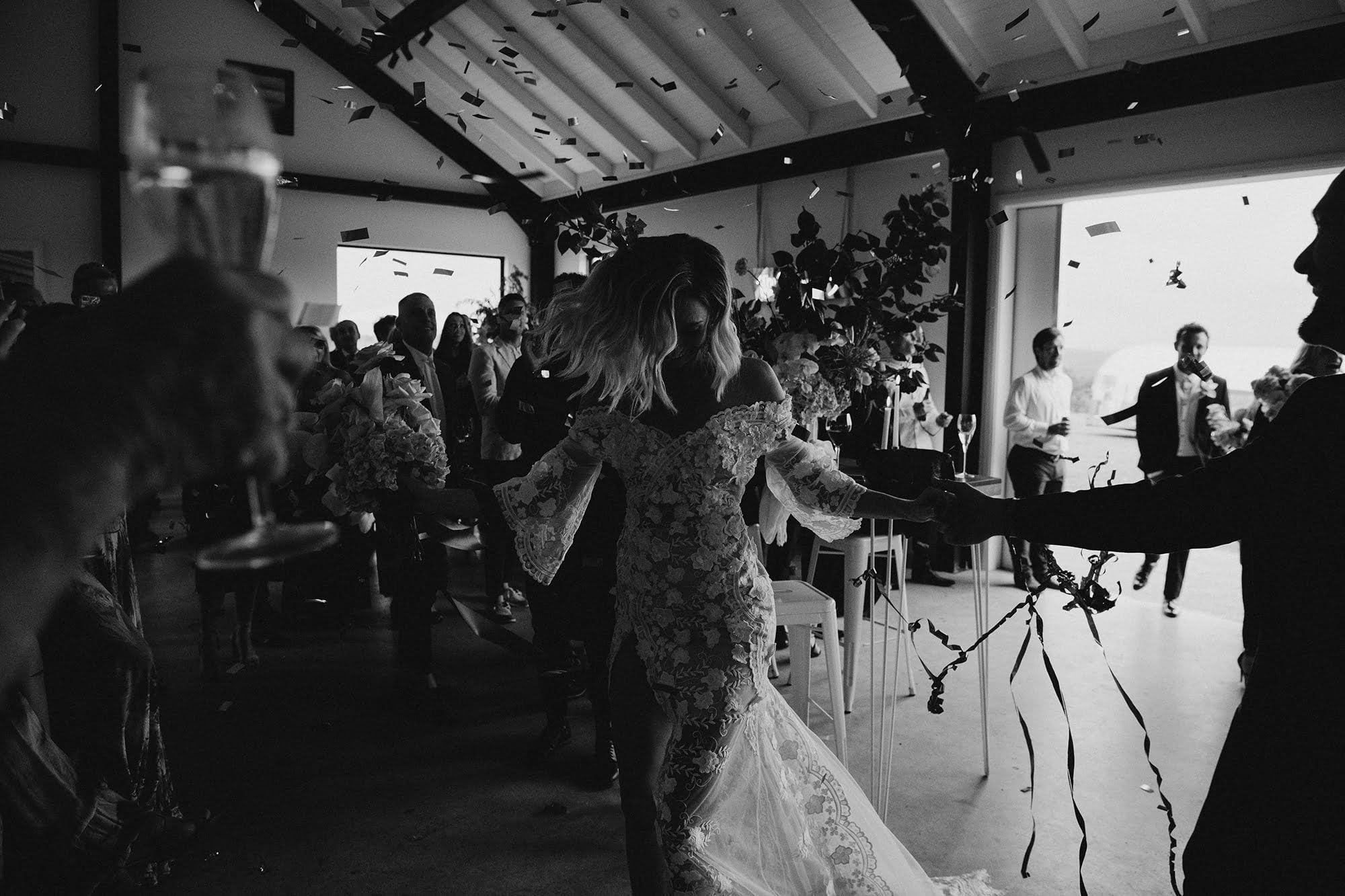 This is the sweet story of an electrician and a stylist, their 10 day trip to Byron Bay for their dream destination wedding, (where they found each five years before), a killer dress (not to mention dance floor), and one glorious ring by Grew & Co, of course. Then there’s the styling, neon signs and an Airstream… As founder of creative studio, The Make Haus, the bride did everything from the venue to the stationary, and of course created the incredible bouquet and floral installations. She set some seriously high expectations and judging by the shots from Jason Corroto and the video by Lynden Foss, we think she nailed it…