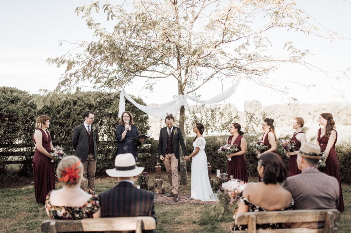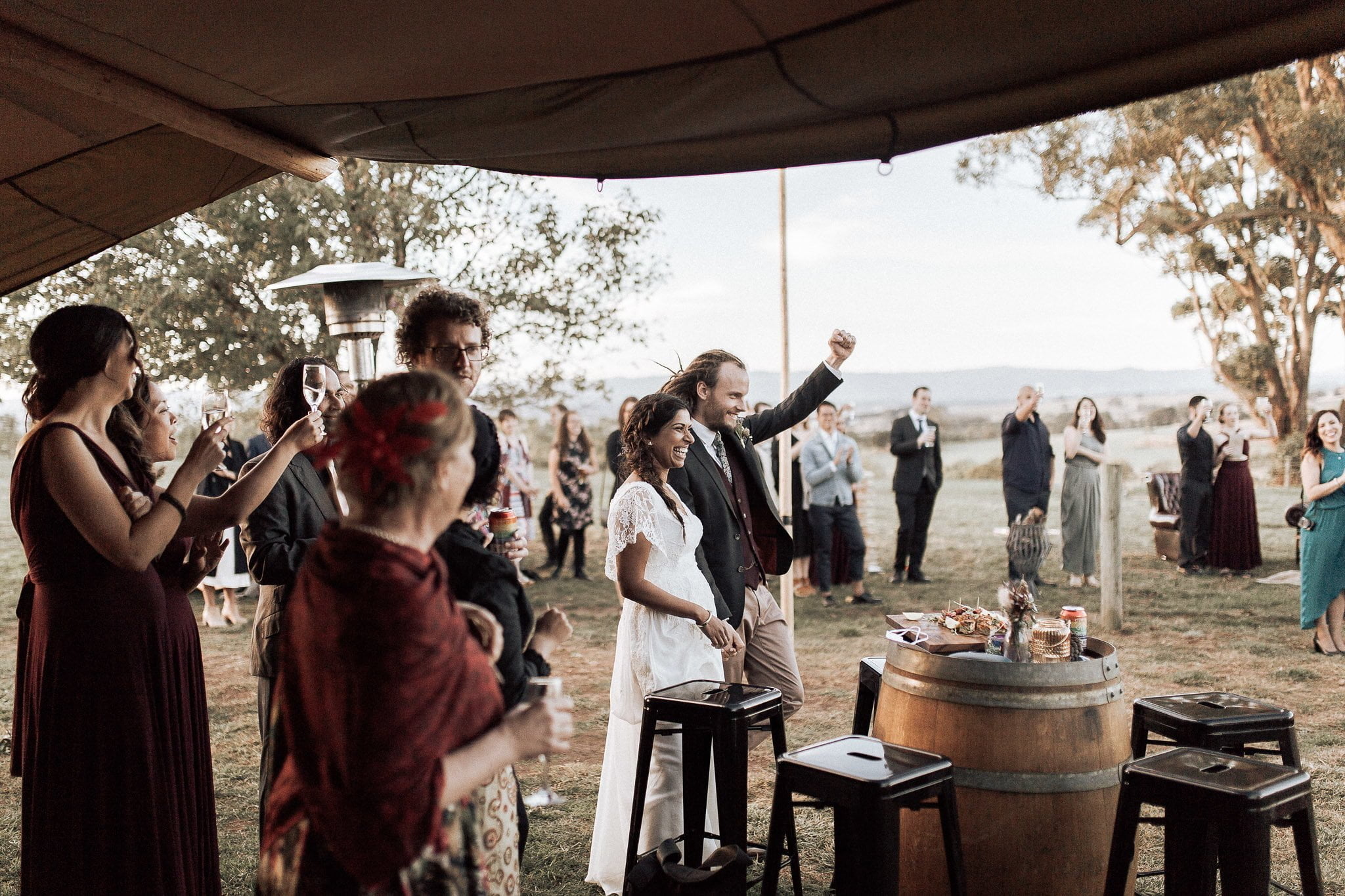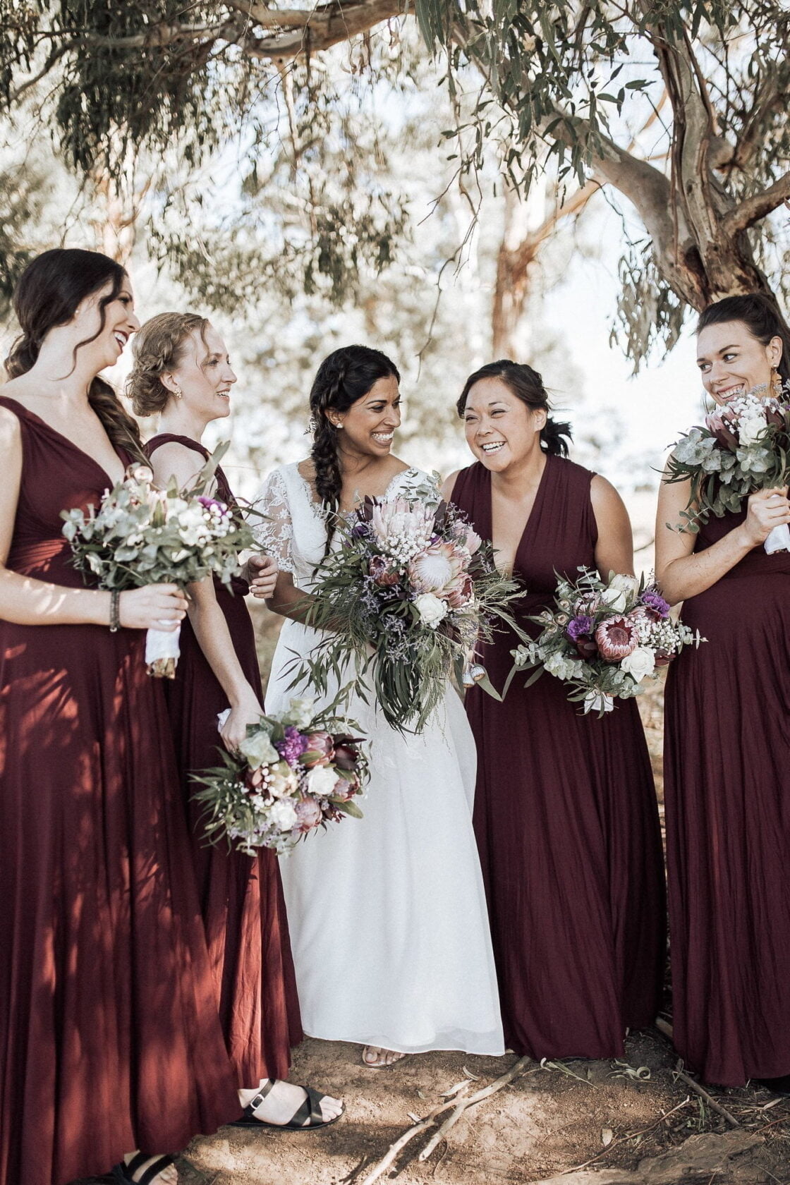 CONTRIBUTING VENDORS Photographer Caroline Sada Weddings Ceremony & Reception Private Property Catering Going Gourmet Wedding Favours Hidden Souk Alcohol Dan Murphy’s Tap Beer Mornington Peninsula Brewery Glassware Waverley Event & Party Hire Stools & Wine Barrels Happy Events and Party Hire Teepee & Festoon Lighting Tipi Tipi Sound Hire RTR Productions Celebrant Megan Jordan Rings Renato Jewellers Portable Toilets Black Tie Toilets BRIDE Bridal Gown Custom Made Robes Spell & The Gypsy Collective  Shoes Sandler Lingerie Brava Accessories Bahgsu Jewels Hair & Makeup Jigsaw Hair and Beauty Bridesmaid Dresses Lulus GROOM Jacket & Shirt Peter Jackson Pants Aquila Tie & Shoes Jay Dillon Grooming Dreadscapes