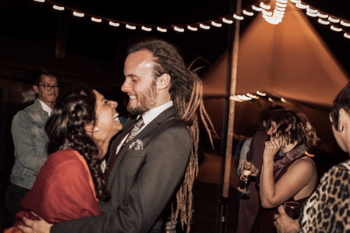 This loved-up couple were lucky enough to have this incredible venue in the family. “The farm belongs to my mum’s partner, Paddy and is a very special place to both of us,” reveals the bride. “The views are spectacular, and the area itself is just beautiful.” Add a teepee, talented photographer, Caroline Sada Weddings, a bunch of DIY projects by a seriously creative groom, and you’ve got the recipe for a great wedding. Scroll down to see all the pics, especially the bride’s epic Spell & The Gypsy Collective robe…