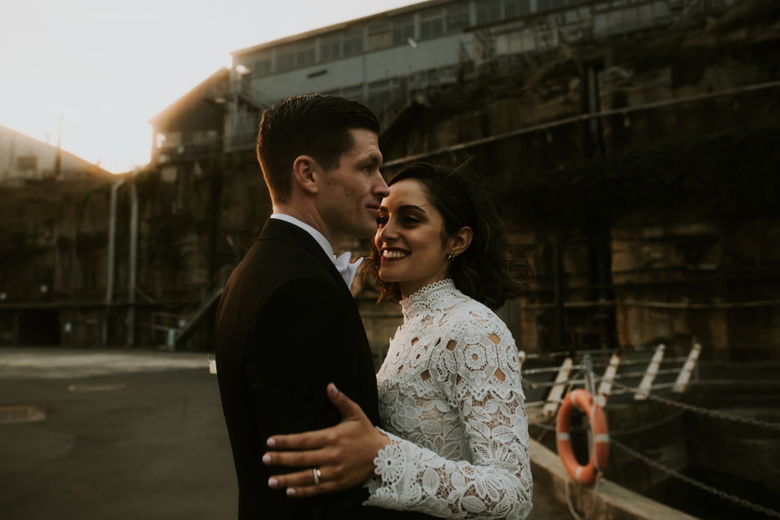THE VENUE “Initially we wanted a venue where we could have both the ceremony and the reception, but the more we looked the more we realised that we had to have the ceremony out the back of my parents’ place because it was more intimate and has one of the best harbour views. The Deckhouse in Woolwich is about a 10 min drive away from their place and also by the water with stunning city views. It was also a nice way for us to tie in Scott’s father’s shipwright background as it’s right next to a shipping yard.”