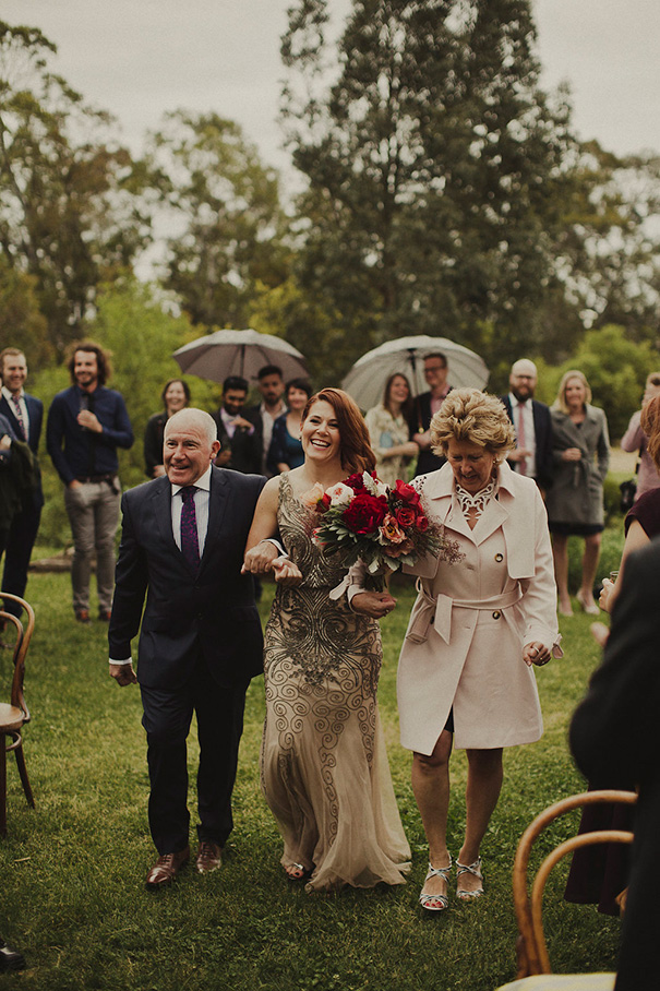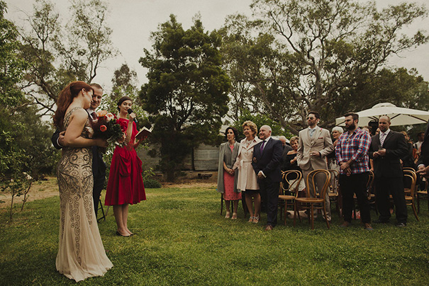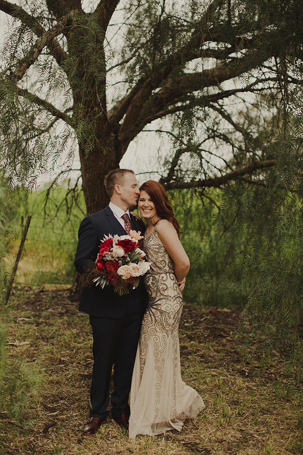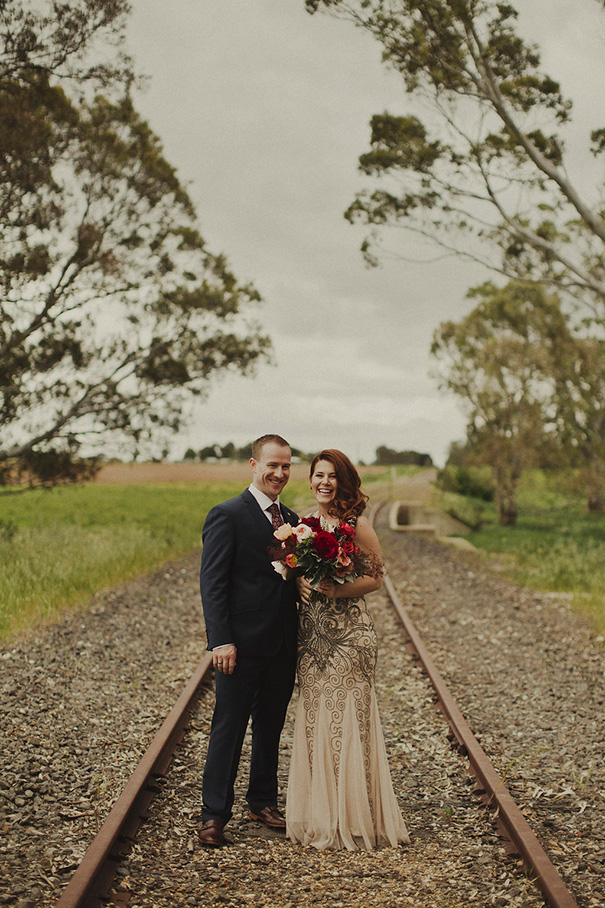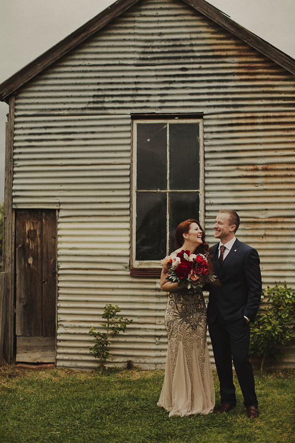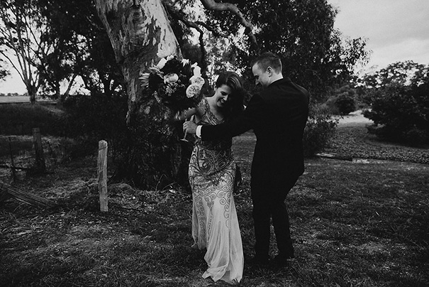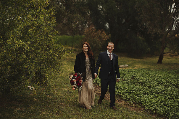 CREDITS Photos Dan O’Day Photography // Florist Katie Marx // Ceremony and reception Butterland, VIC // Catering Little Food Hut // Cake Johnny Baker // Decorative elements QueenB // Wedding favours Ascot Vale Garden Centre // Prop or furniture hire Bendigo Party Hire // Lighting / sound hire and Entertainment Rainbow Connection // Celebrant Zena Lythgo // Engagement ring Helen Badge // Bridal gown designer Phase Eight // Lingerie and garter Honey Birdette // Shoes Steve Madden // Accessories Samantha Willis // Makeup Jessica Bell Makeup // Suit and tie Ted Baker // Shoes Wolf Kanat // Socks Happy Feet.
