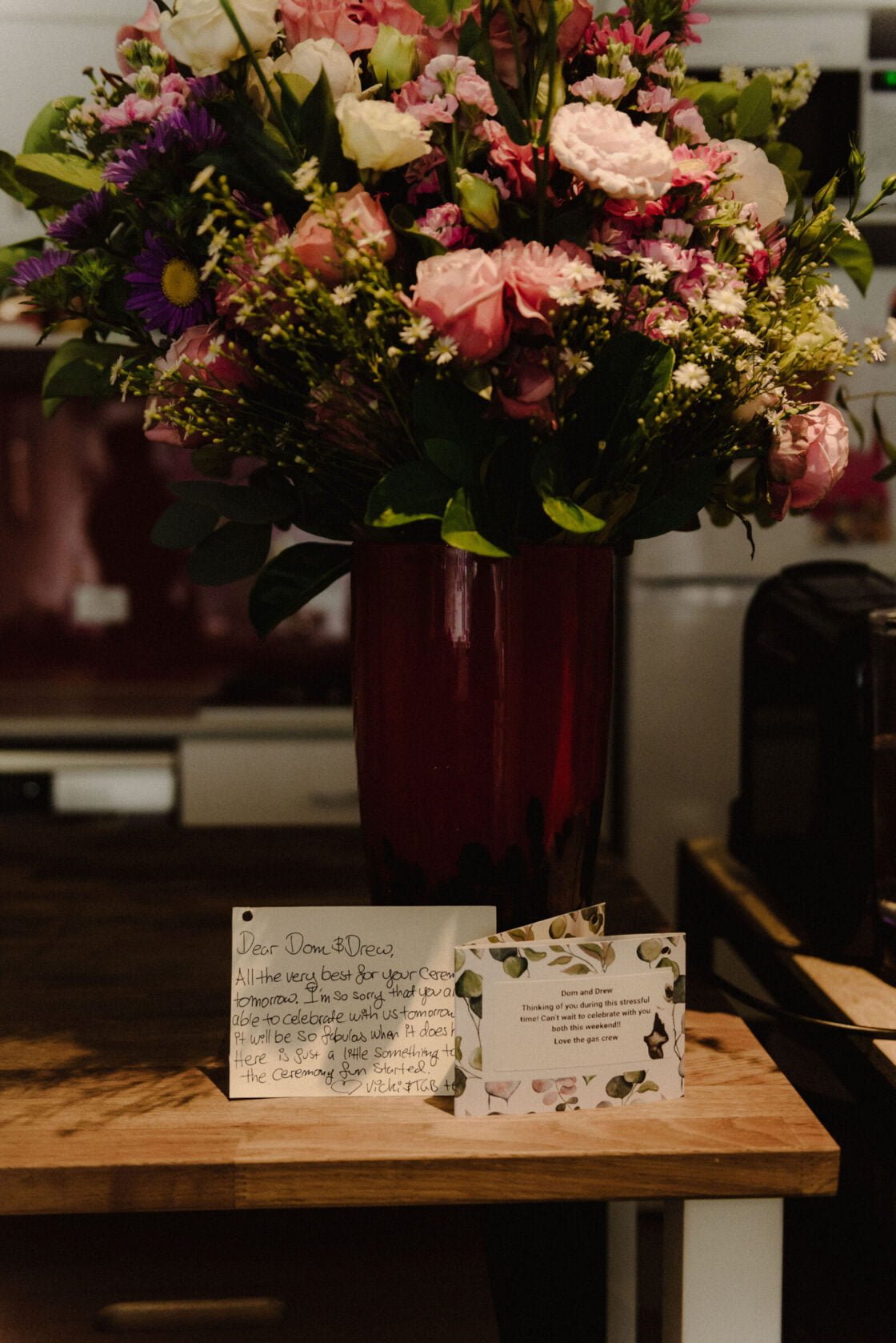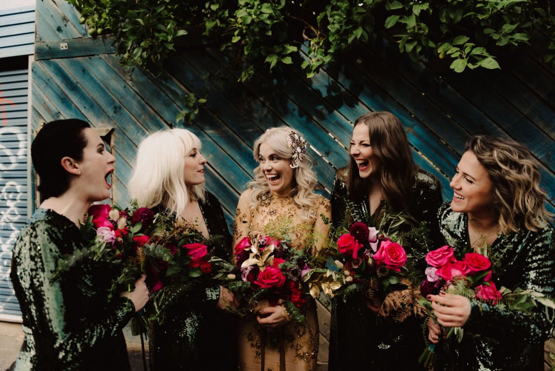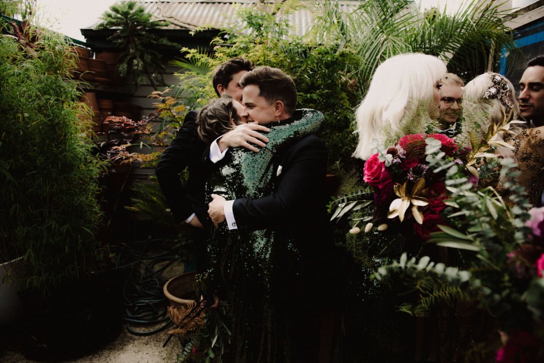 Dom and Drew are cute guys. And had an awesome wedding – even on the cuspt of COVID. “We didn’t imagine marriage to be in complete lockdown the next day haha! To be stuck at home for seven months straight, is a real test of your wedding vows! It’s also a bit of a shock when you introduce [each other] as ‘Husband’ or ‘Wife’… We’ve been practising that in the mirror due to lockdown. And our reflections are just as confused as we are!” You can see why we like them right? Fast forward to the big day and add a whole host of our fave vendors;  She Takes Pictures He Makes Films on camera (both photographing the good times and videoing them!), Fourside Food Design & Events on catering and Miss Ladybird Cakes on the erm, cakes, of course. So scroll down for all the deets…