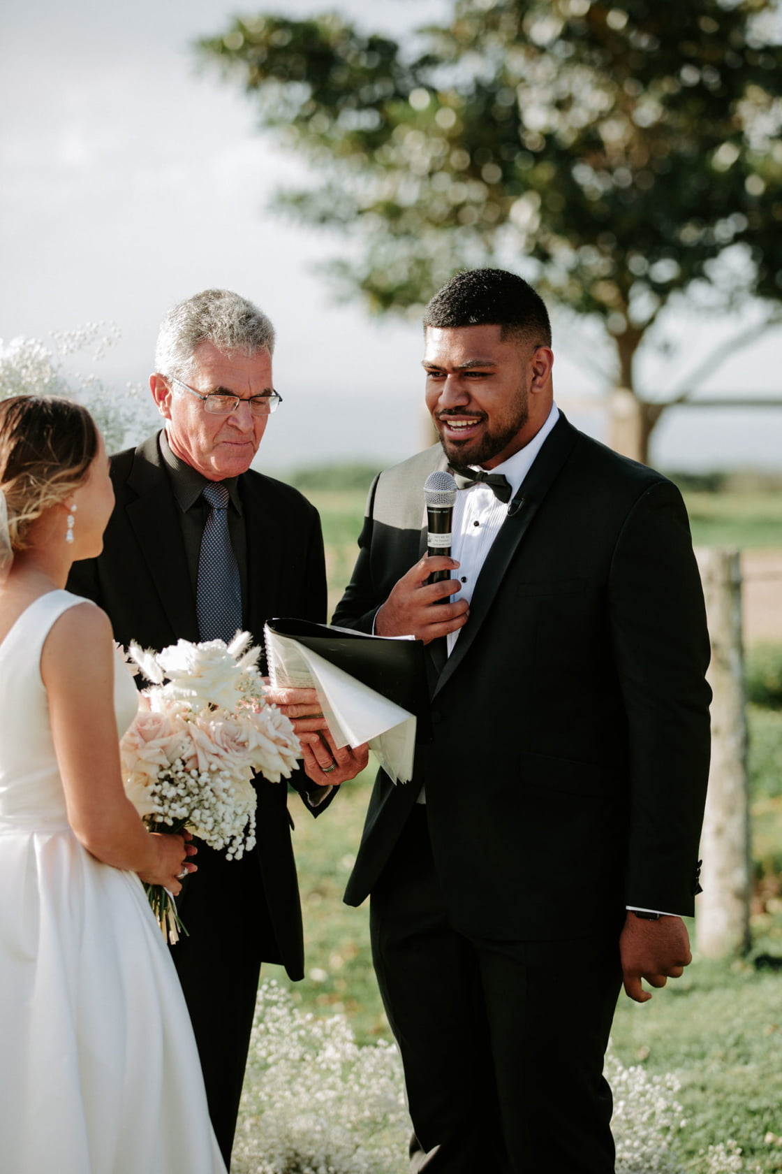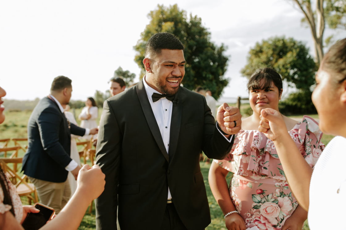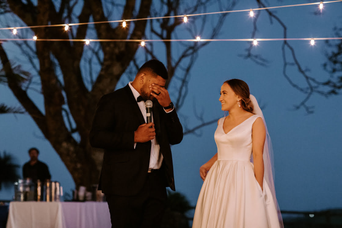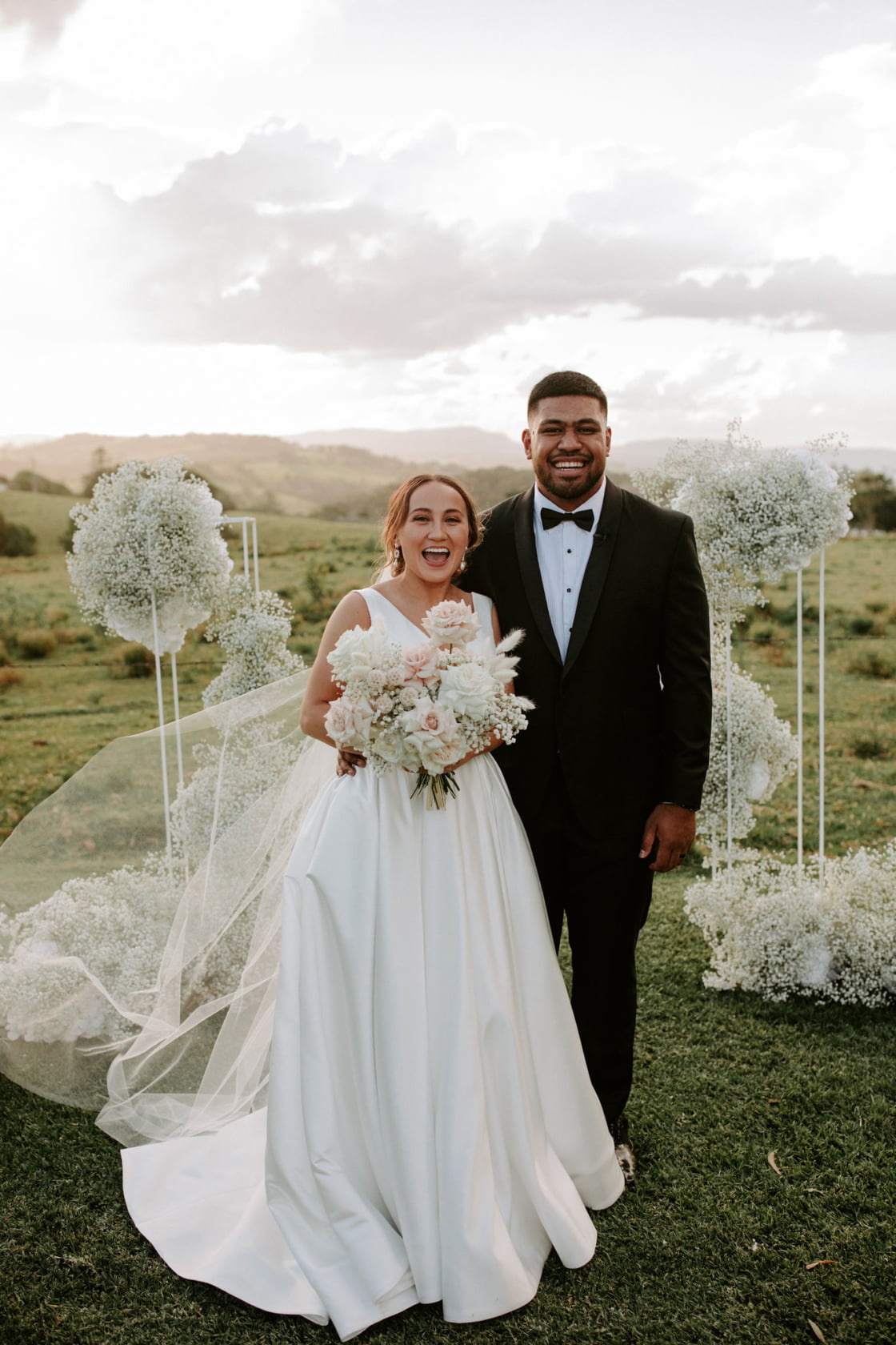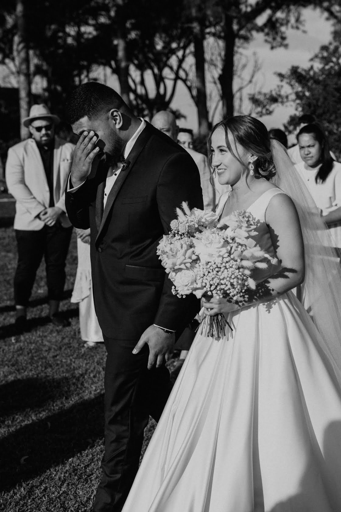 MEMORABLE MOMENT “Firstly walking down the aisle with my Dad was really special because I wasn’t sure my Dad would make it on the day due to the Queensland border being closed. (We were so lucky to have the borders open for Queenslanders to travel as far as Byron Bay from 1 AM on the day of our wedding). It was also such an honour for me to perform a Tongan Tau’olunga alongside Nella’s sisters and a Samoan Taualuga to acknowledge both our cultural backgrounds. The last week in the lead up to our wedding was full of last-minute dance practices for both Nella and I. Nella performed a hilarious and fun dance with his best mates which I think stole the show!”