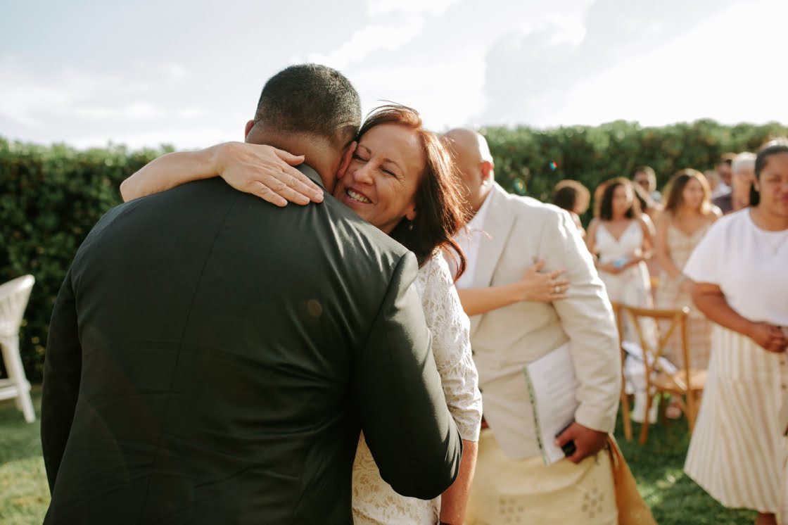 FAVE DETAILS “Nature really worked with us to make our day feel like a fairytale. It was forecast to storm but we were blessed to have the storm clear just before the ceremony and it left behind beautiful big clouds for our ceremony, a stunning sunset during our photo session and the moon rising over the ocean throughout our reception. The weather provided the perfect backdrop to bring our dream wedding to life. [Also], the cake! I loved it not only because it was delicious and looked pretty, but also because of the genuine love and care that went into making it.”