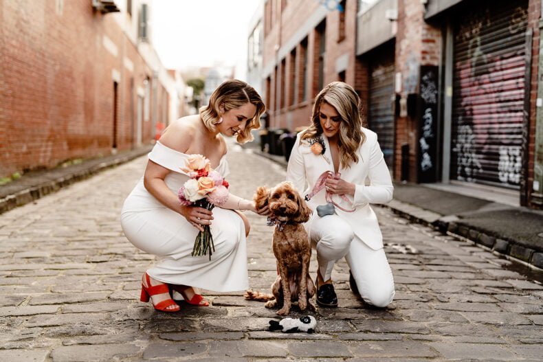 Moose, ofc, looks totally dapper in the photos of the big day, taken by our friend Ashleigh Haase, who the brides describe as the “bee’s knees”. Scroll to see all the sweet snaps for yourself…