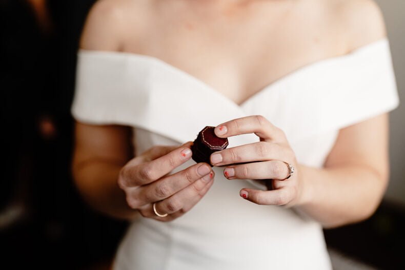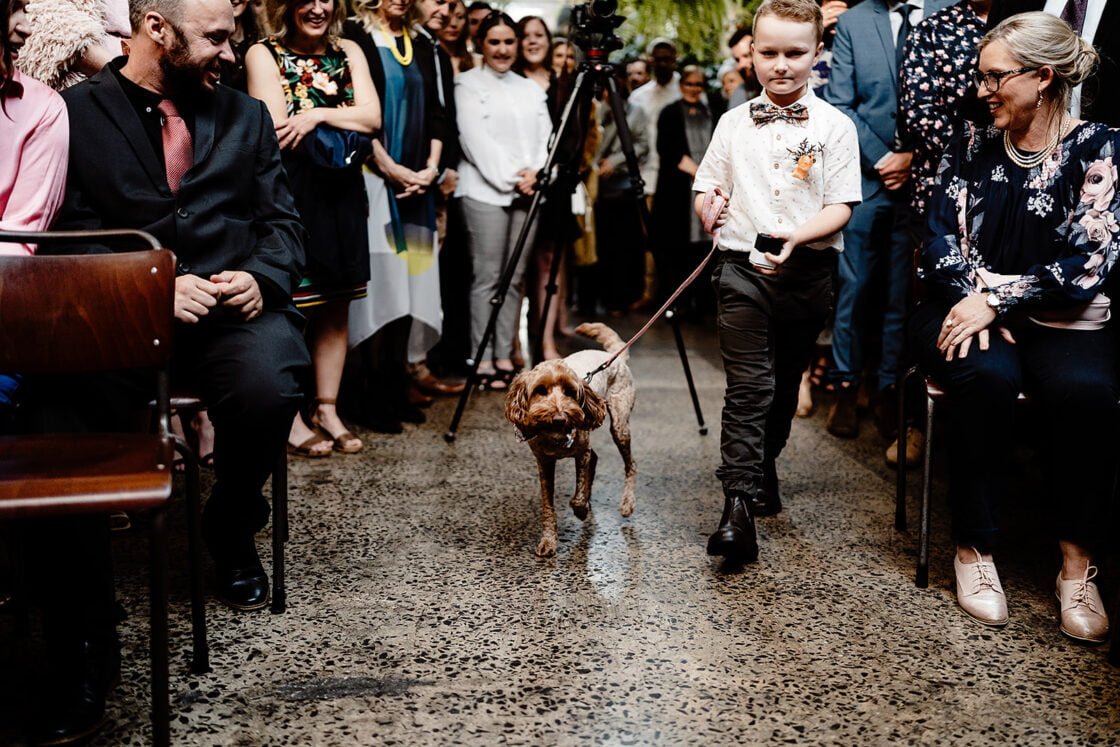 Folks, we’ve got to come clean. We love Eliza and Shannon’s wedding at Rupert on Rupert… but it’s their labradoodle Moose (and the story of his pre-wedding glow-up) who captured our hearts! “Moose was our ring bearer for the ceremony. We took him into the groomer a few days before the wedding, to get a bath and touch-up, and they accidentally shaved him! The groomer called us crying and felt so terrible. She gave us a few free jackets and didn’t charge us for the service. We didn’t think it was very funny at the time, but it’s definitely funny now!” LOL.