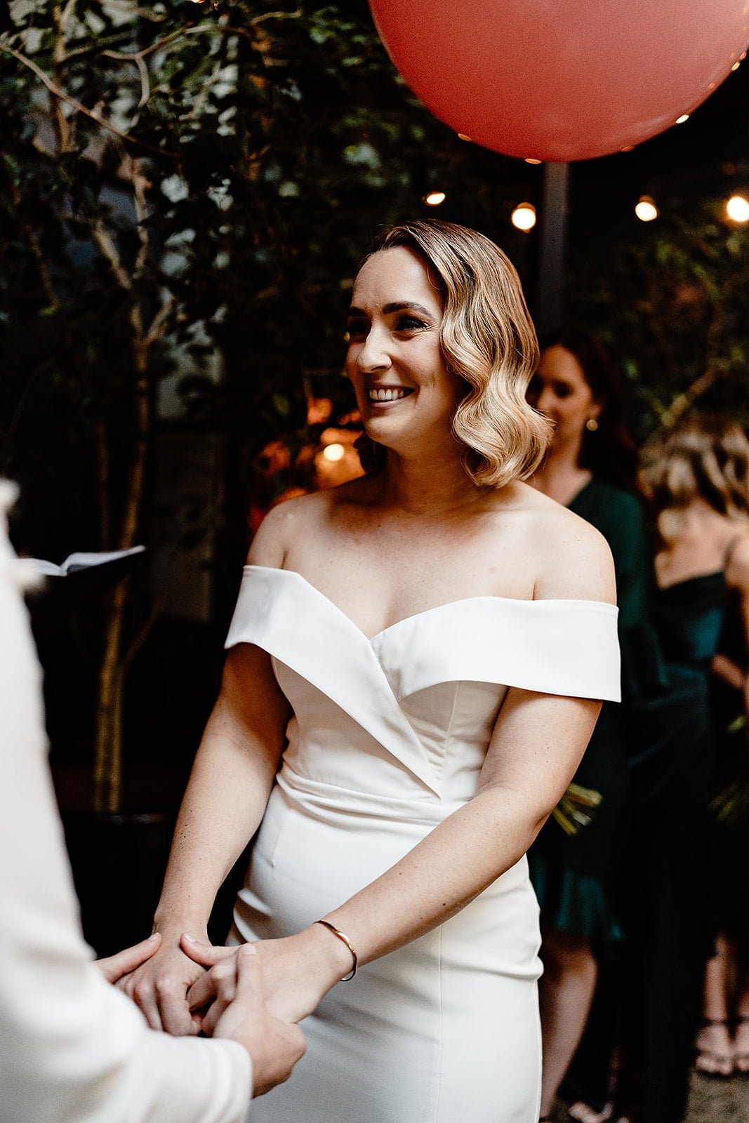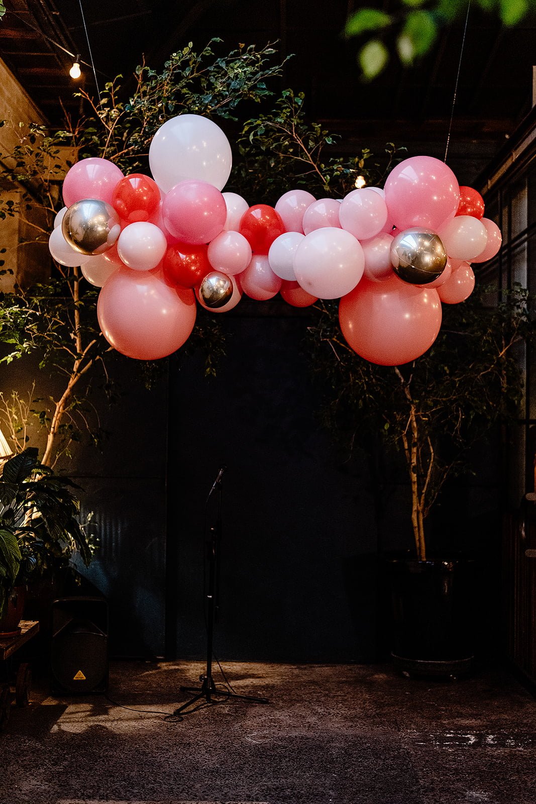FAVE DETAILS “Shannon wasn’t keen on the idea of balloons as a garland instead of flowers. I had a lot of pressure on me to deliver and boy was I happy I listened to my gut. The pop of colour and just being a little different turned out amazingly! Guests got photos in front of it all night.”