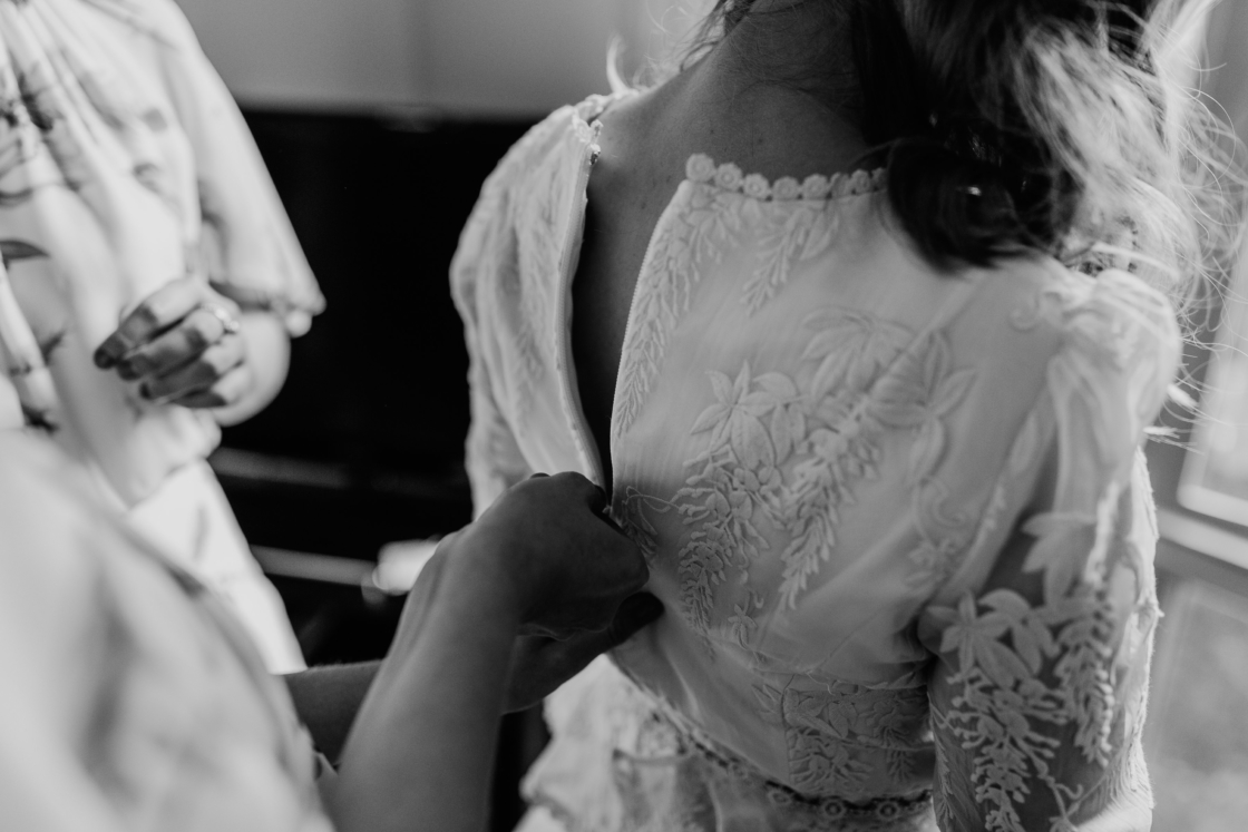 THE DRESS “I saw the dress when I was shopping one day and thought to myself, ‘If I were getting married, that’s what I’d like to wear’. Sure enough, I got engaged a month later. My mum and sister flew down a few weeks later to go wedding dress shopping and I said, ‘maybe let’s just have a quick look in Zimmerman’. It was the first dress I tried on and loved, so our wedding dress shopping day was over by 10am!”