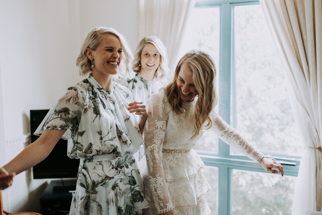 THE DRESS “I saw the dress when I was shopping one day and thought to myself, ‘If I were getting married, that’s what I’d like to wear’. Sure enough, I got engaged a month later. My mum and sister flew down a few weeks later to go wedding dress shopping and I said, ‘maybe let’s just have a quick look in Zimmerman’. It was the first dress I tried on and loved, so our wedding dress shopping day was over by 10am!”