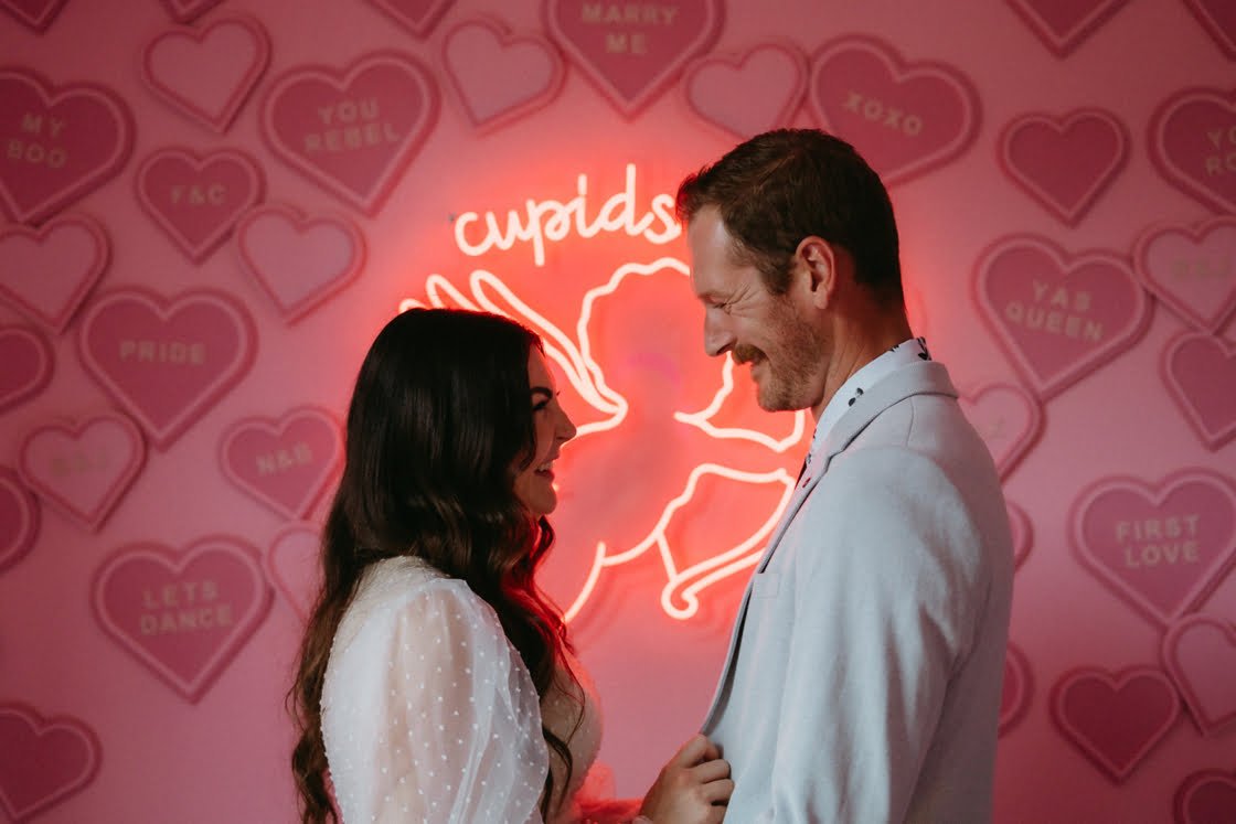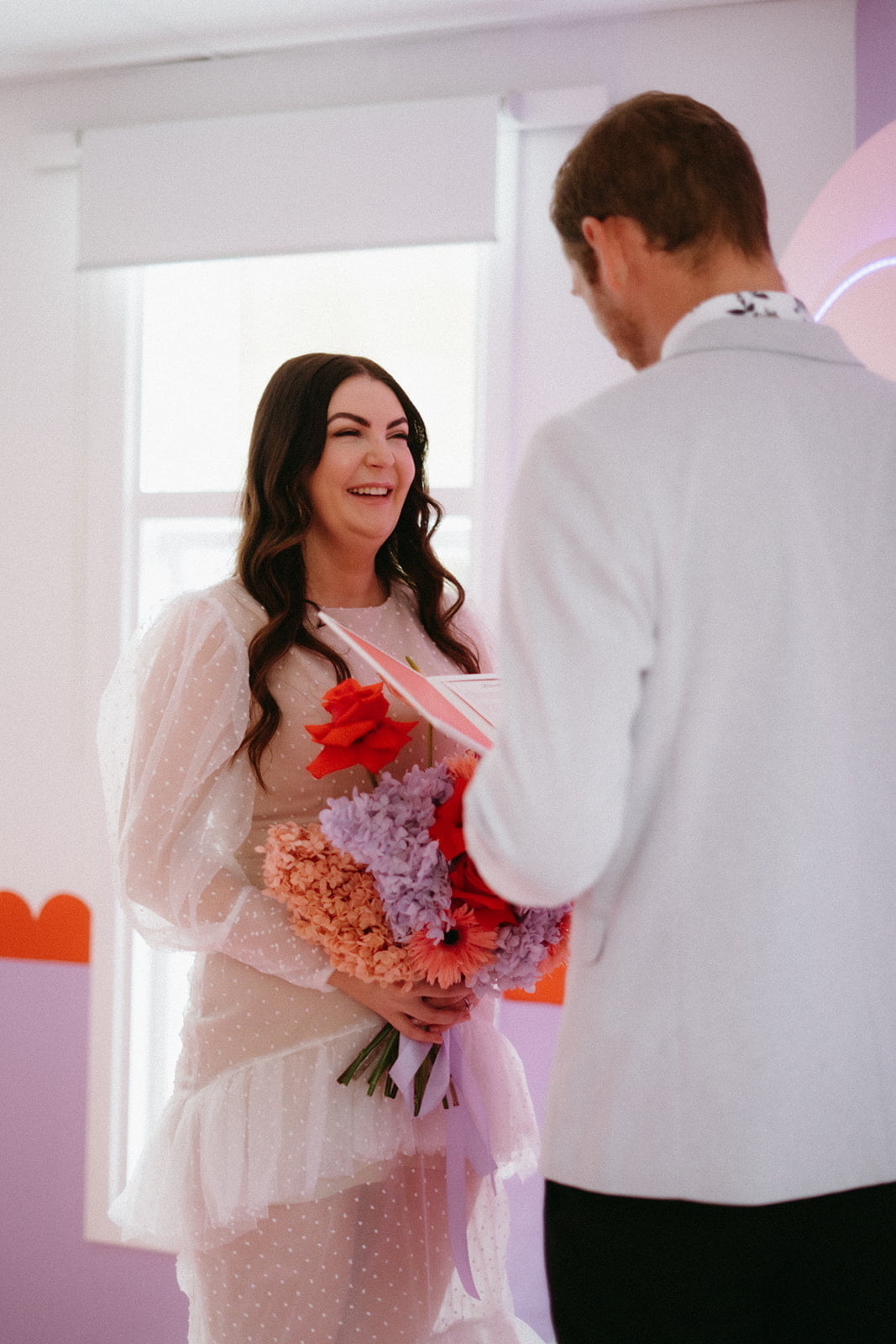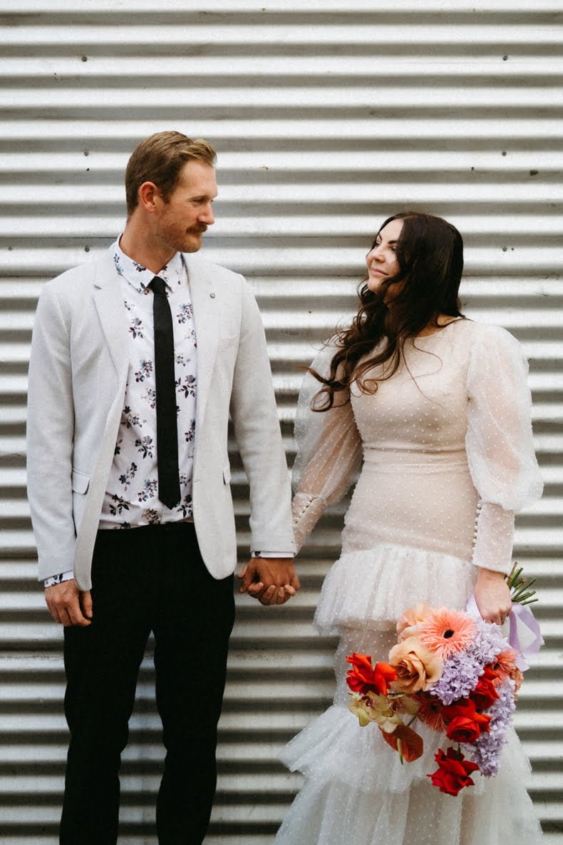 The pair gave the fabulous Kitty Loves Love a holler to photograph their retro-dream pop colour nups and as you’ll see, it really was a whole vibe. And now they’re officially hitched? “You can get away with so much once you’re married, it’s really insane… I have never heard so many couch farts in my life and there’s nothing I can do about it.” Ha!
