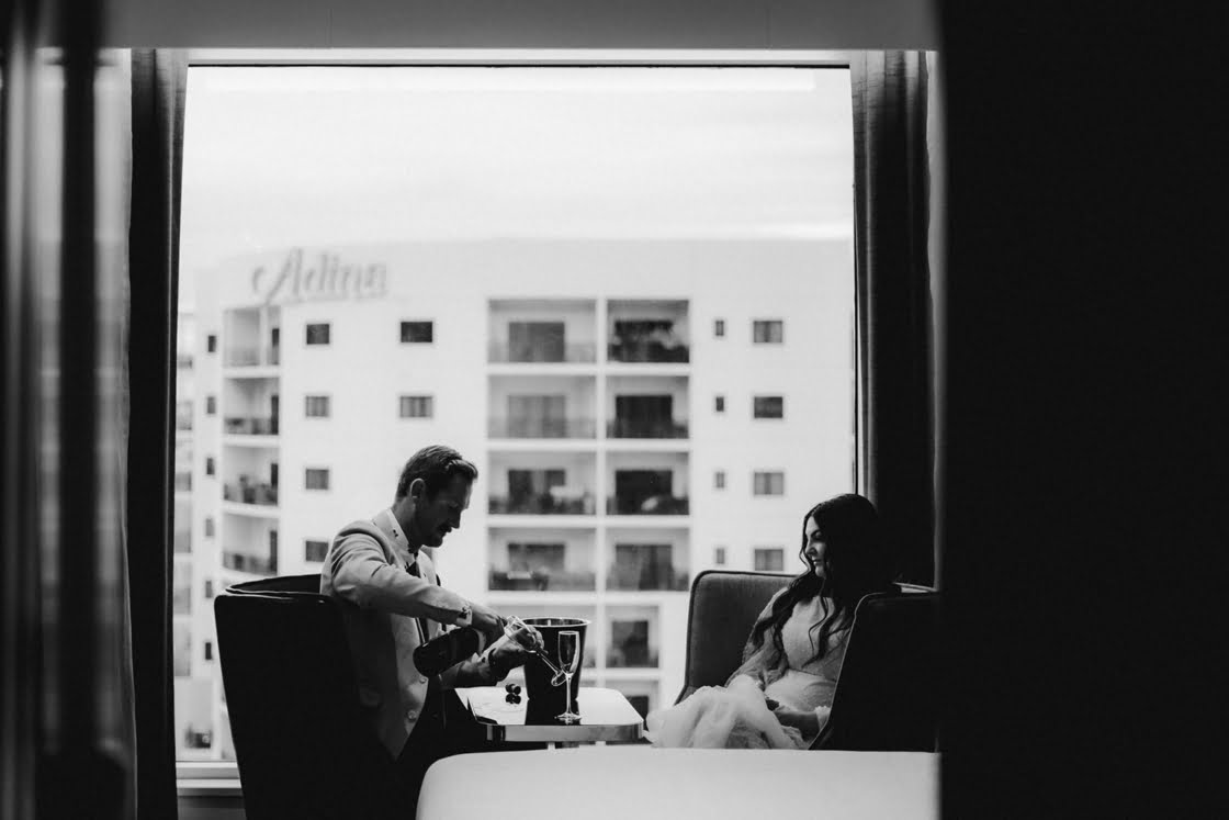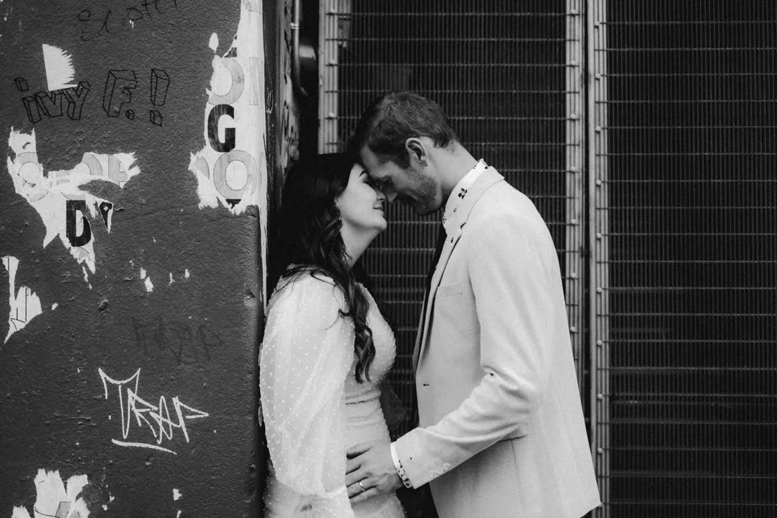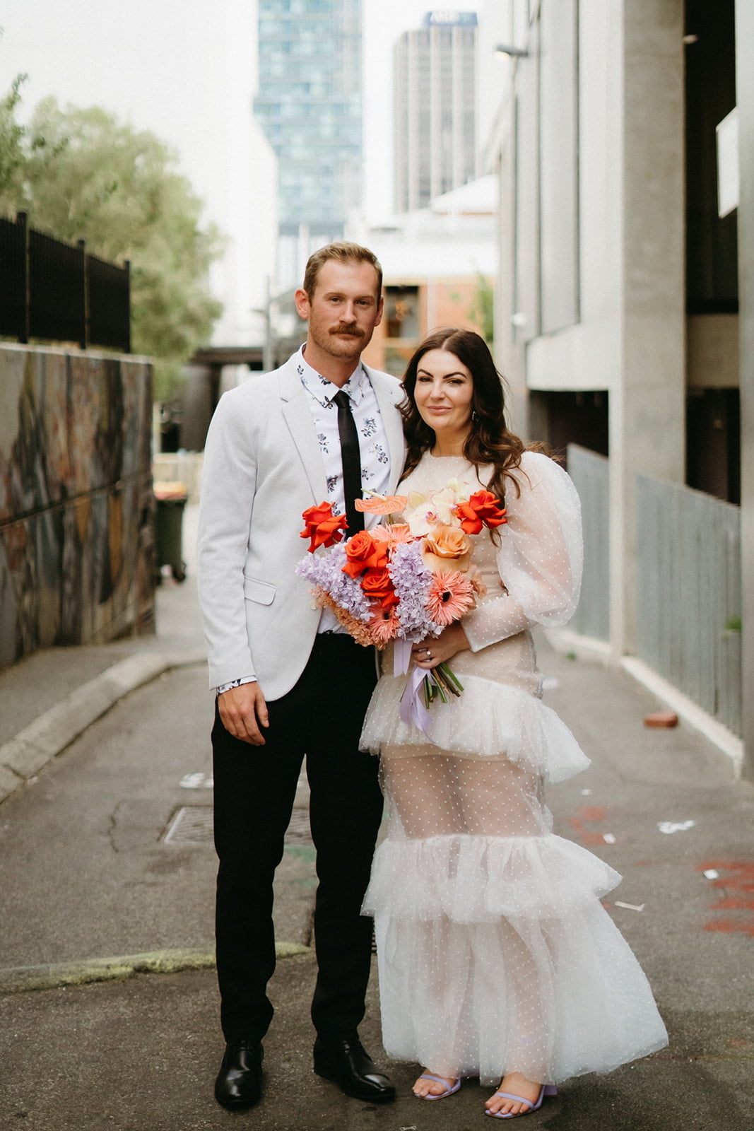CONTRIBUTING VENDORS Photographer Kitty Loves Love Stylist My Styling Edit Florist Freakhaus Ceremony Rebel Rebel Wedding Chapel Celebrant Dilhari via Kiss Me You Fool Rings Michael Hill, Pandora THE BRIDE Gown Dvout Bridal Shoes Pretty Little Thing Earrings Zahar Bag Miss Monogram Hair & Makeup Muse Studio Collective Fragrance Chanel No. 5 THE GROOM Jacket, Pants, Shirt, Tie & Shoes yd. Watch Daniel Wellington