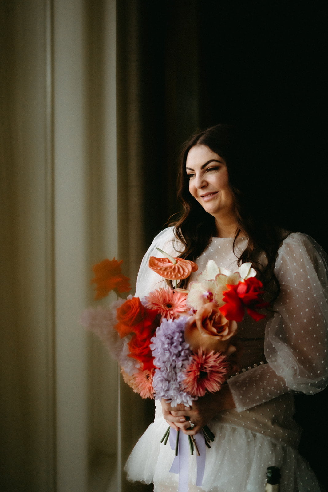 FAVE DETAILS “The bouquet was just to die for. Eden at Freakhaus did such an amazing job. She did the interior design at Rebel Rebel Wedding Chapel so I knew when I asked her to create the bouquet it would be exquisite and match the venue and my vibe perfectly. I left creative control up to Eden and felt comfortable trusting her to make something magical and she did not disappoint. All I wanted was for it to match my lilac accessories and the venue and she delivered.”