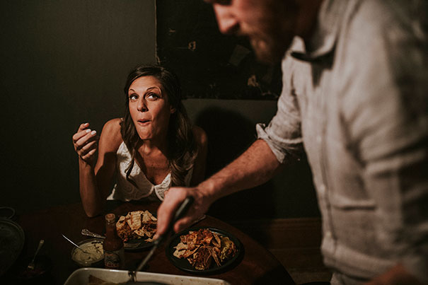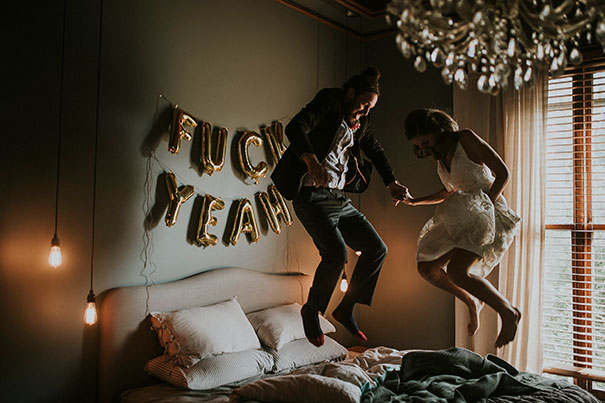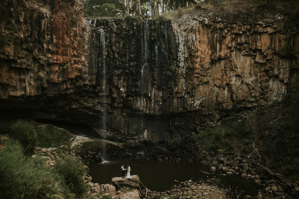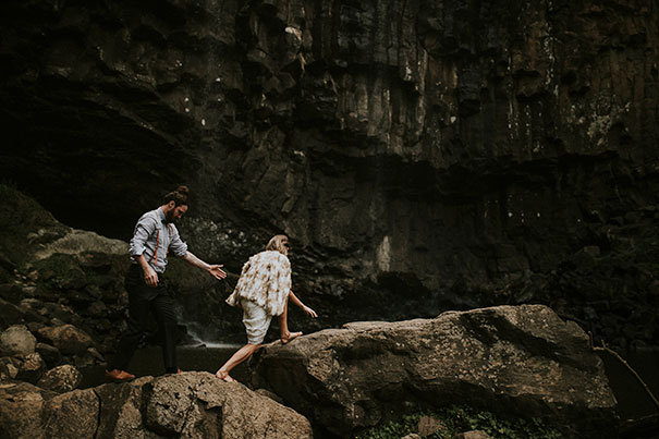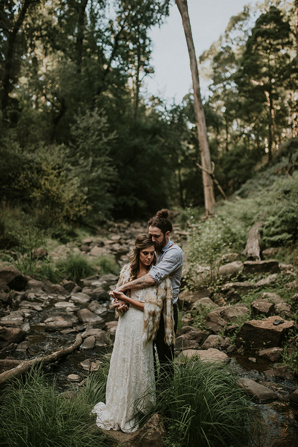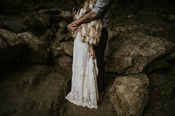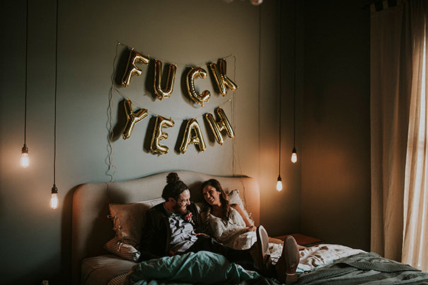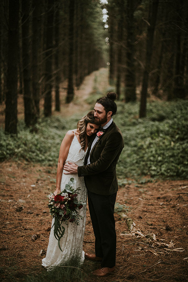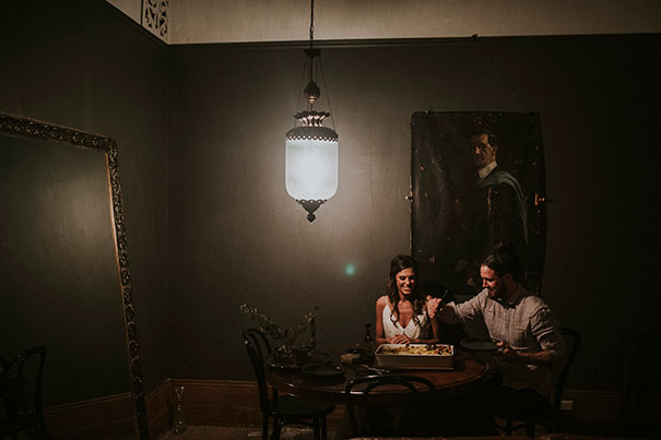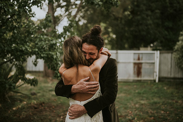 The fun times and deviation from the norm didn’t stop there. For a duo as unique as this one, a typical wedding band for the groom just wouldn’t do. £Instead (mid ceremony) I drew a circle on Dan’s arm which he got tattooed the next day. When I was drawing the ring’, I said something along the lines of, gee, I better not stuff this up!’, at which point, I knocked the pen with my pinkie finger, resulting in me drawing a kidney bean on Dan’s arm instead of a circle. He got it tattooed exactly how I drew it, so it just sort of looks like he has an ode to jelly beans tattooed on his forearm. It was a funny moment, one which I feel eternally bad about. Sort of. Not really, jokes Em.