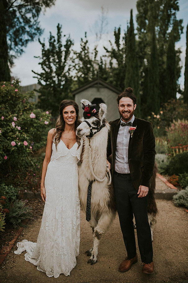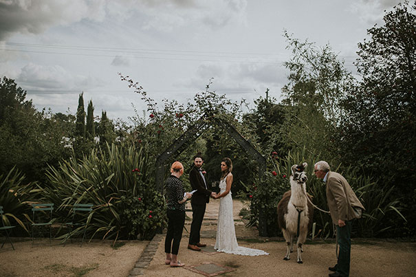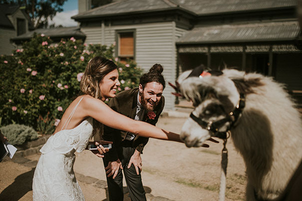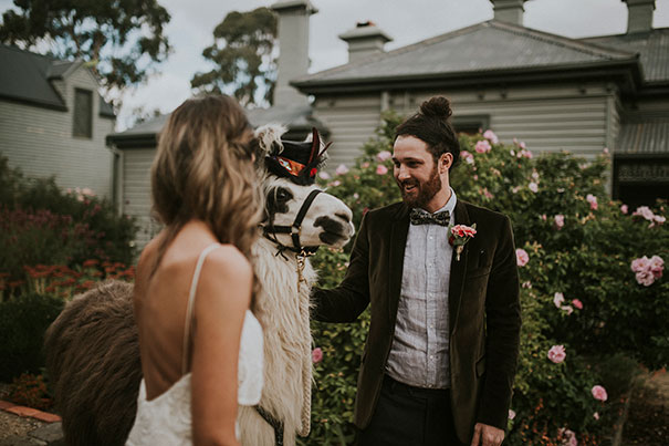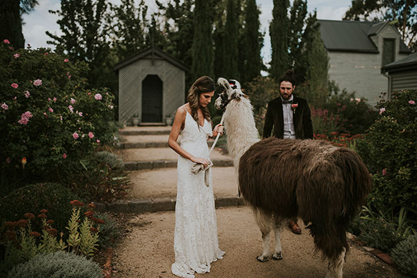CREDITS Photos and cinematography Barefoot & Bearded // Florist Raven and the Rose // Stationery Minikin Mill // Printer Snap Printing // Ceremony Ellis House, VIC // Decorative elements Poppies for Grace // Celebrant Mrs. Jones // Rings Magenta Creative Jewellery // Llama Hire Hanging Rock Llama Treks // Bridal gown designer Rue De Seine // Bridal Boutique The Bridal Atelier // Robe Homebodii // Shoes RMK Shoes and Novo // Hair and Makeup Living Dolls Makeup Artistry // Jacket Jack London // Shirt Industrie // Pants MJ Bale // Suspenders Garbage Leather via Etsy // Tie / Bow tie Scotch & Soda // Shoes and socks Tarocash // Barber / grooming Snips of London.