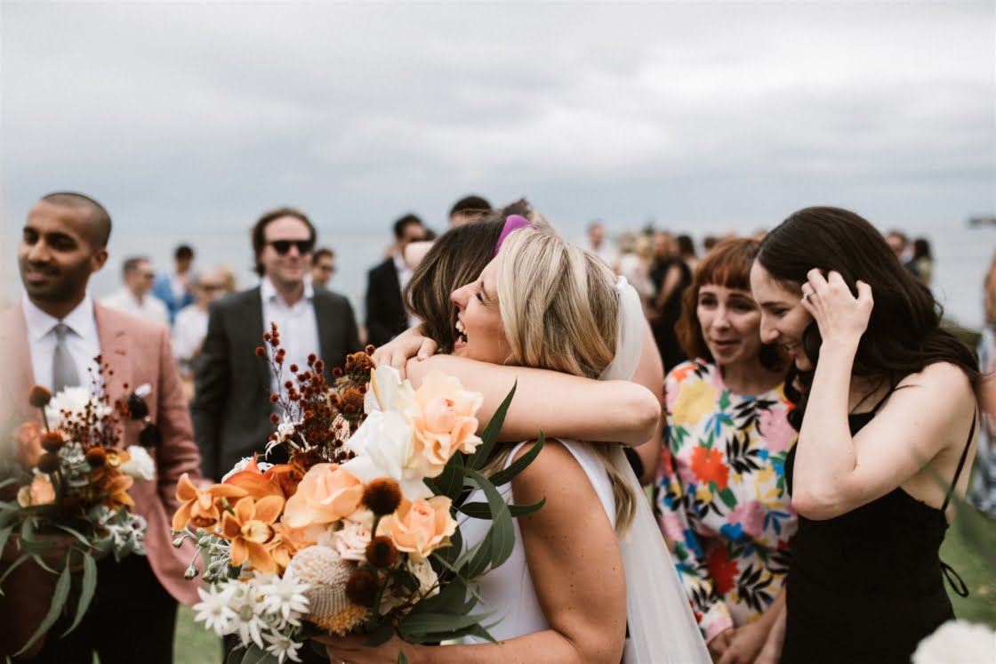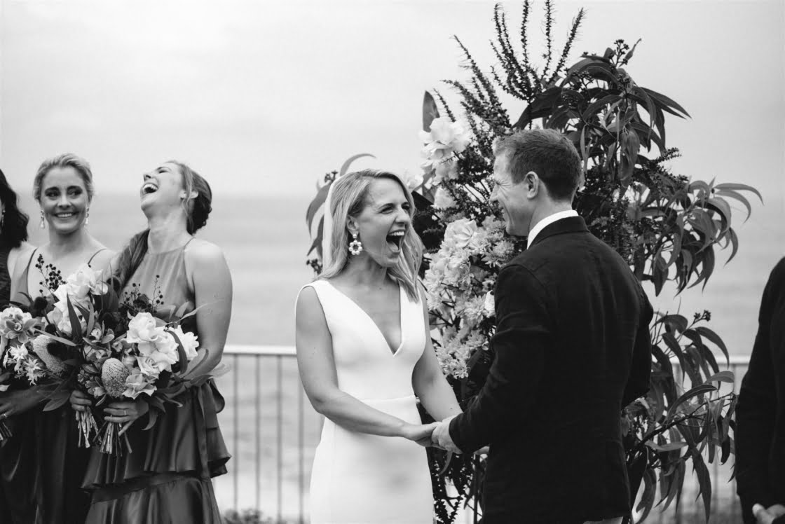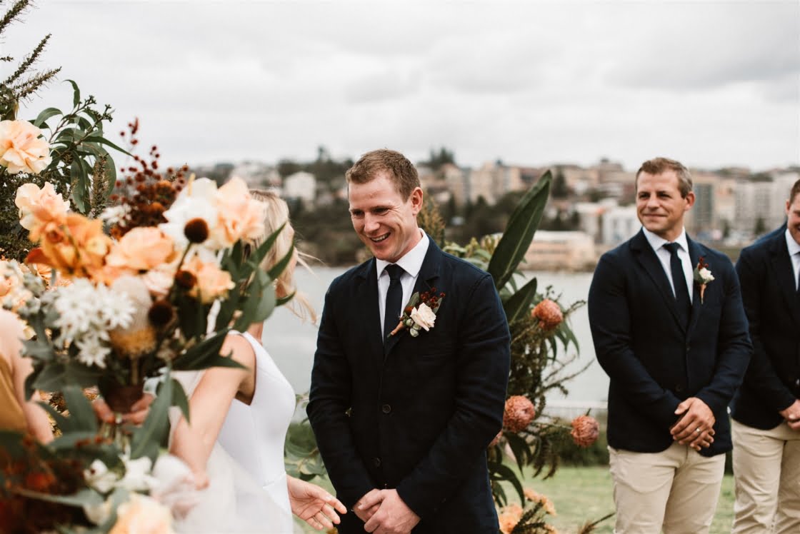 CONTRIBUTING VENDORS Photographer Damien Milan Florist The Ivy League Stationery Paperless Post (Invitations) Ceremony Dolphins Point, Cunningham Reserve Coogee via Randwick City Council Reception Wylie’s Baths Coogee Catering Laissez-faire Catering Cake Simmone Logue Wedding Favours MND New South Wales (Donation) Hire Items Simply Seated Event Hire (Ceremony) & Absolute Party Hire (Reception) Signage Design The Bride Printer Officeworks & BrownPaperCo via Etsy Entertainment Baker Boys Band Celebrant Alice Harvey Transport Prestige Chauffers THE BRIDE Bridal Gown Chosen by One Day Bridal Boutique Love Marie Bridal Boutique Rings V.Barboné Hair Piece ASOS Shoes Tony Bianco Accessories DIVA (Earrings) & Esq (Bracelets) Hair Sarah J Hair & Makeup Makeup Makeup by IVD Bridesmaid Dresses Sass & Bide, Bec + Bridge, Shona Joy & Zimmermann THE GROOM Suit Academy Brand Shirt T.M.Lewin Tie H&M Wedding Band Prouds the Jewellers Shoes R.M. Williams