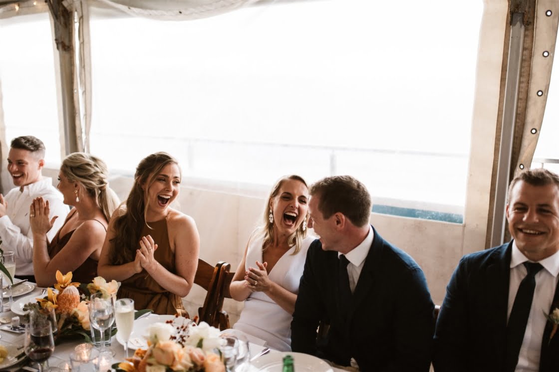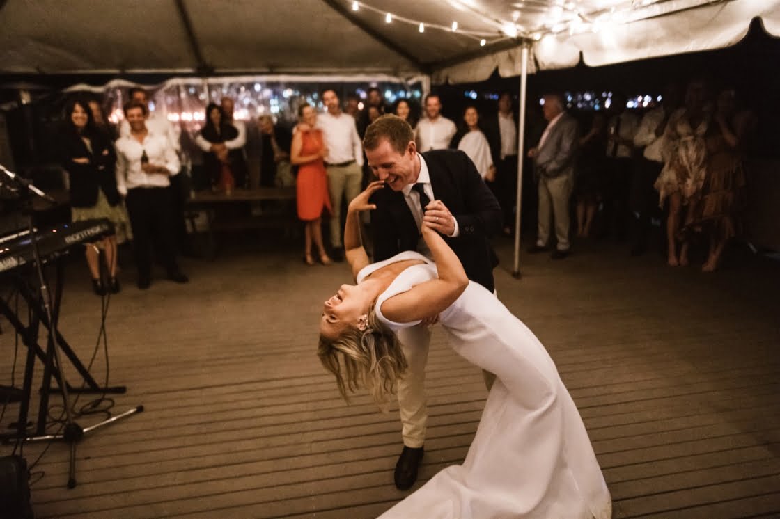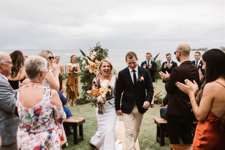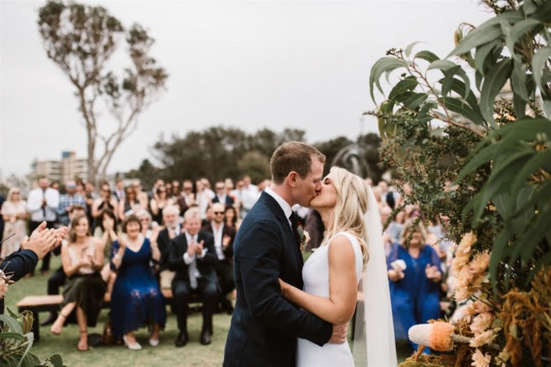 Under the ruse of the Anzac Day Dawn Service, Chris popped the question beachside in front of a beautiful sunrise. Sounds just as dreamy as their wedding was and we have all the details (as well as pics by the talented Damien Milan) below. Don’t miss who the gorgeous dress was by (bought from none other than Sydney’s Love Marie Bridal Boutique and the Baker Boys Band who bought the fun factor up a whole lotta levels. OK, scroll down, friends…