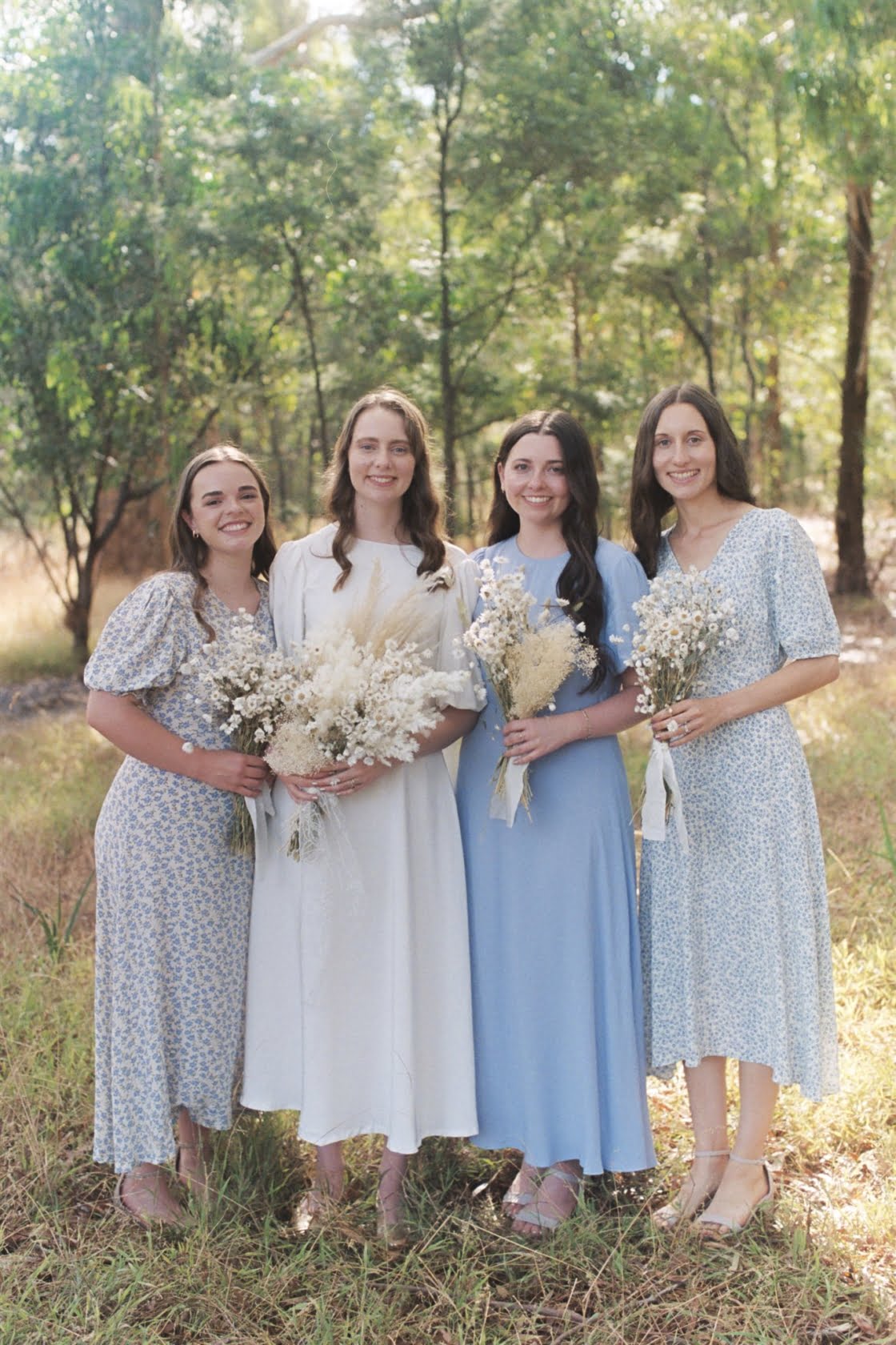 FAVE DETAILSThe flowers. I knew I wanted them to be simple and earthy so I ordered them from Everbloome, which specialises in dried flowers. It was fun picking out the bunches and playing around with them so that they looked just how I wanted them. I also made the groomsmen’s boutonnieres from dried flowers, and we picked up flowers from a fruit and veggie store to decorate the afternoon tea room.”