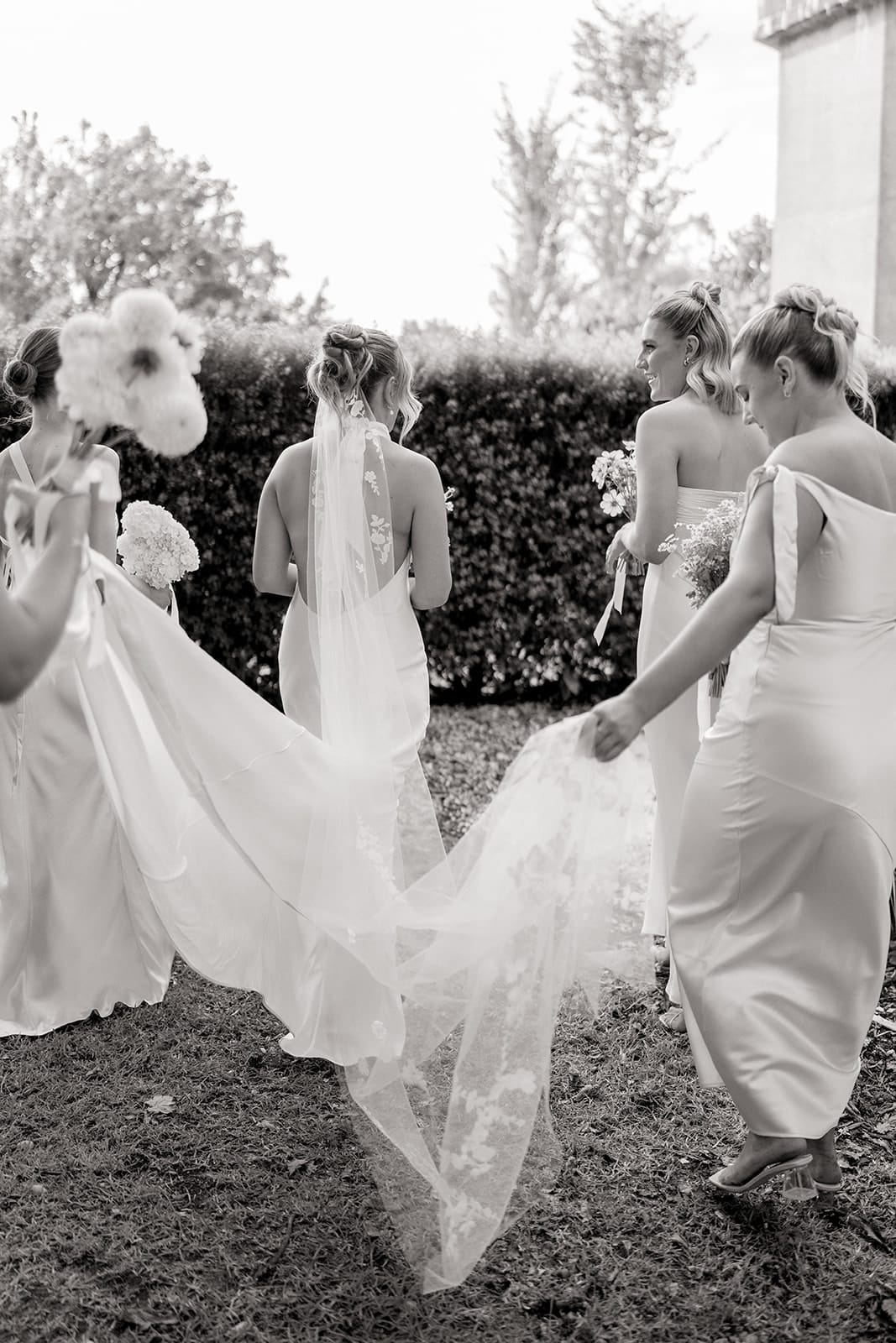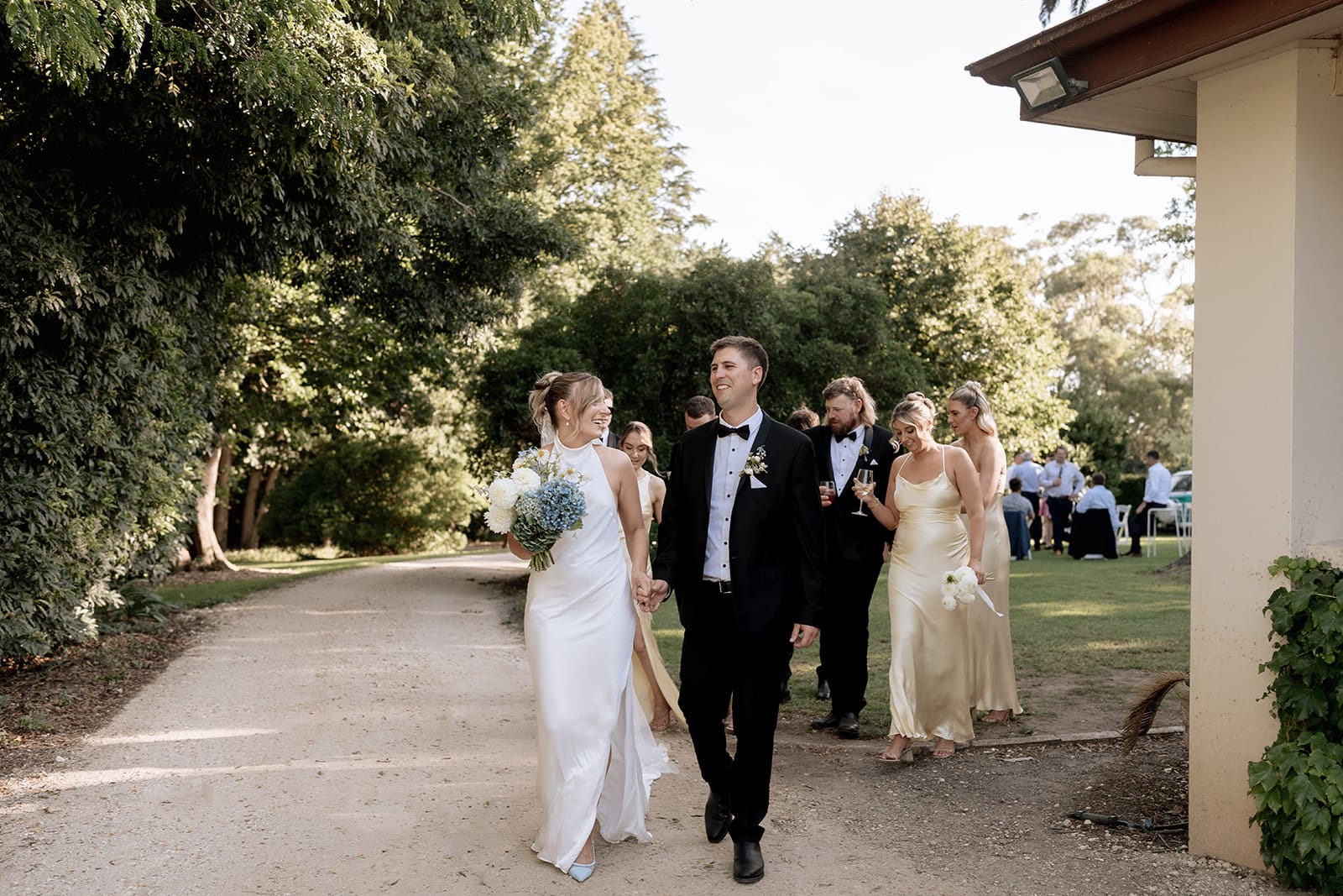 Saying “I do” at the stunning Mewburn Park Homestead, Emily and Liam opted for an Amalfi Coast-inspired celebration – “Limoncello Spritz on arrival, an oyster bar, butter yellow bridesmaid dresses, flowers with pops of blue, and cannolis instead of a cake to top it all off”.