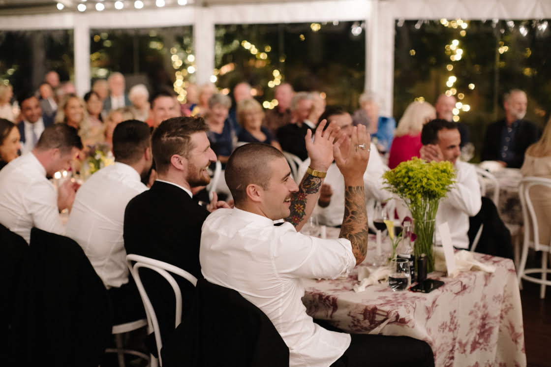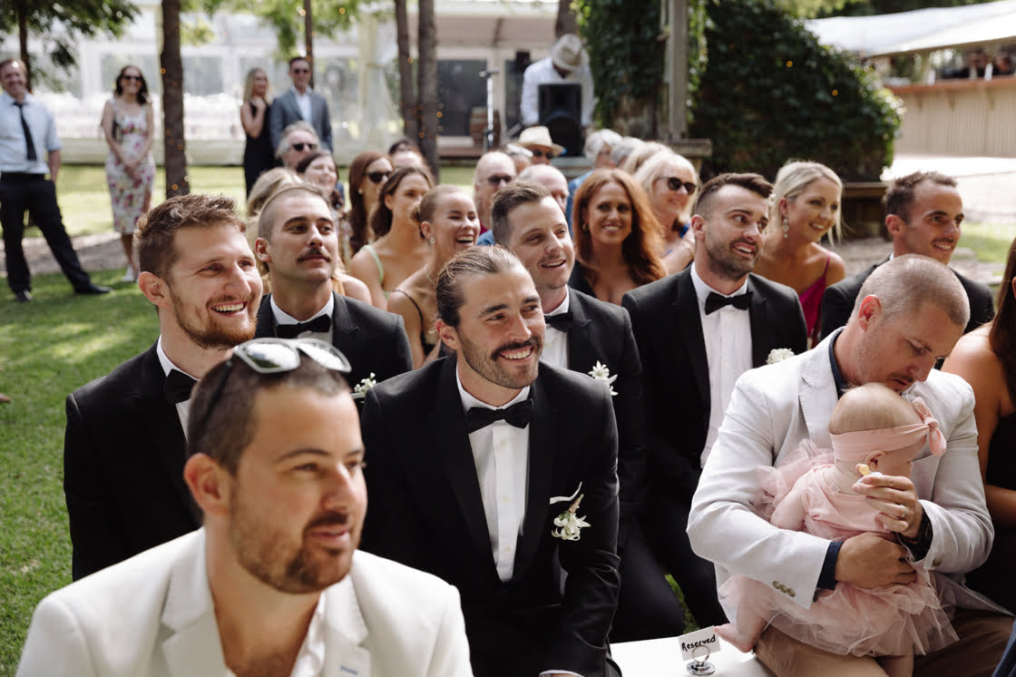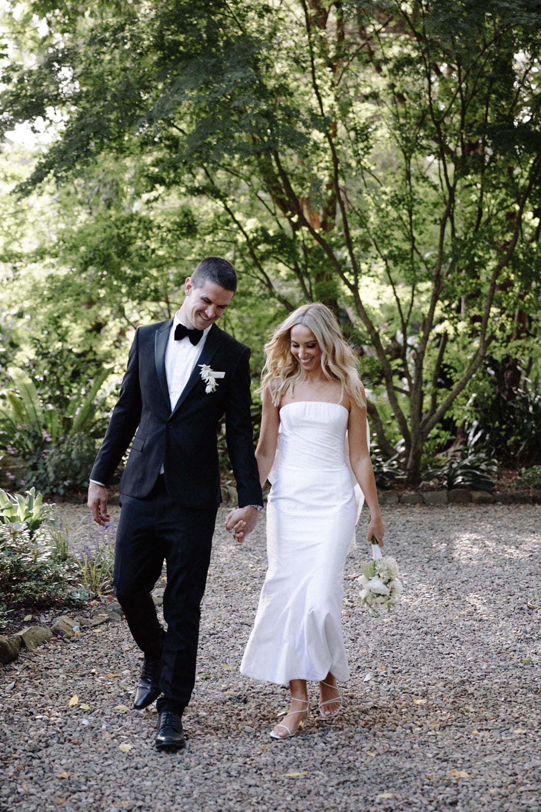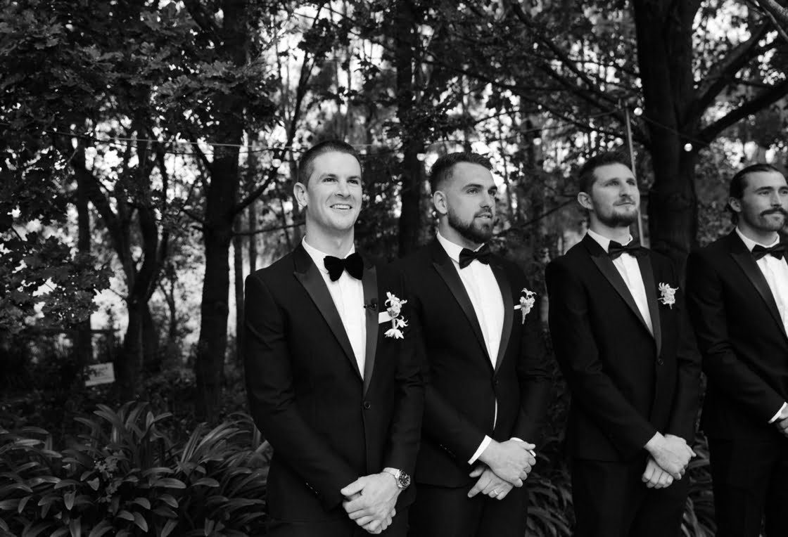 CONTRIBUTING VENDORS Photographer Matt Godkin Photography Cinematographer Jxsn Films Event Coordinator Lucey Best via The Old Church Florist Bride (Table) & Florafina (Bouquets) Stationery & Signage Bride Printer Fast Printing Ceremony & Reception The Old Church Catering Rabbit & Co Caterers Cake Mint Cake & Patisserie Entertainment Rennie Adams Celebrant Julie Myers Rings Louise Jean THE BRIDE Bridal Gown Rasario via Net-A-Porter Veil  Madame Tulle Shoes Alias Mae Hair Washington Hair House Makeup Tiarne Hayley Bridesmaid Dresses Shona Joy & SIR. Bridesmaid Gifts Mecca (Beauty Box) & Oroton (Earrings) THE GROOM Suit, Shirt & Shoes Jack London Watch Seiko Groomsmen Suits Jack London