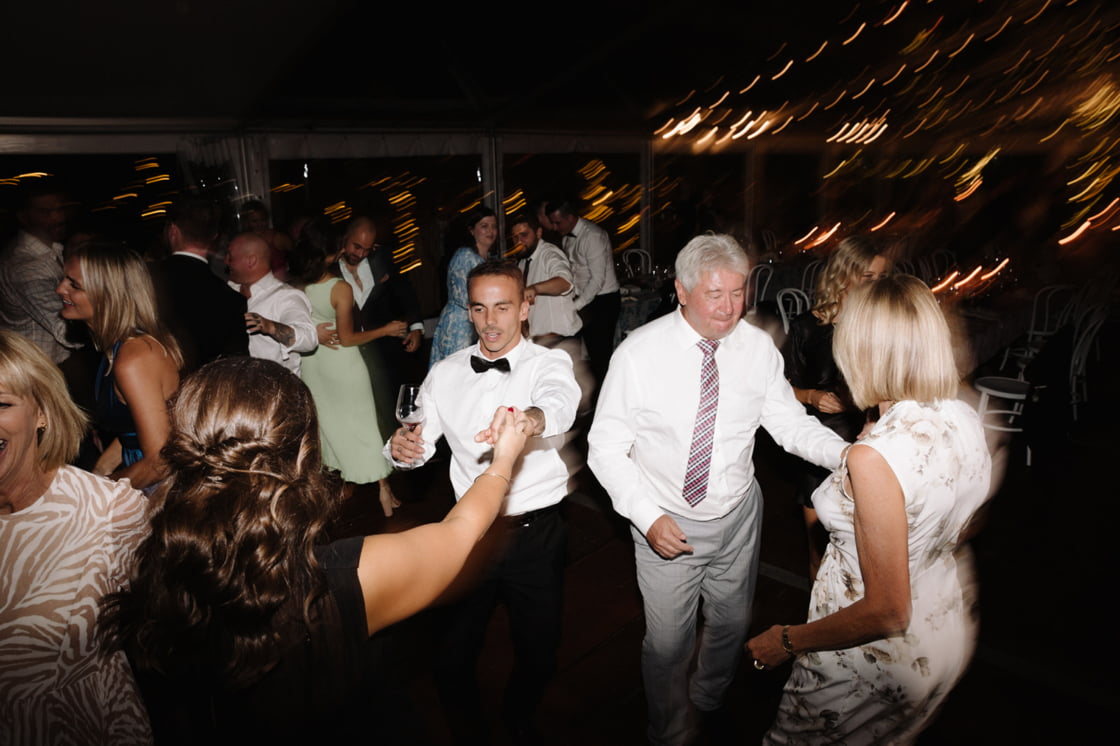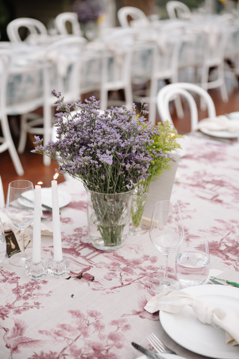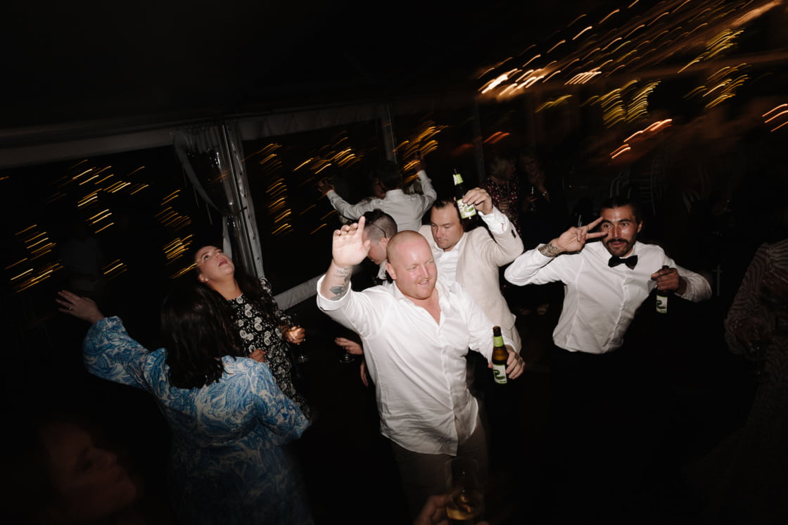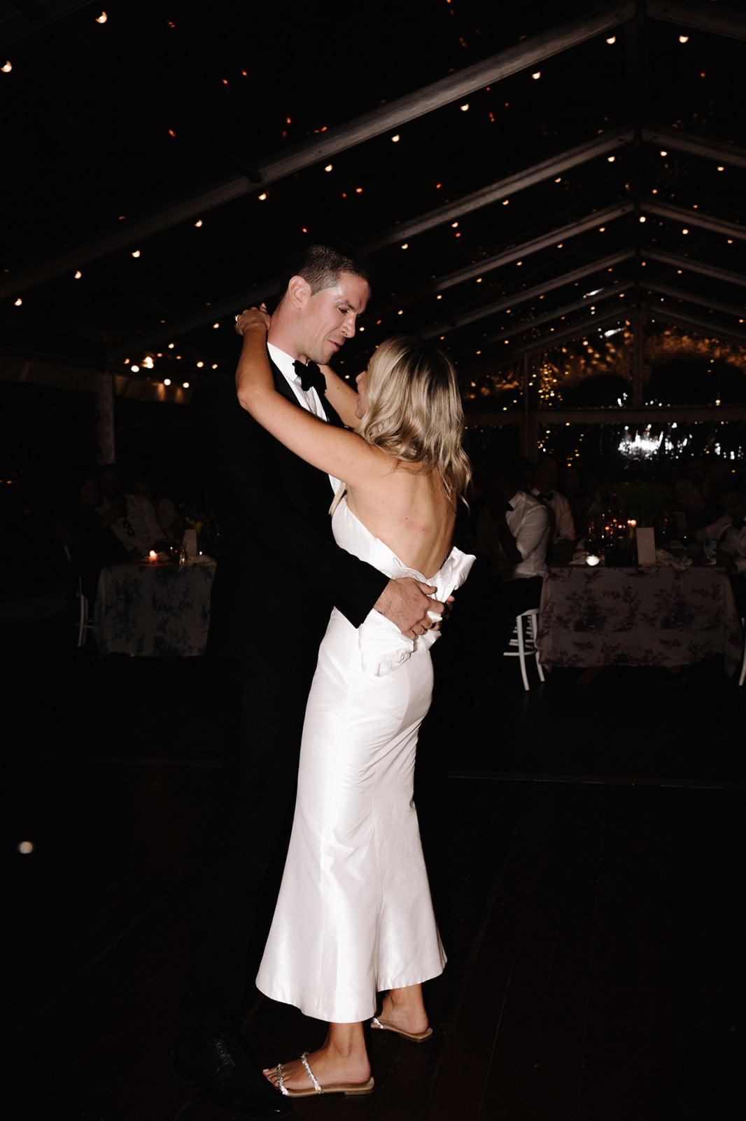 FAVE DETAILSI loved the cake [by Mint Cake & Patisserie]. I love that it was non-traditional and fun – it really reflects our personalities. I could be biased as I designed them but I did love our invitations as well. They were bright and fun – an orange daisy die-cut card with copper foil typography. The flowers – Michael, my sister Kate and I went to the flower markets a day before the wedding a selected them all. My beautiful bridesmaids and my mum helped me arrange the florals into mismatched glass vases (sourced by my op-shop loving Aunty) of different sizes. And the fabric for the tables – each table had a different coloured linen.”
