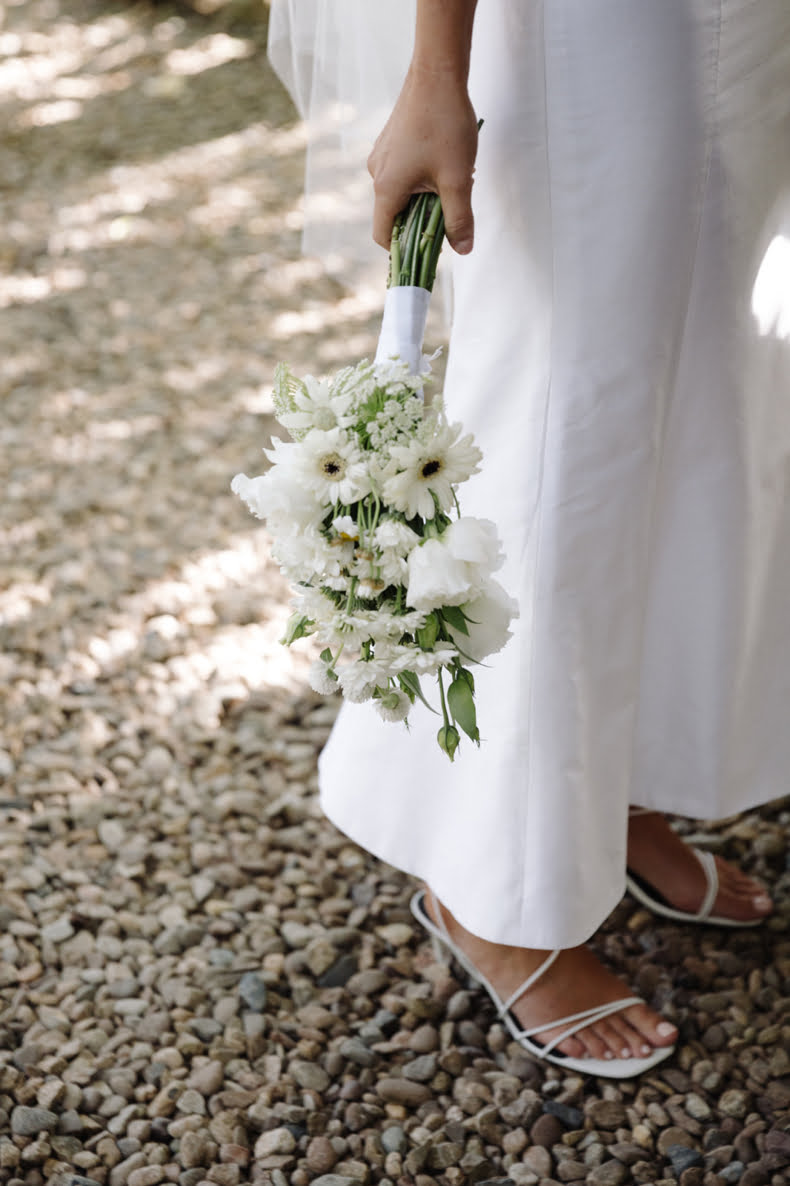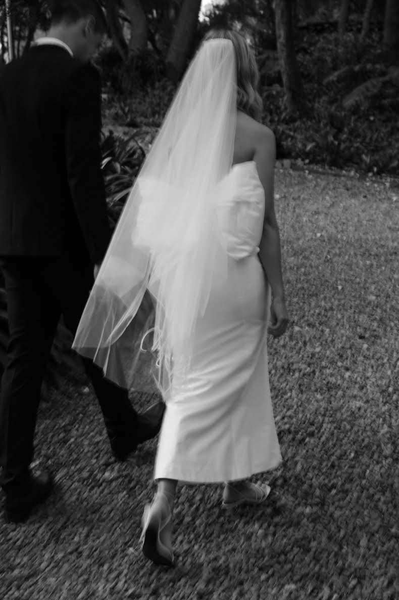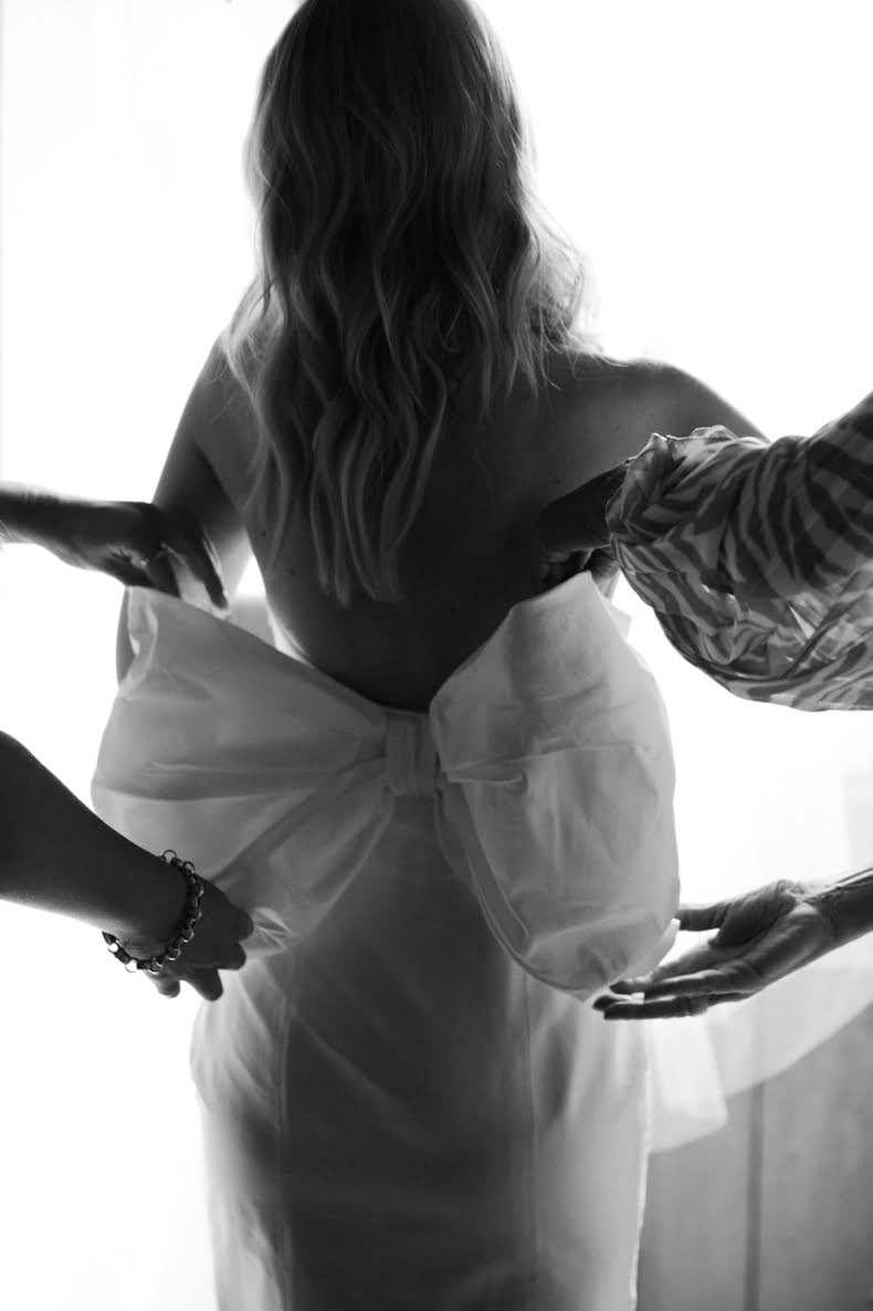 THE DRESS “After trying on about 15 dresses in bridal stores I came to know that I wasn’t after a traditional bridal gown. I wanted something a little bit different. I decided to have a little search online and found the perfect dress [by] Rasario [via Net-A-Porter], a Russian designer. There were no stockists in Australia so I had to take the risk and purchase it online. I loved it as soon as I tried it on. It was a slim fit, strapless, gown in Ivory silk with a cinched waist, trumpet hem. It wasn’t a full length gown which I loved and the bow at the back.”