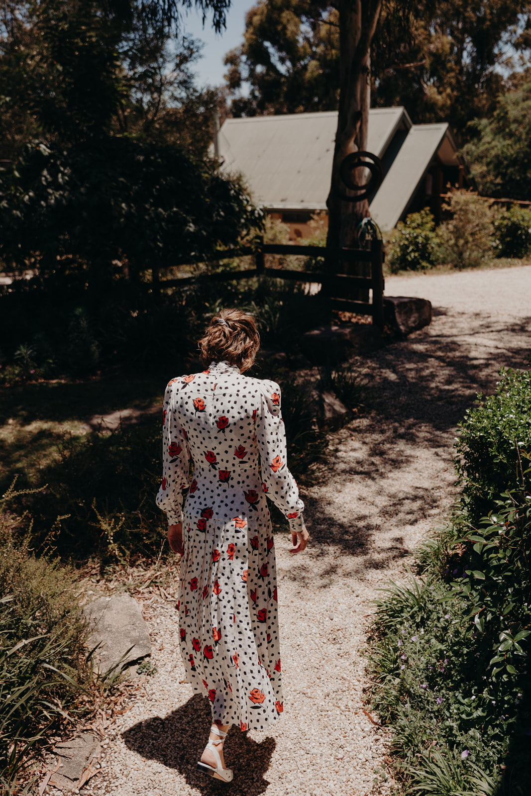 THE DRESS “I wanted my dress to stay true to my everyday style of lots of colour and print. I first saw it on Net-a-Porter about a year out from the wedding, and I loved that it mixed timeless elements, like silk, pleats and shoulder pads, with a contemporary bold print. The roses also seemed perfect for the garden theme. But I didn’t buy it because I thought something better could pop up. It sold out quickly and I was shattered, so when one last dress came back online a few weeks later, in my size and on sale, I nabbed it. I opted out of the traditional wedding dress shopping experience because it just wasn’t for me. I adore my dress, and I know I’ll wear it again – truly.”