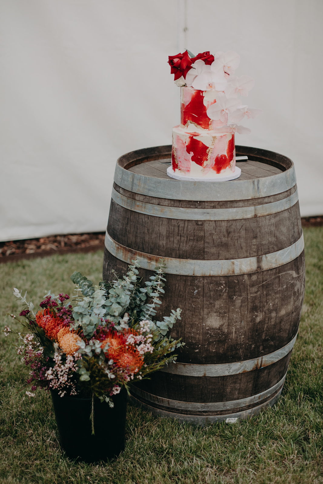Well, hooowdy – these two know how to throw a good hullabaloo. When Emily and Reg returned from New York to tie the knot, they brought a slice of the US home with them. The pair, with the help of friends and fam, transformed an unassuming shed on Reg’s family property into a midwest-inspired bar dubbed “The Tipsy Cow”, “decked it out with a pool table, old family memorabilia, couches, a fireplace and its very own neon sign.”
