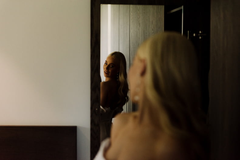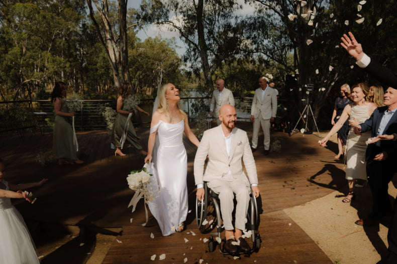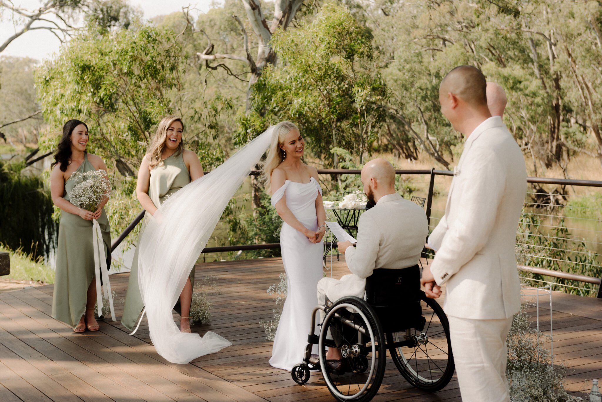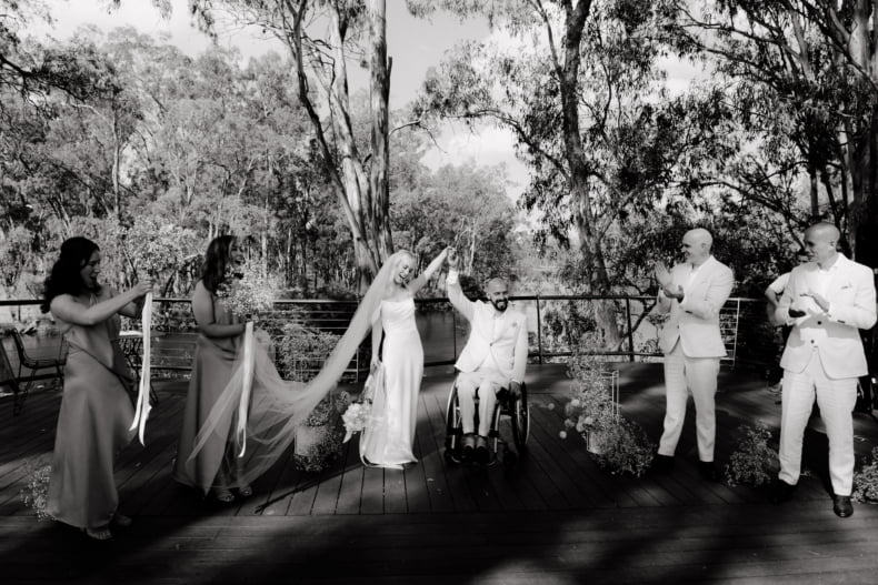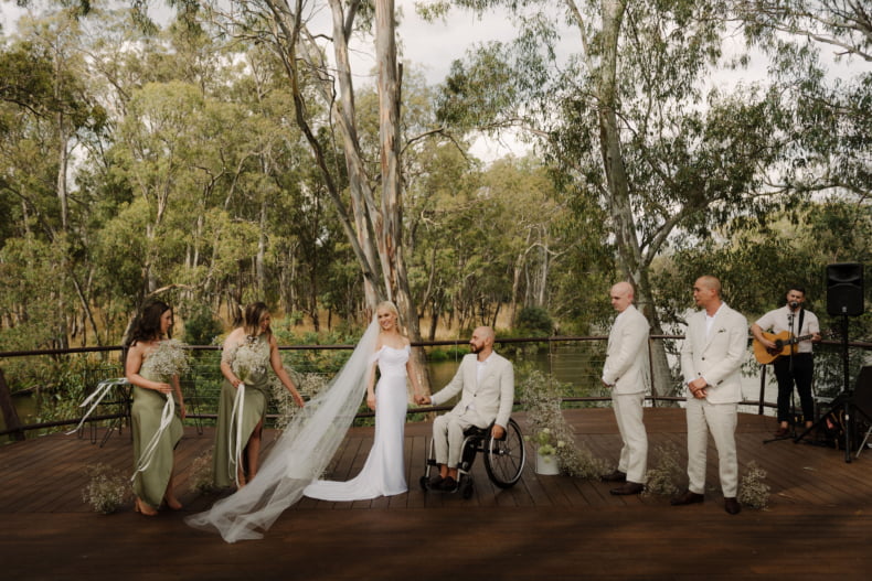 WE’RE REALLY GLAD WE… “Had the wedding at a venue like Mitchelton Wines where the ceremony, reception and accommodation was all in one spot. We didn’t have to waste the day travelling. We had the ceremony on the river, canapés on the lawn and the reception in the cellar, which were all such amazing and different experiences, yet everything was literally less than 100 metres away. All of our friends stayed at the hotel so the next morning we got to hang out poolside and have a big breakfast together.”