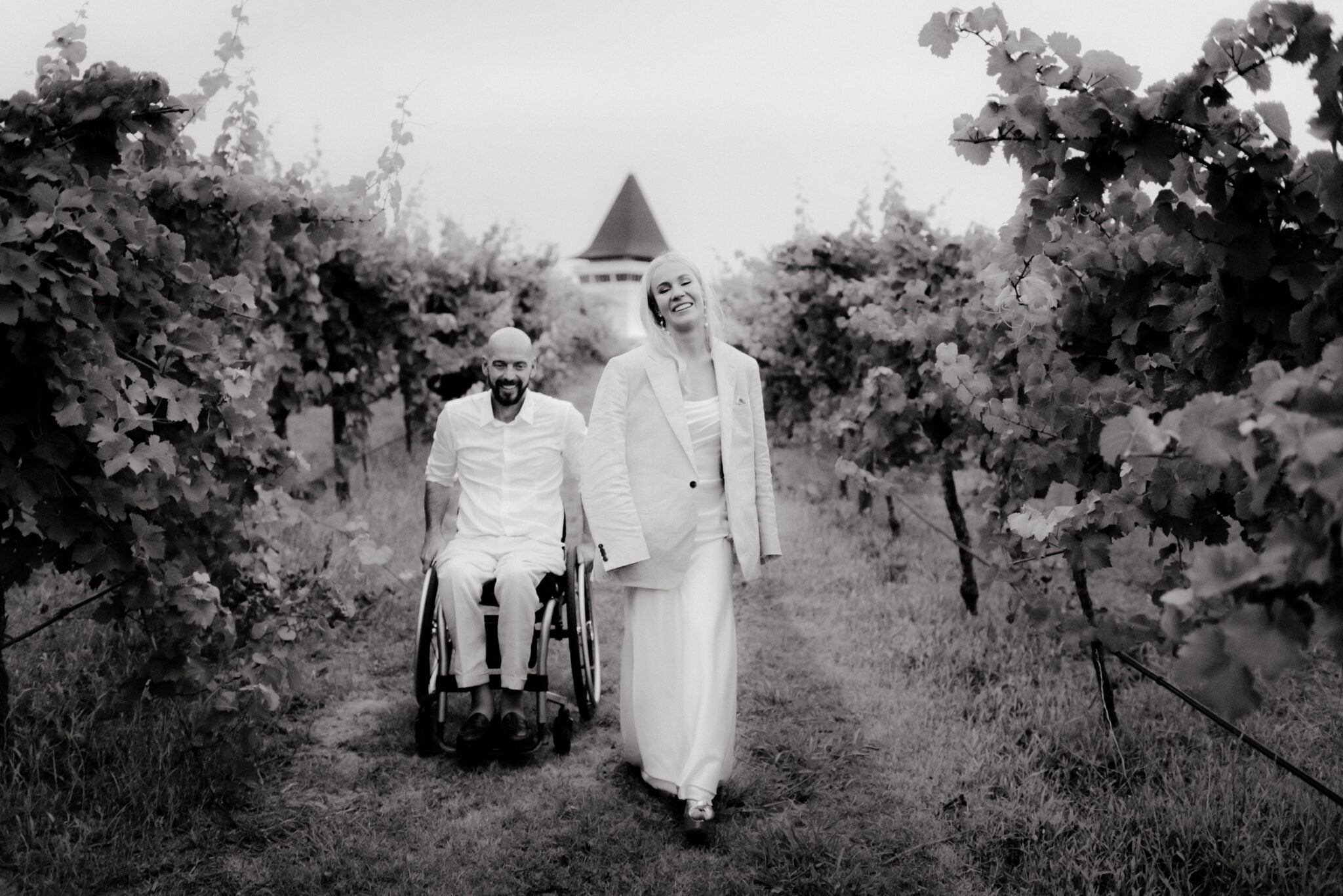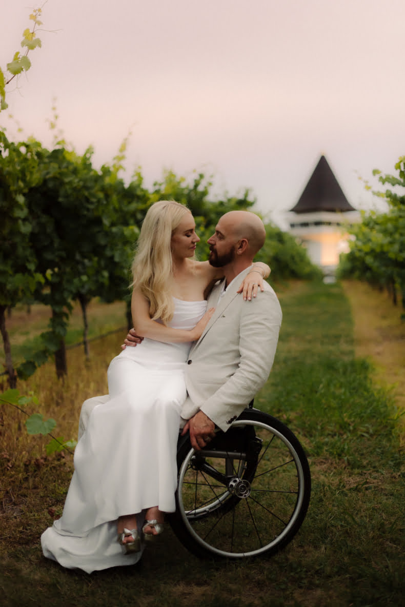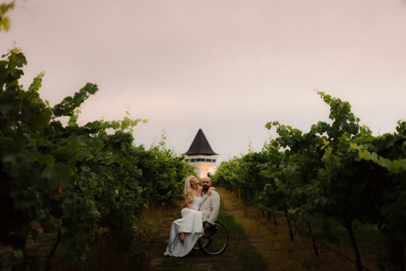 CONTRIBUTING VENDORS Photographer & Cinematographer She Takes Pictures, He Makes Films Florist Dear Henri Ceremony & Reception Venue, Catering Mitchelton Wines Hire Items The Small Things Co Entertainment Logan Ent. Celebrant Ebony Carver Rings Faith Jewels Disposable Cameras Hillvale Photo Lab THE BRIDE Bridal gown & veil Mariana Hardwick Shoes Charlotte Olympia Accessories The Traveller Series, Faith Jewels Hair & makeup Janice Wu, Megan Harrison Bridesmaid dresses One Fell Swoop Bridesmaid shoes Bared Footwear, Tony Bianco THE GROOM Suit, shirt & groomsmen suits Oscar Hunt Tailors Shoes G.H. Bass & Co