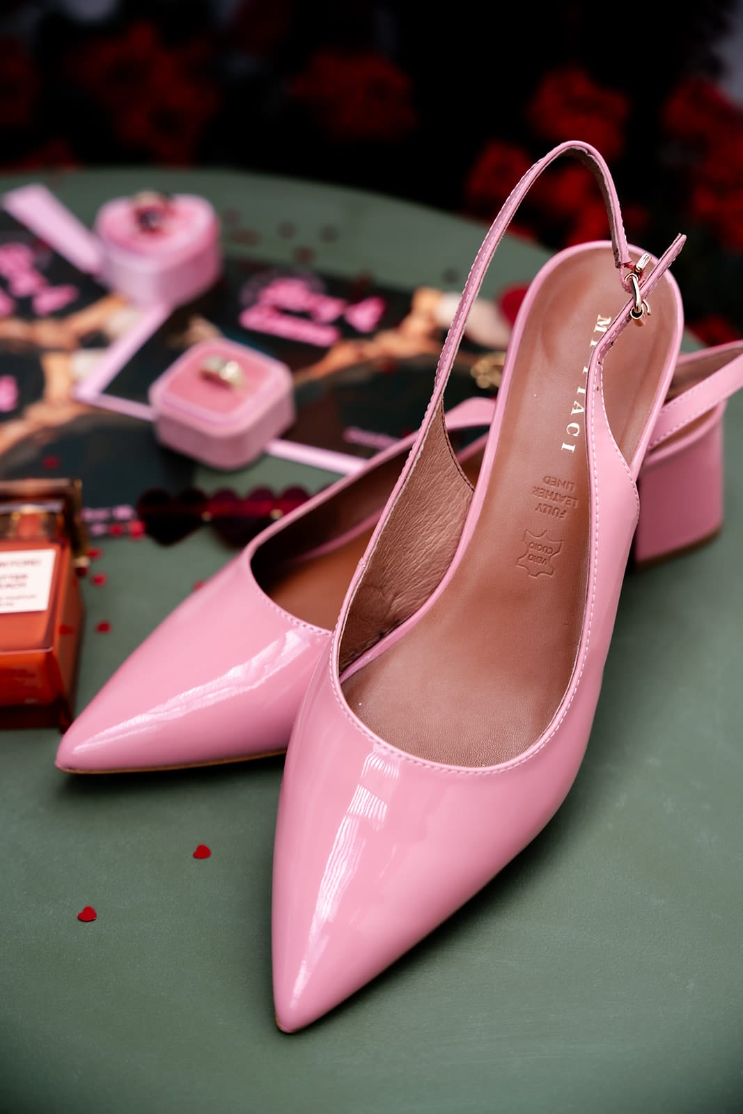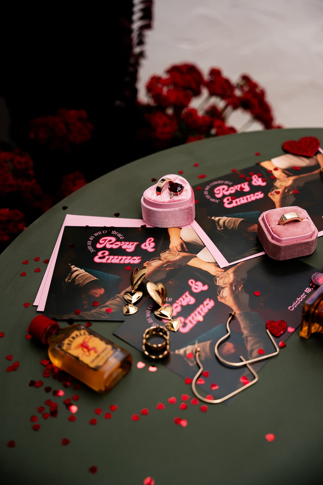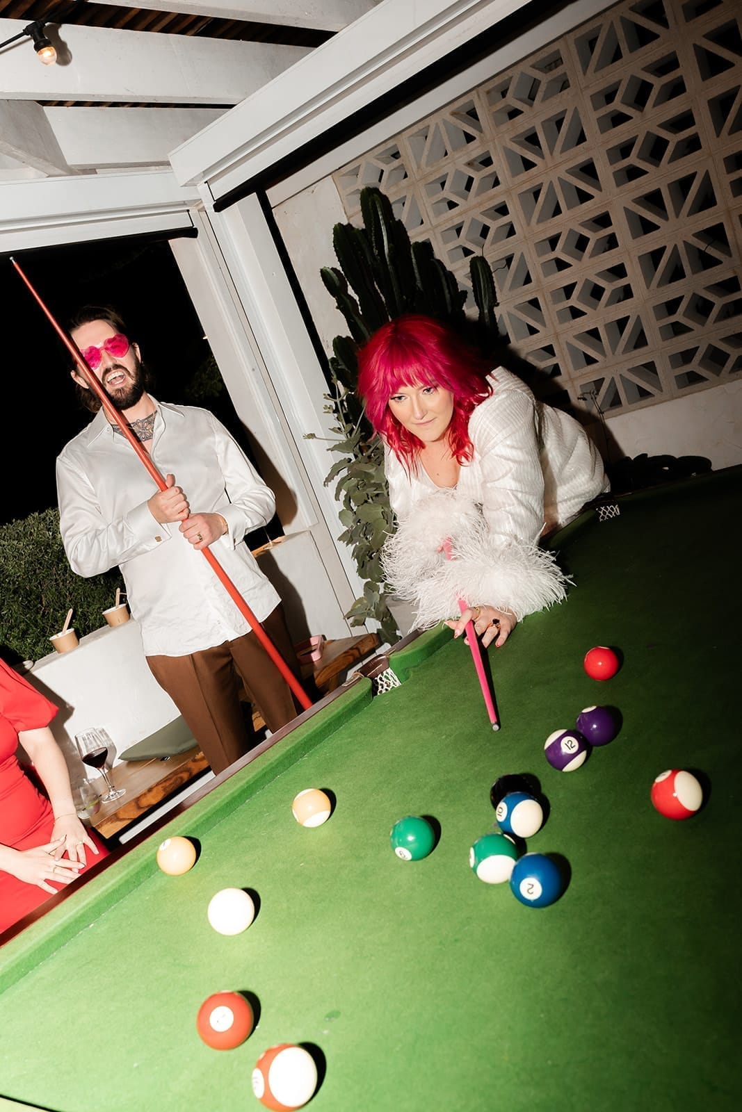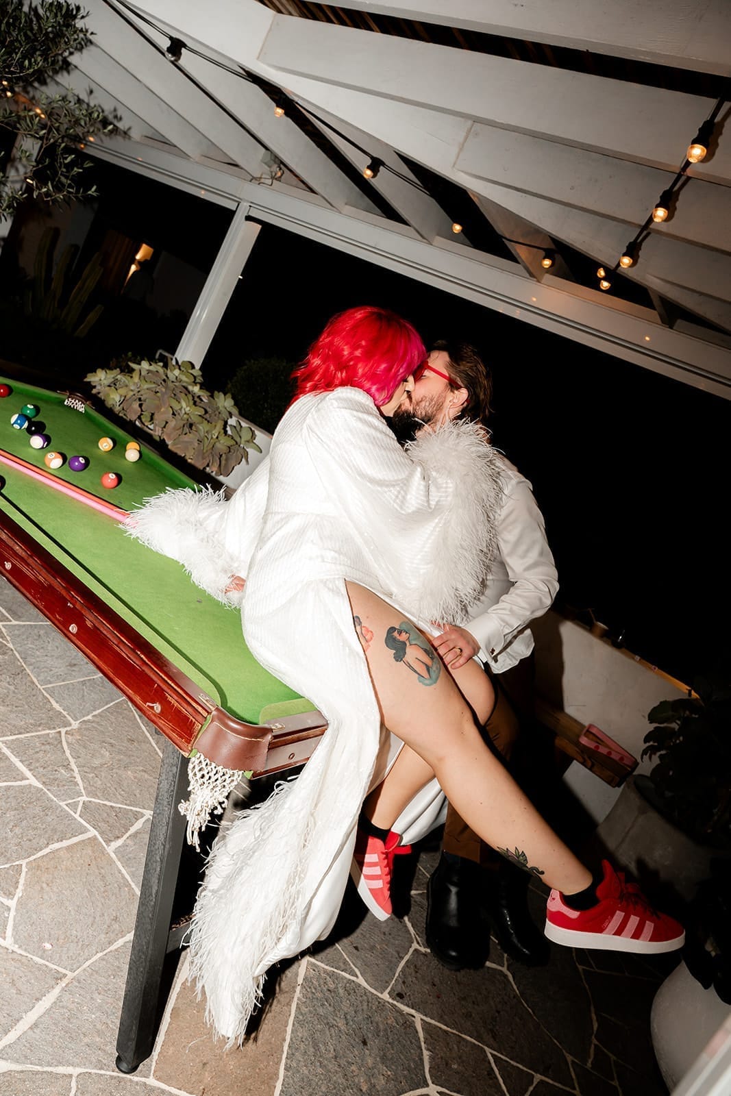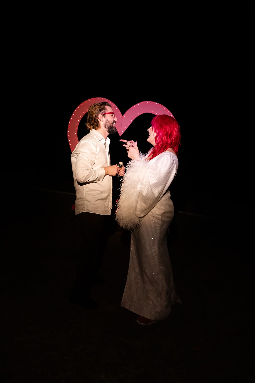 “We drew a lot of our inspiration from kitschy Vegas weddings and decided on a ‘Vegas elopement style’ wedding theme,” the newlyweds explain. “Lots of hearts, lots of pink and disco balls!”