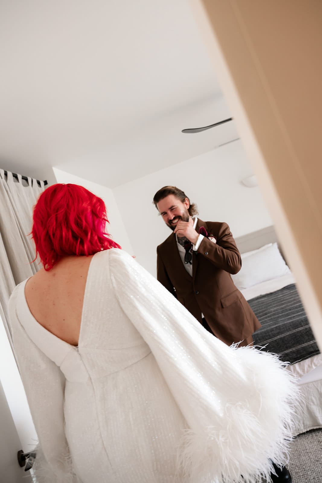 We’re BIG fans and if you feel the same you’ll be pleased to know that awaiting you below is BTS, wedding pics and the whole vendor dream team (including Sea + Paper Creative Studio, photographer/videographer Street and Studio, and celebrant Marry Me Sarah B – who’s “a complete ray of sunshine,” according to the newlyweds).
