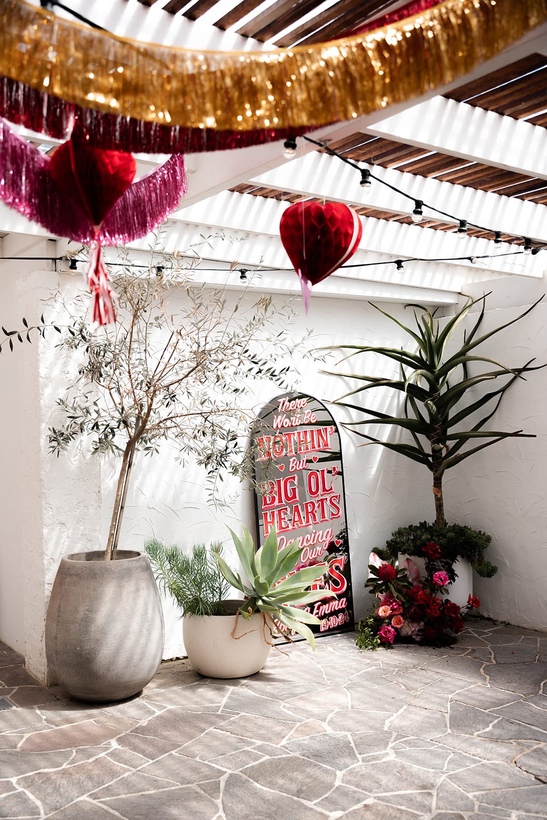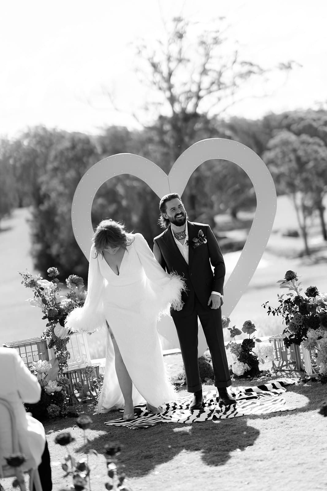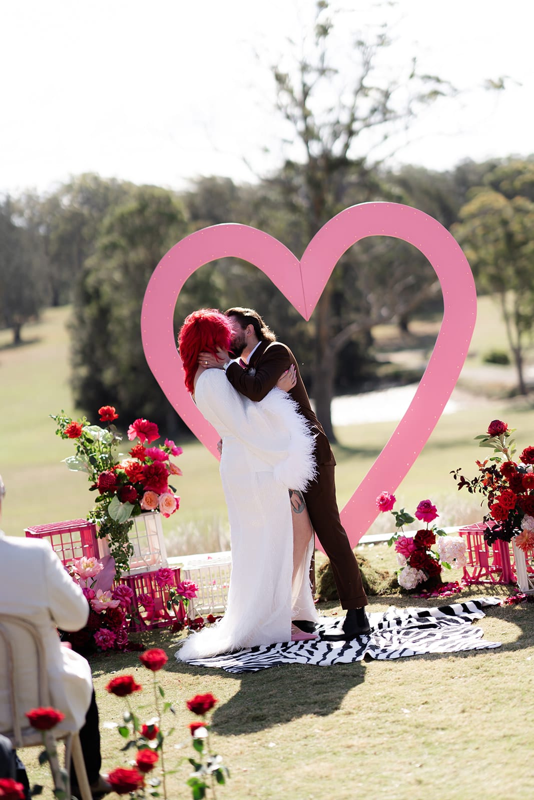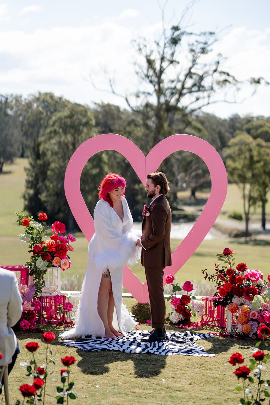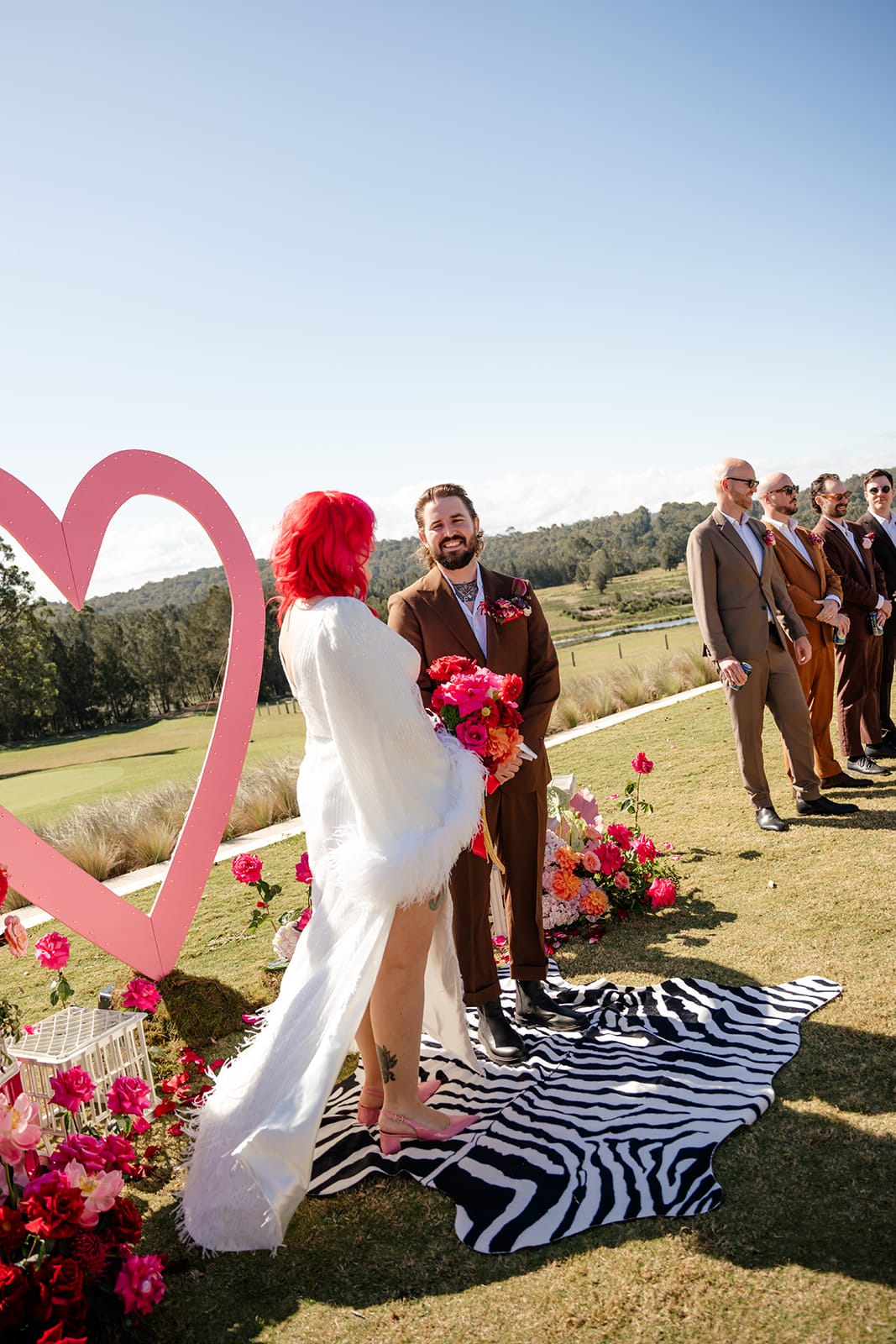Take 300 acres of secluded South Coast countryside, countless pink heart-shaped details, two high-school sweethearts, and 92 of their favourite humans, and what do you get? Emma and Rory’s wedding day! Hosted at The Oaks Ranch in New South Wales, it was an epic mash-up of relaxed coastal atmosphere meets Vegas vibes.