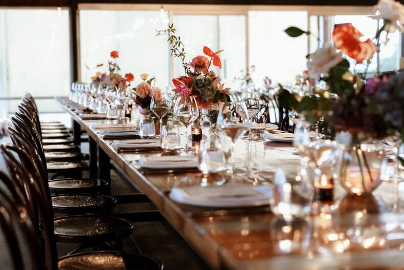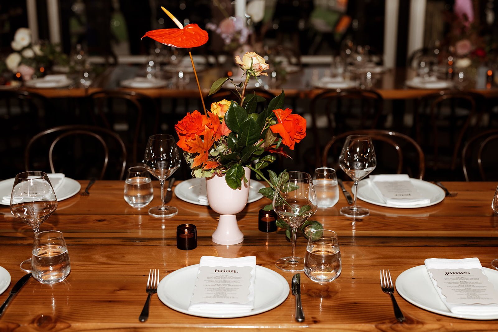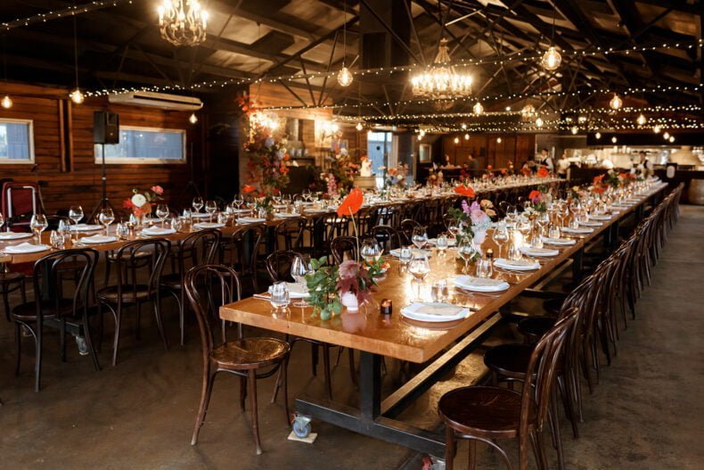 THE INSPO “Simple elegance and being able to share a big, beautiful sit-down dinner with family and friends. We wanted the vibe of the wedding to reflect us a couple, and whilst is sounds like a cliché – be a big party.”