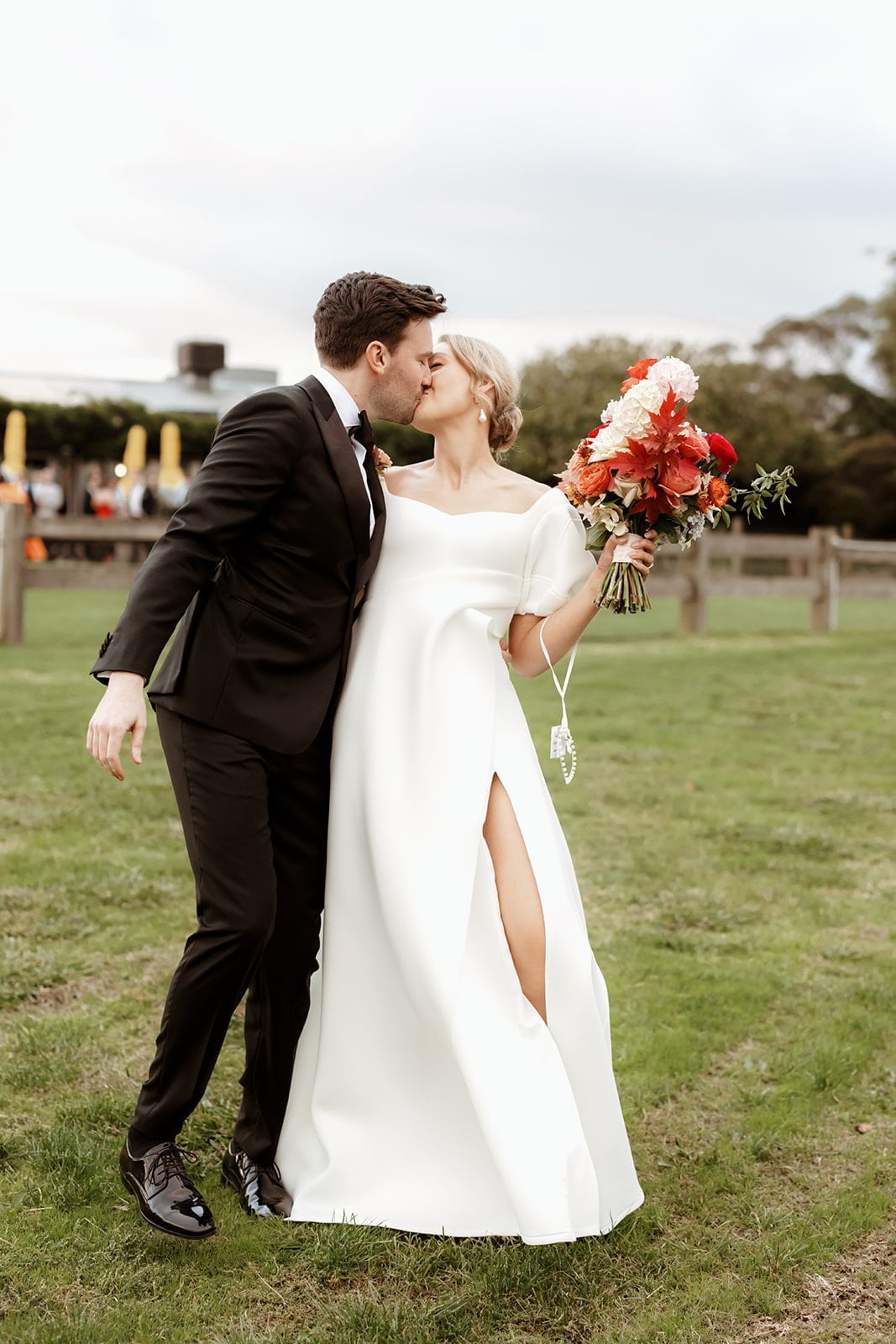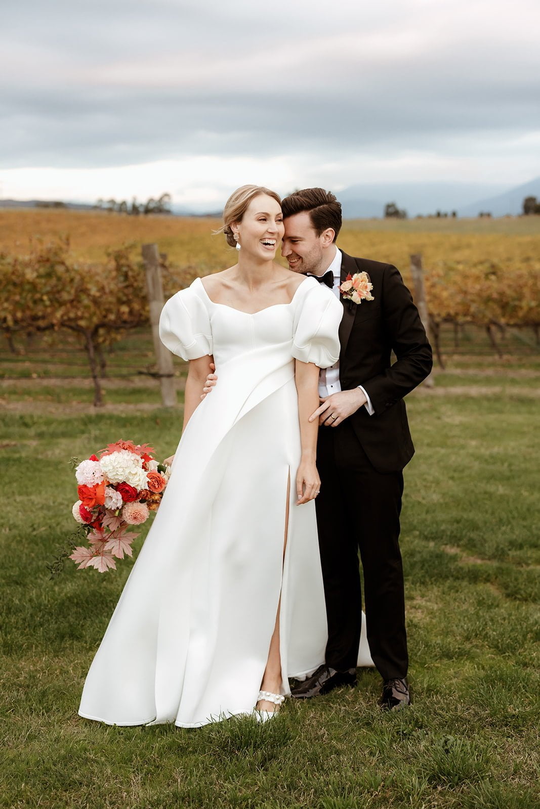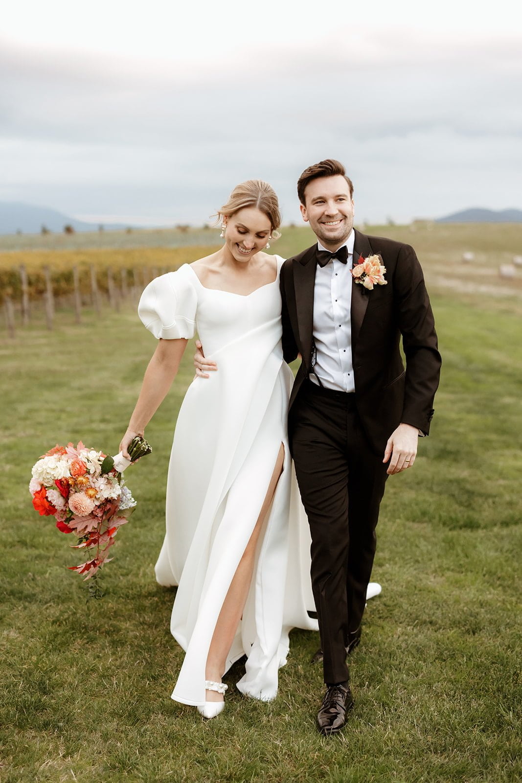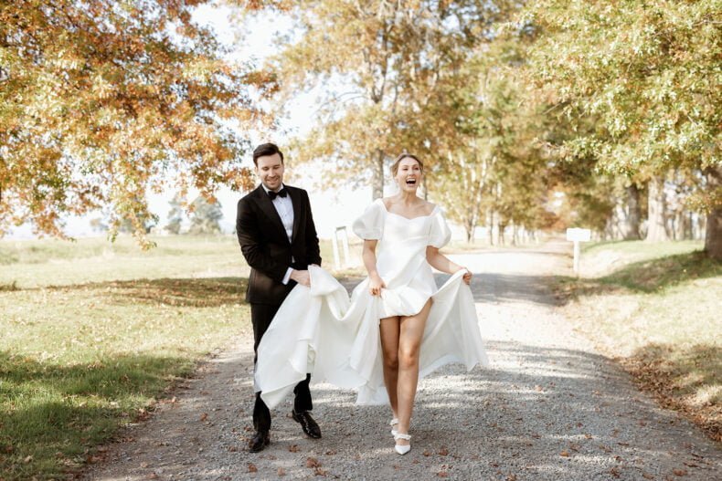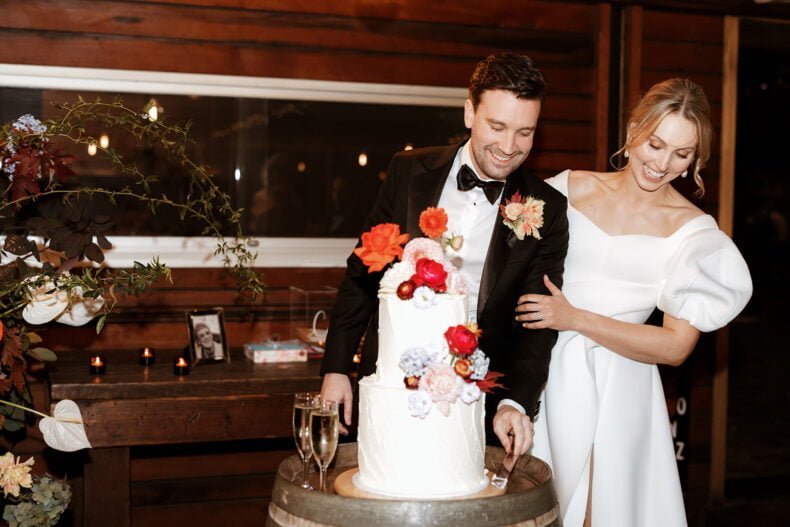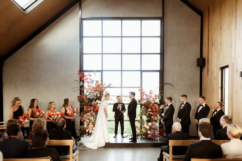 After meeting in high school, Em and Trav “played it cool” until their first year of university when they started dating and never looked back, adding their cat Mooncake to the mix in 2021. They chose the chic and sleek Yarra Valley Zonzo Estate for their celebration with their 100-plus nearest and dearest, and hired some of the best of the best to make it happen. Pomp & Splendour brought the wow factor with showstopping florals, Baker Boys Band were in charge of tunes and the amazing Nikki McCrone snapped all the special mems. Scroll down to see…