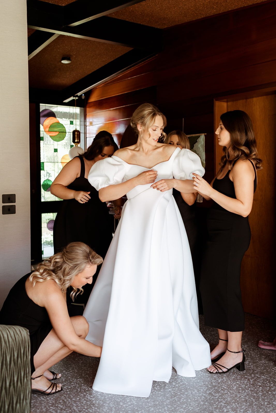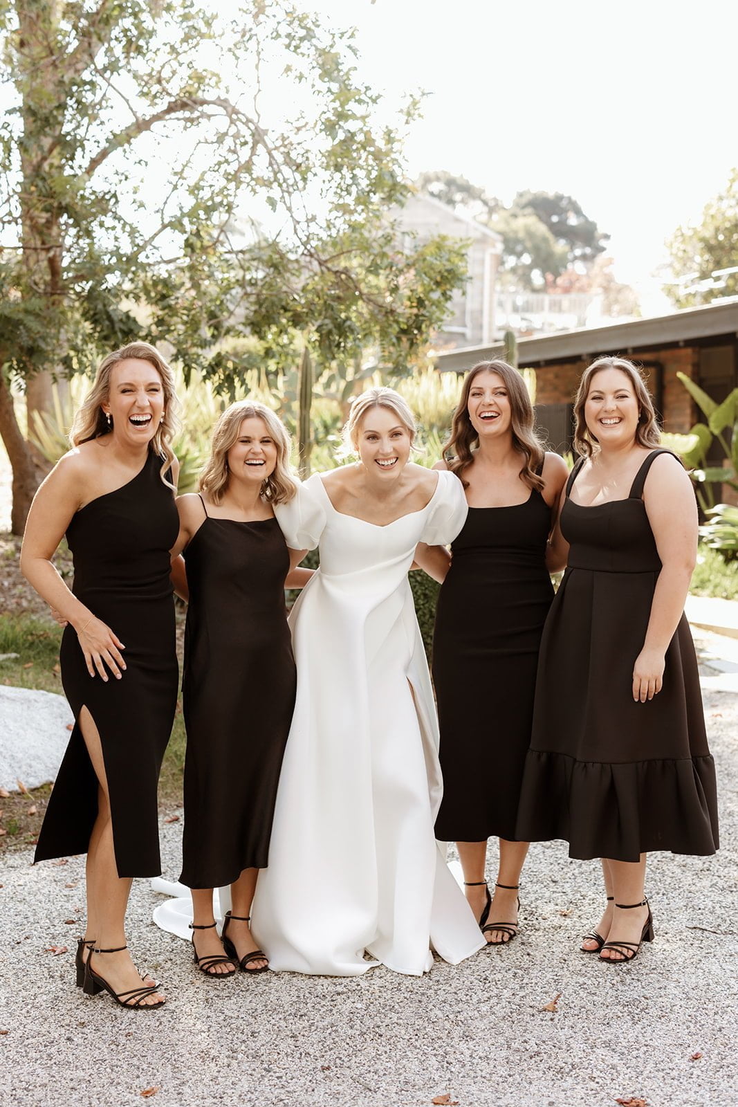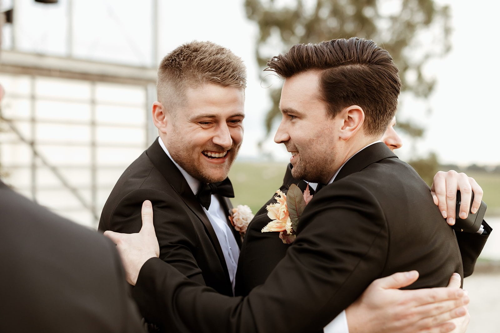 CONTRIBUTING VENDORS Photographer Nikki McCrone Florist Pomp & Splendour Stationery, signage & hire items State of Elliott Ceremony & reception venue Zonzo Estate Cake Fig & Salt Cake Topper Pomp & Splendour Lighting & sound hire Baker Boys Entertainment Baker Boys Band & DJ Emily Grace Celebrant Damon Hughes Rings Kavalri Transport Yarra Valley Transfers THE BRIDE Bridal gown designer Georgia Young Couture Robes Piyama Shoes Charles Keith, Veja Campo Accessories Christie Nicolaides, Finer Rings Hair & makeup Megan Harrison Bridesmaid dresses Bec + Bridge, Rachel Gilbert Bridesmaid shoes Bared Footwear THE GROOM Suit & shirt Institchu Suspenders & tie Declic Cufflinks Hugo Boss Shoes Aquila Barber Kings Domain Groomsmen suits YSG Tailors