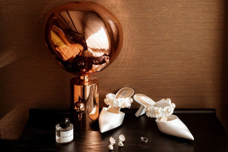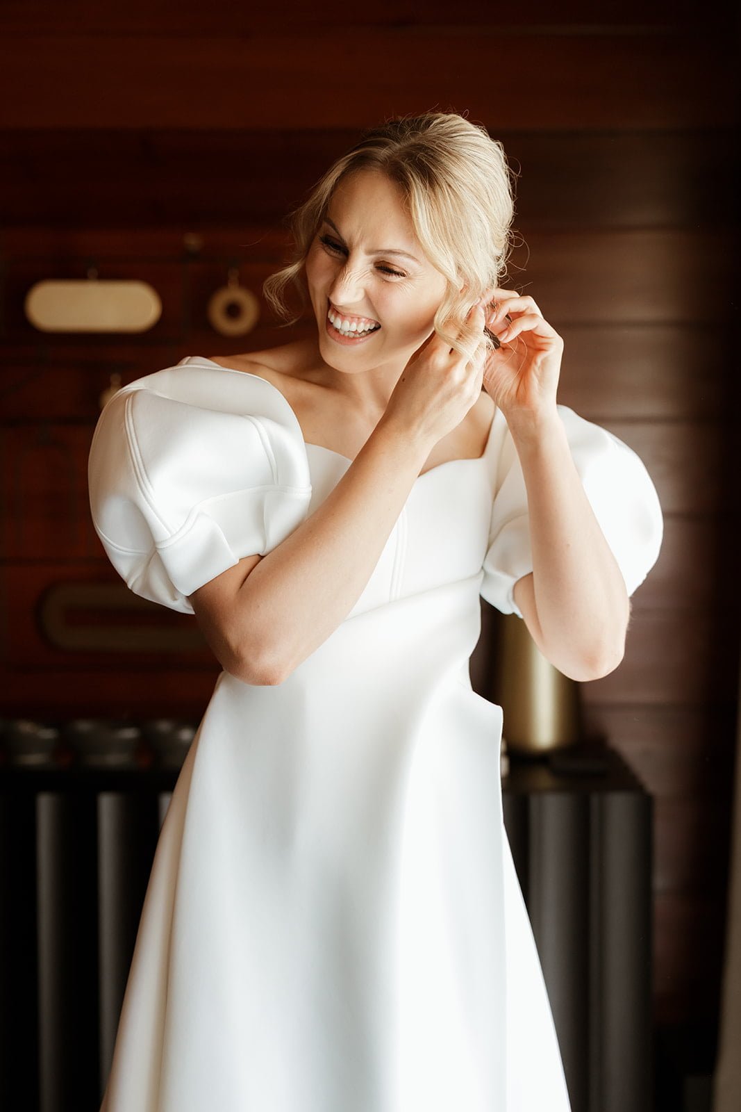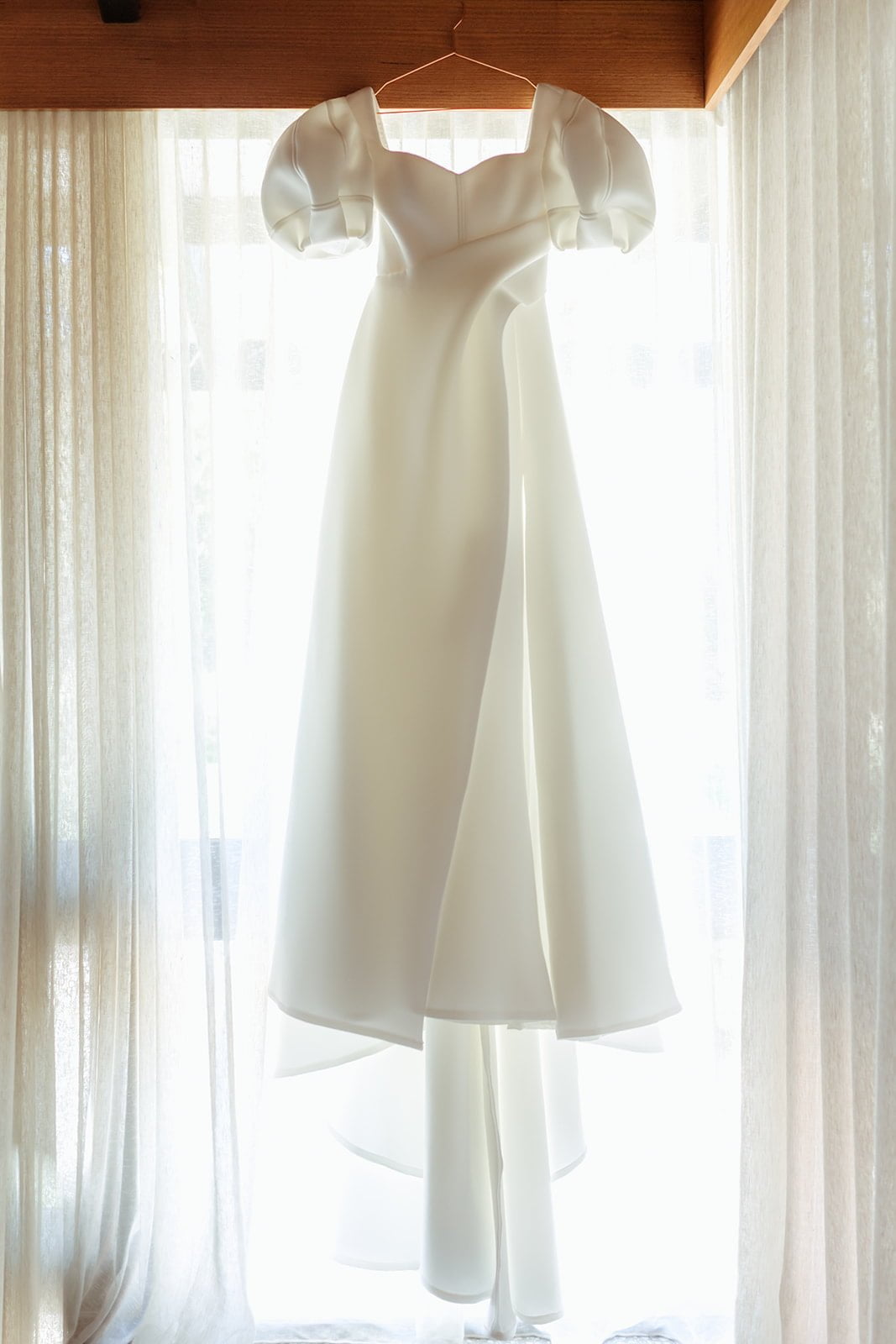 THE DRESS “Georgia Young Couture was our fourth stop, and I was encouraged to try on dresses that I wouldn’t necessarily lean towards. As soon as I tried on my dress, I knew it was right. Georgia was incredibly supportive throughout the whole process and encouraged me to change the gown slightly so I could wear it partially off the shoulder. It was such an easy, relaxed experience and I couldn’t recommend her more highly.”