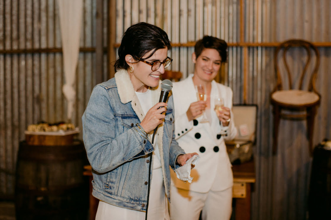 STANDOUT VENDORS “Our celebrant, Hunter Smith, is also our daughter’s dad. He is one of the best guys we know. He not only gave us sperm to make a baby but also worked his arse off to do a celebrancy course so he could marry us. It was so incredible having him there and play such an important part in our day and made us feel really bloody proud of our rainbow family. Also, Bec from Sandridge Estate and Danielle from Hubert and Dan.”
