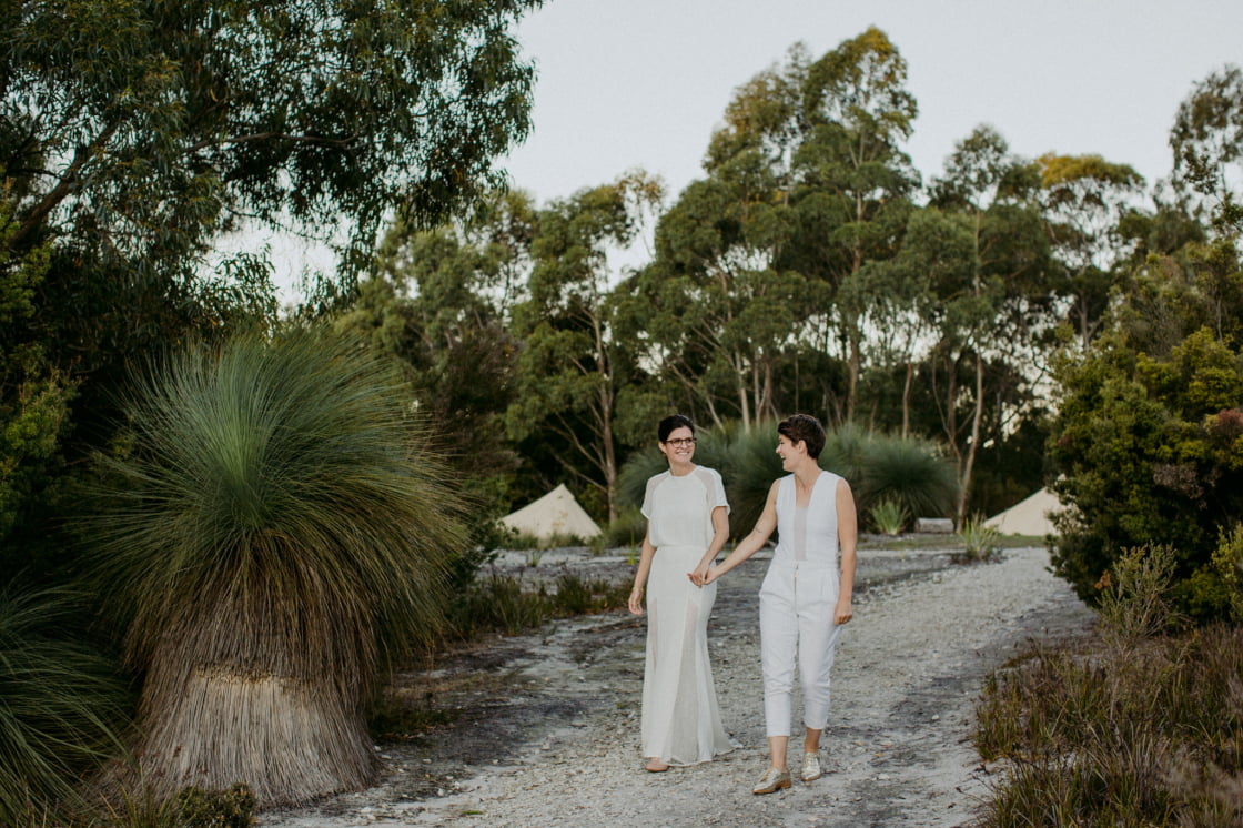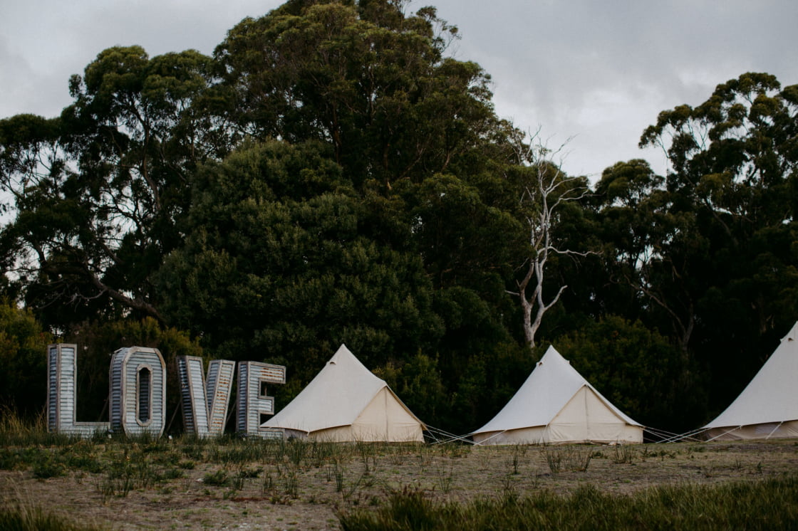 THE VENUE “We wanted somewhere where people could glamp and getaway from the city for a few days. We never intended on getting married in Tassie (we’re from Melbourne), but when we came across Sandridge Estate it ticked all the boxes. Glamp Village already set up, room for more bell tents, BYO booze and no curfew. After speaking to the amazingly wonderful Bec (part of the family who owns and runs the venue), we were sold. We didn’t even see the property before booking.”