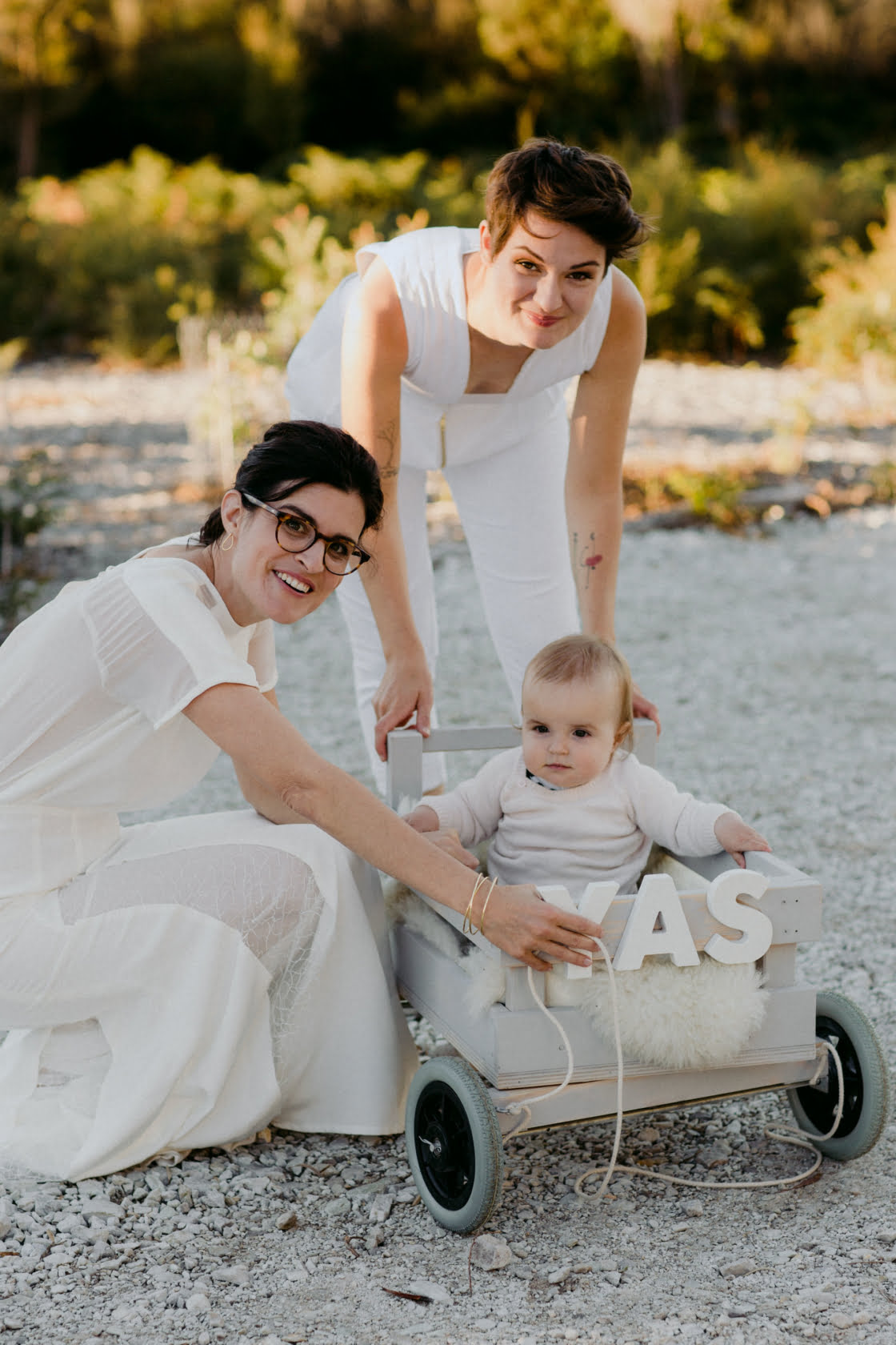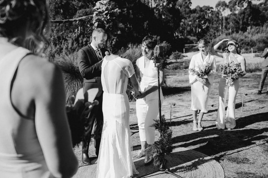 STANDOUT VENDORS “Our celebrant, Hunter Smith, is also our daughter’s dad. He is one of the best guys we know. He not only gave us sperm to make a baby but also worked his arse off to do a celebrancy course so he could marry us. It was so incredible having him there and play such an important part in our day and made us feel really bloody proud of our rainbow family. Also, Bec from Sandridge Estate and Danielle from Hubert and Dan.”