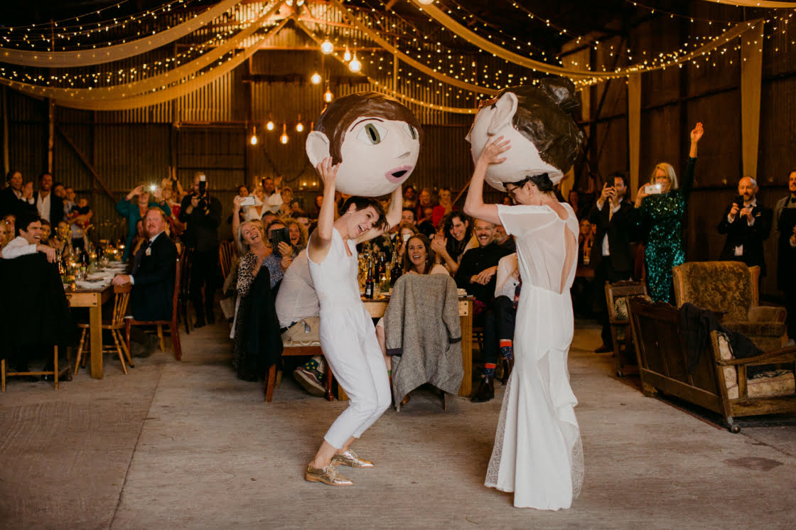 LITTLE LOL “We had a heated argument about the size of the noses of the giant paper mâché heads we made and wore for our first dance. Because sometimes when you’re planning a wedding and doing ridiculous wedding craft you lose sight of the bigger picture.”